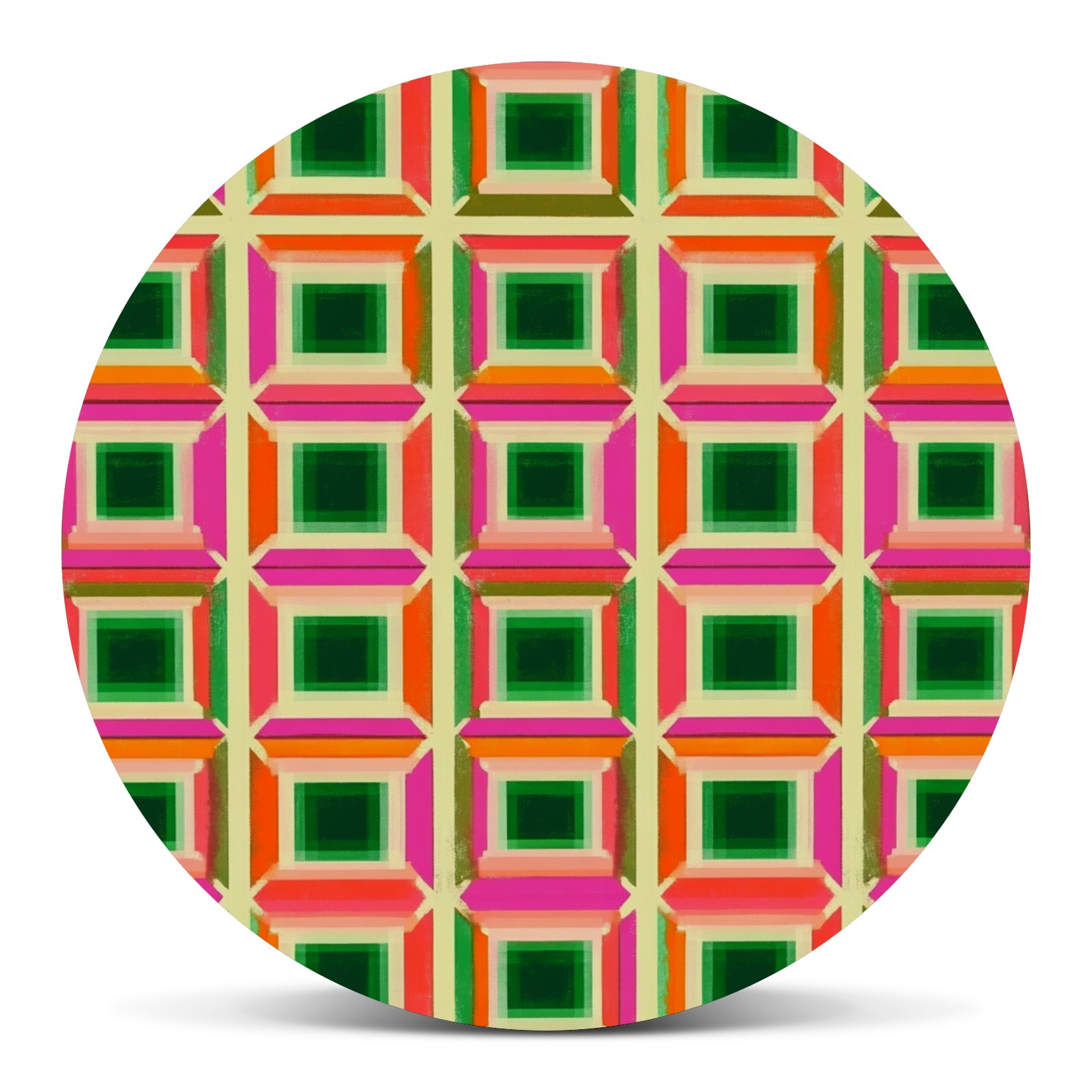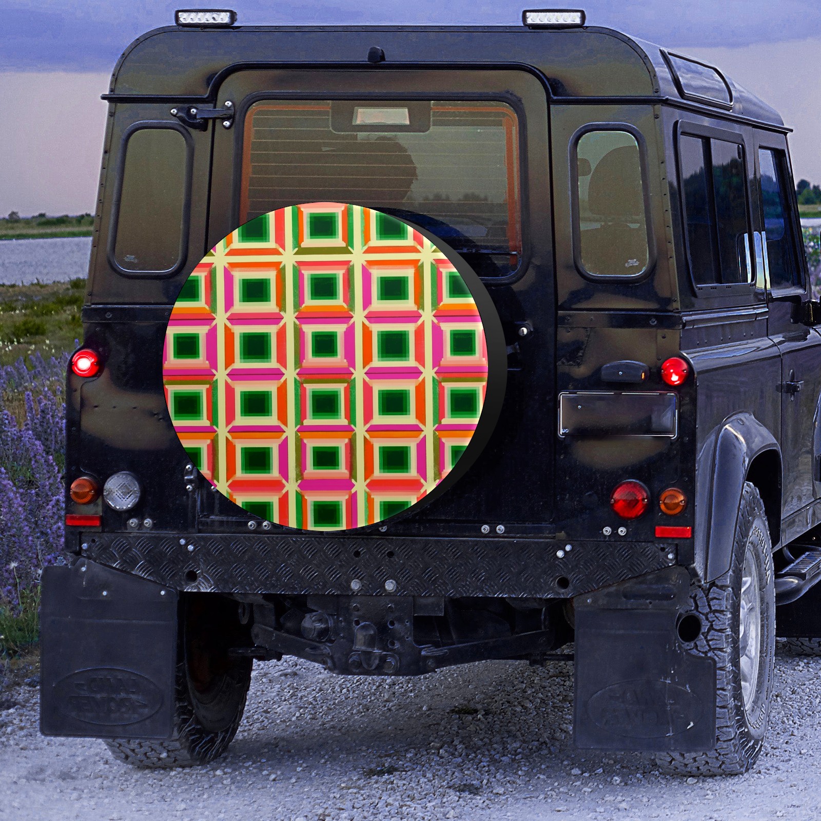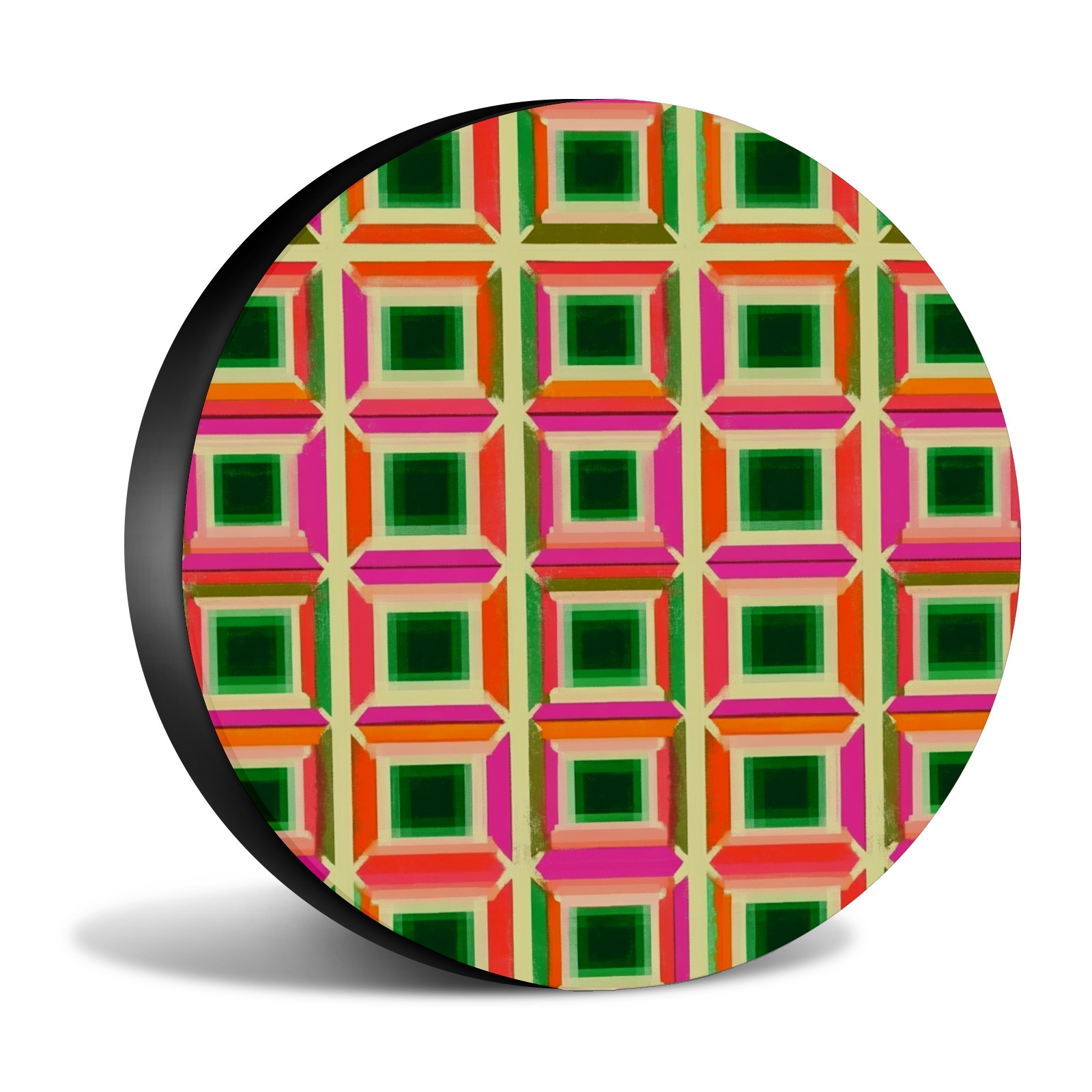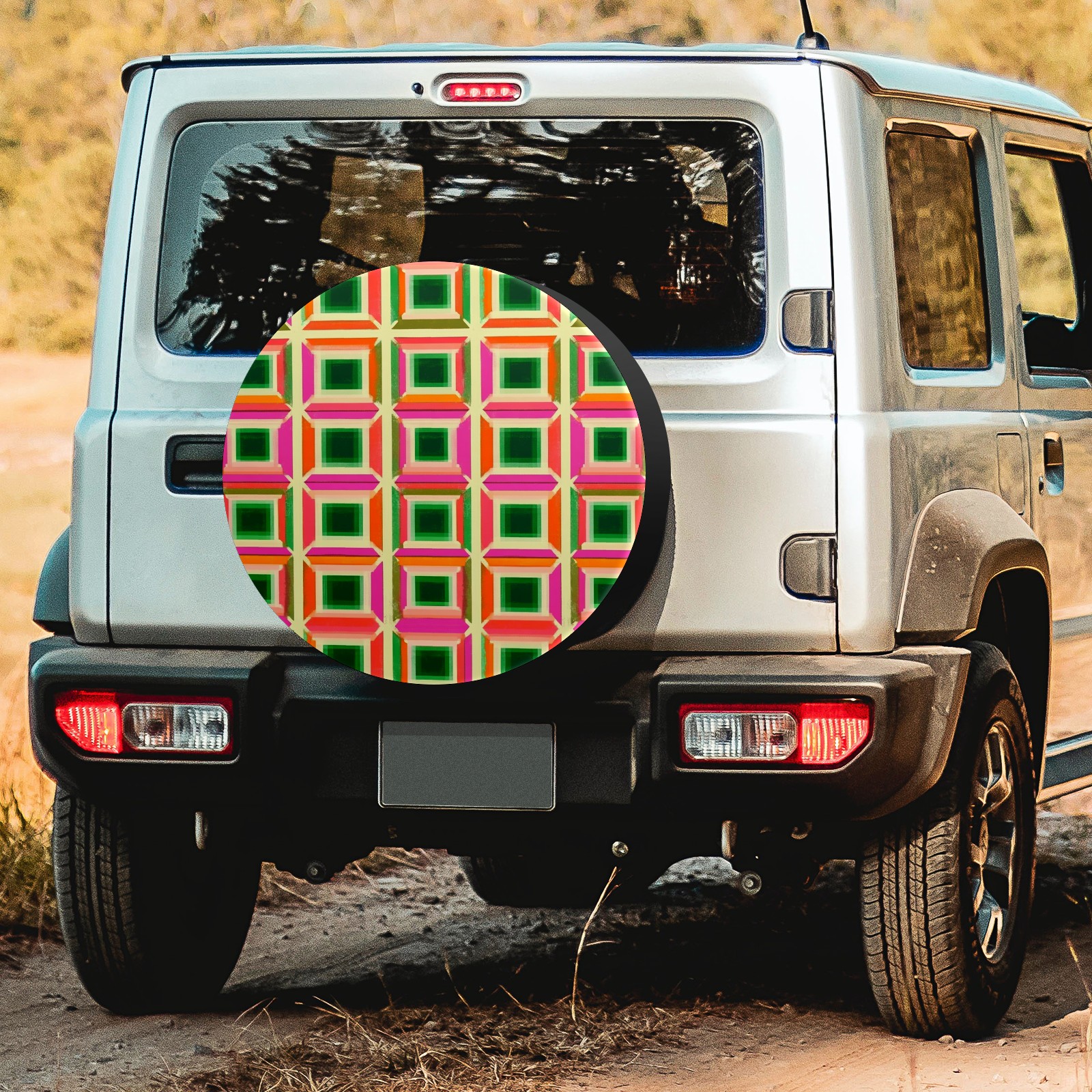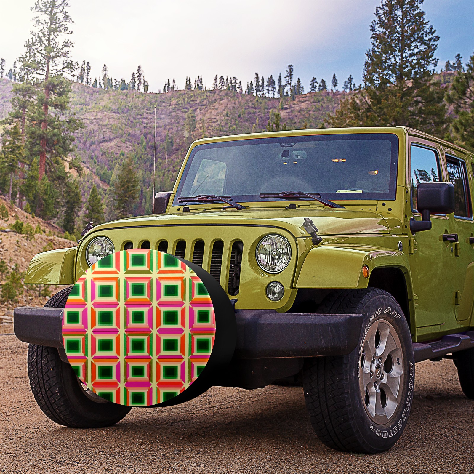 Green Pink And Orange Squares Spare Tire Cover, Waterproof Wheel Protector Universal Fits for Truck SUV RV Trailer Camper (14 Inch)