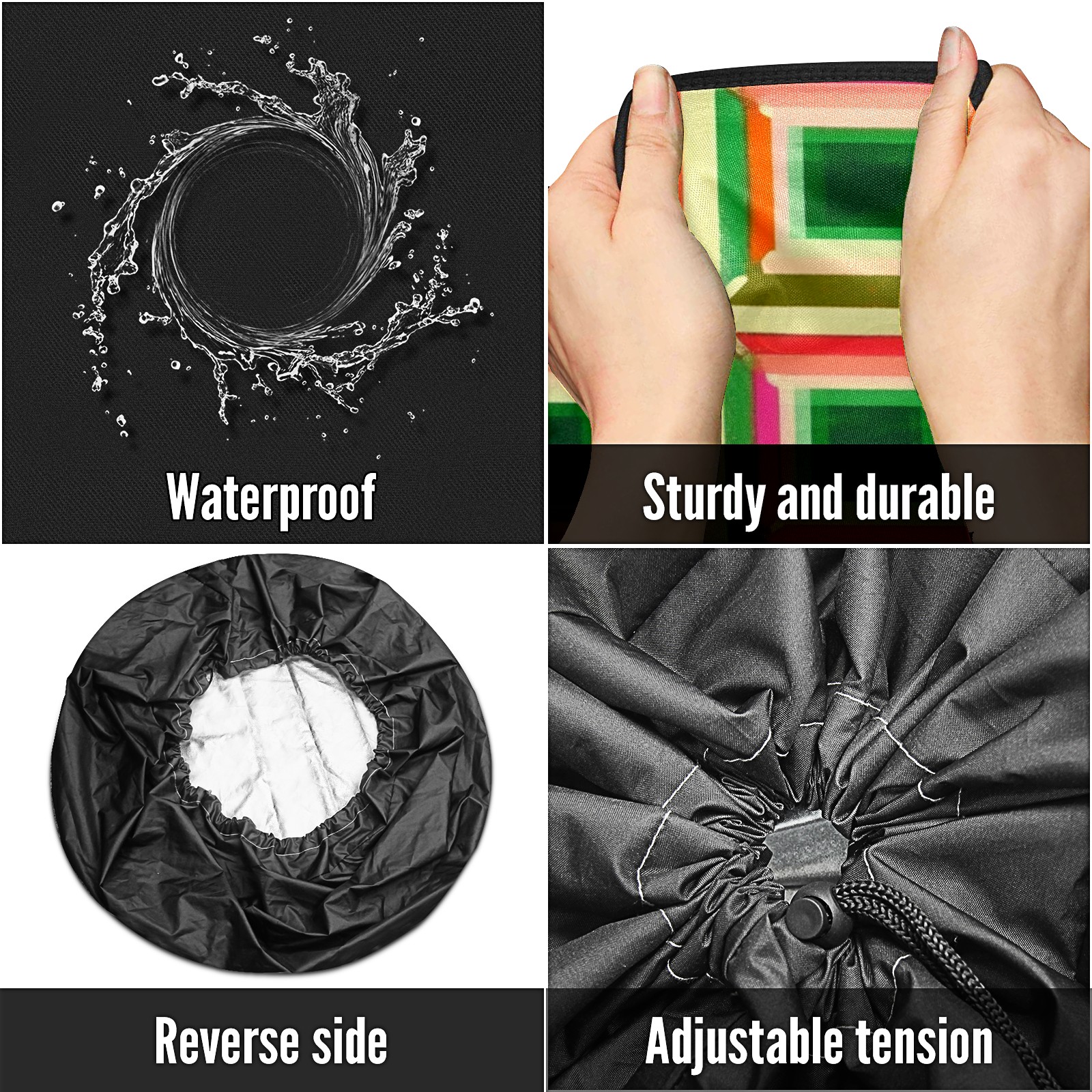 • <p>Keep your spare tire protected and your vehicle looking sharp with our universal Tire Cover. Designed with a sleek single-sided print and classic black sides, this rugged cover is made from high-quality polyester fabric that is fully waterproof. The adjustable nylon rope ensures a secure, custom fit for any tire, helping to maintain a clean and professional appearance for your vehicle.</p>