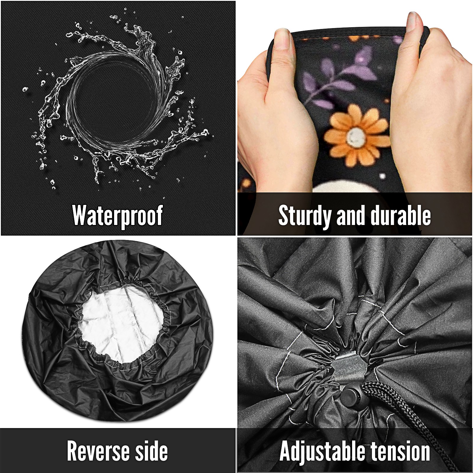 • <p>Keep your spare tire protected and your vehicle looking sharp with our universal Tire Cover. Designed with a sleek single-sided print and classic black sides, this rugged cover is made from high-quality polyester fabric that is fully waterproof. The adjustable nylon rope ensures a secure, custom fit for any tire, helping to maintain a clean and professional appearance for your vehicle.</p>