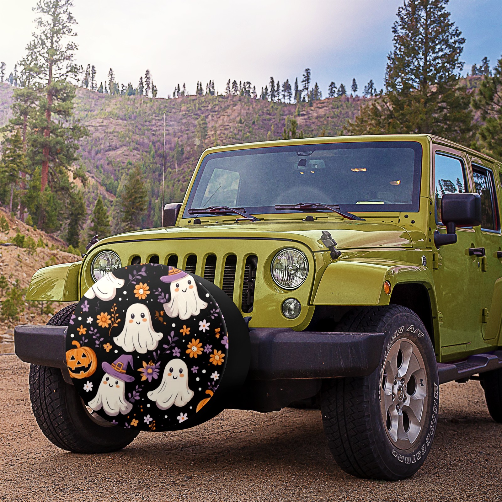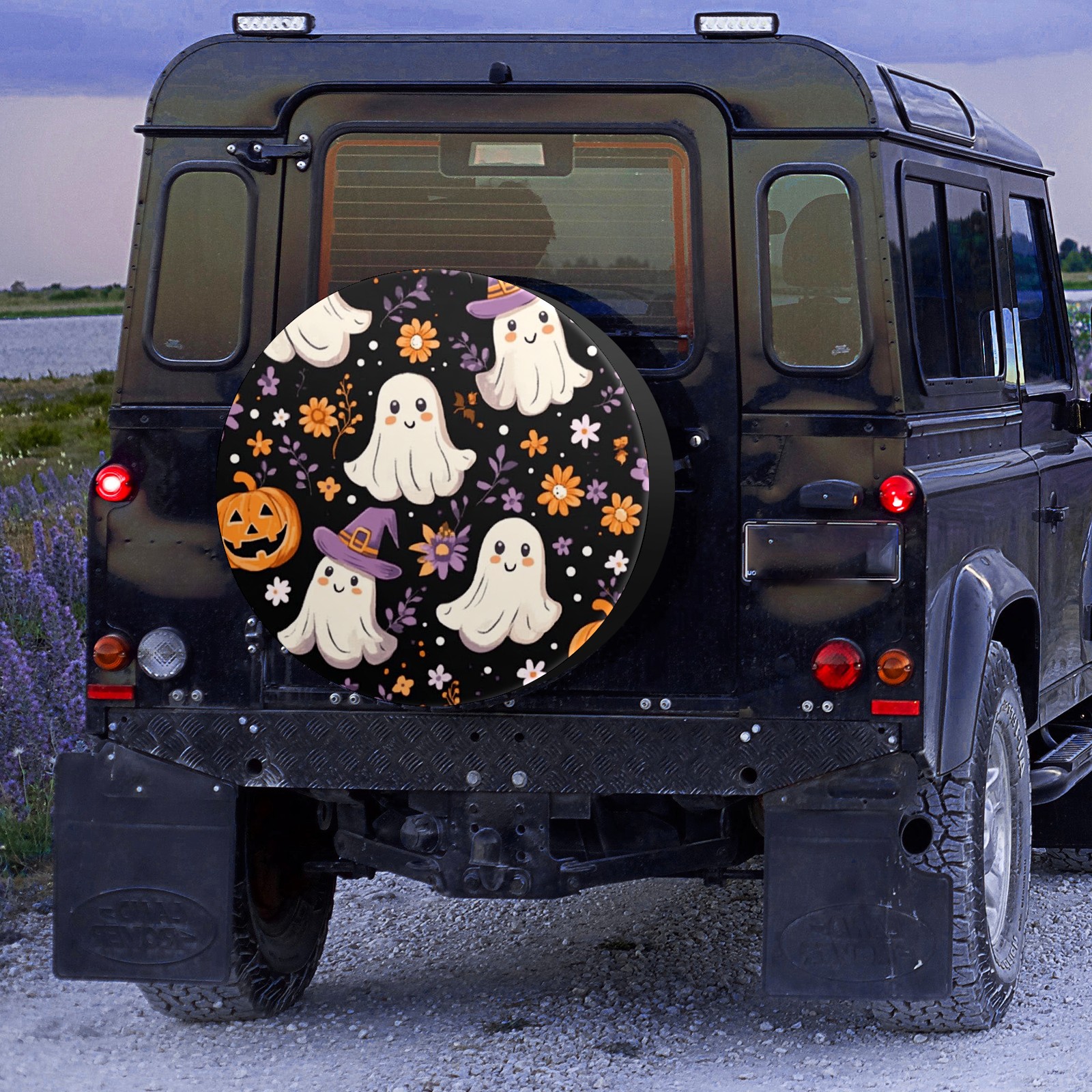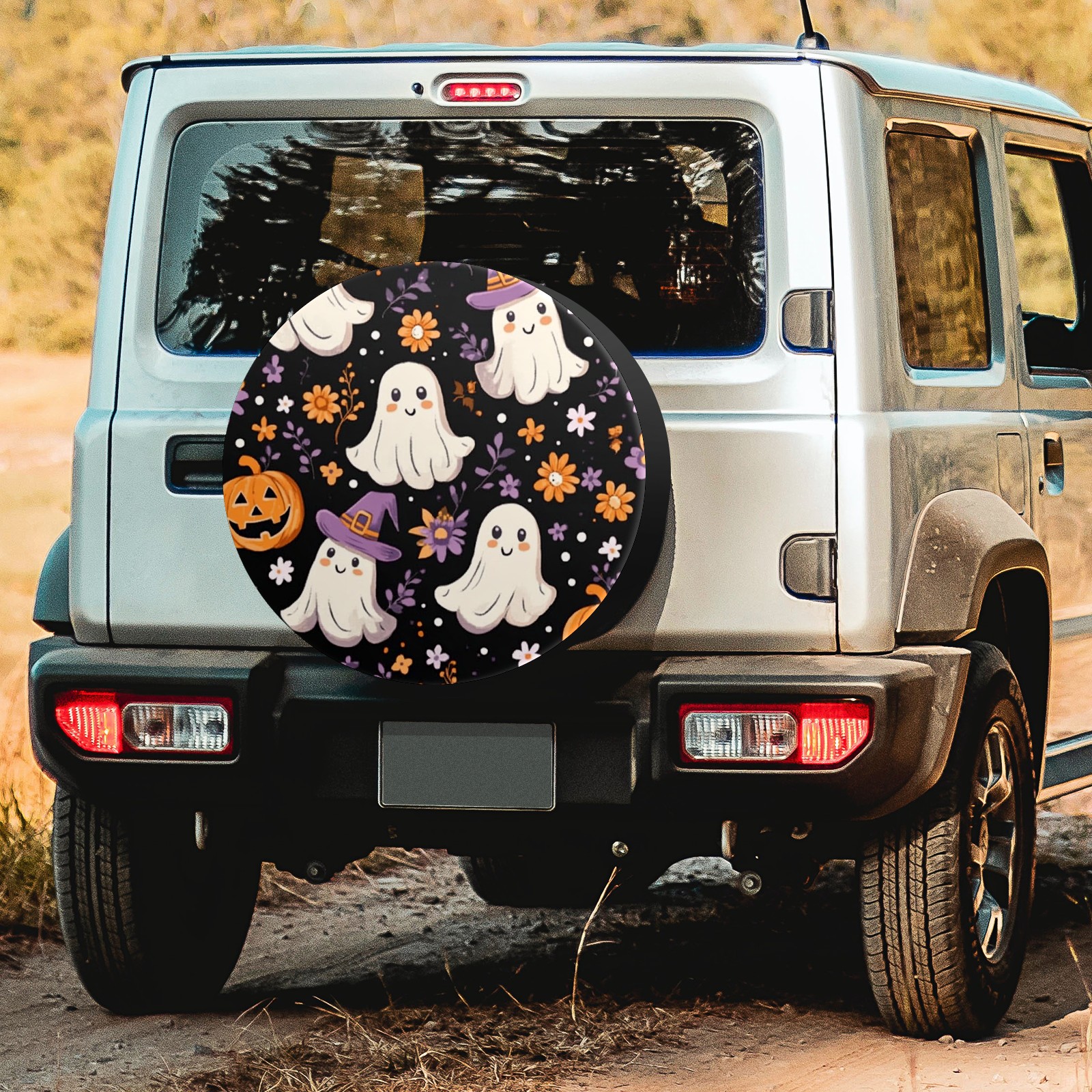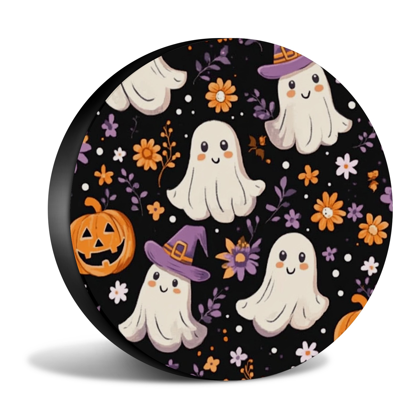 Ghosts And Pumpkins Spare Tire Cover, Waterproof Wheel Protector Universal Fits for Truck SUV RV Trailer Camper (14 Inch)