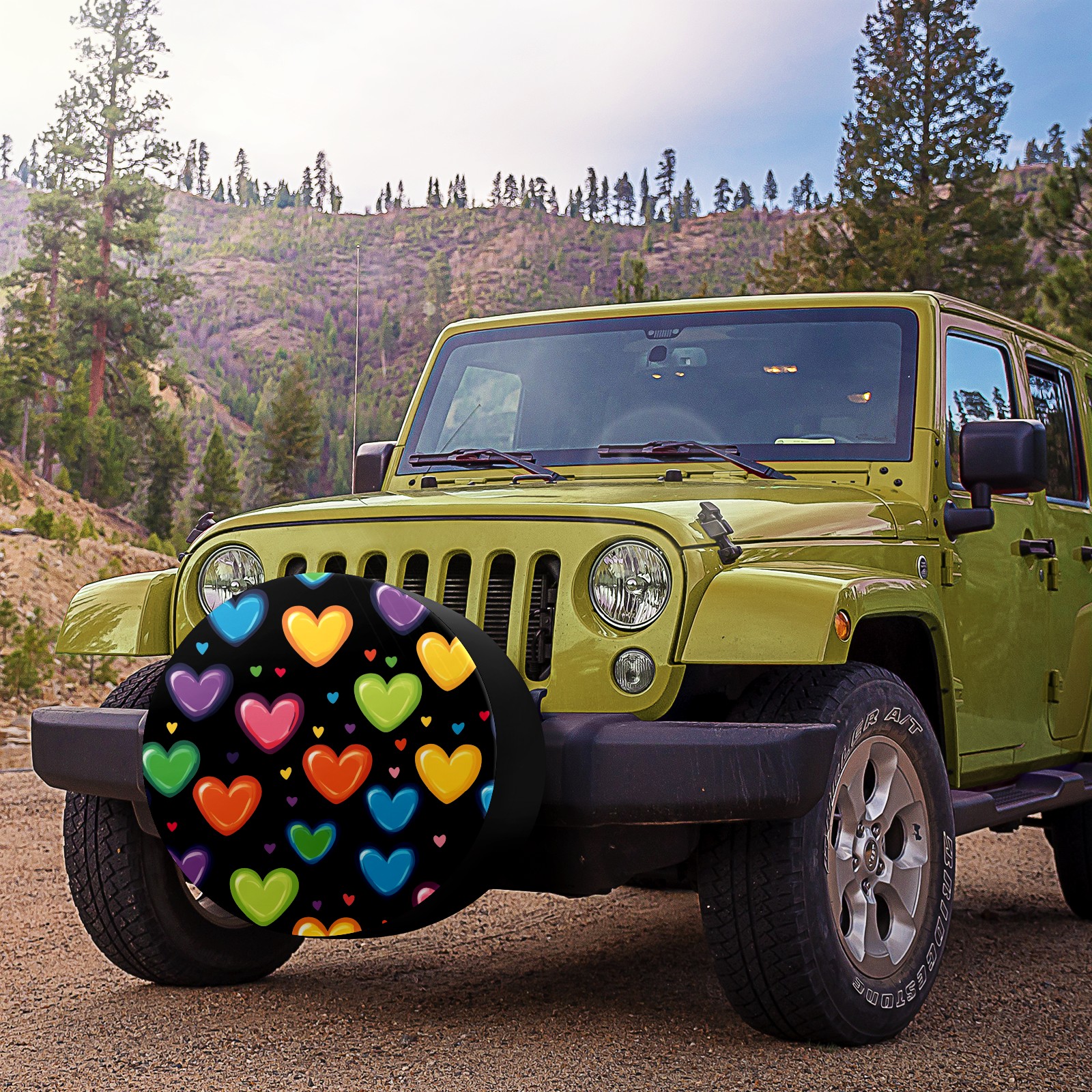 Hearts In Rainbow Colors Spare Tire Cover, Waterproof Wheel Protector Universal Fits for Truck SUV RV Trailer Camper (14 Inch)