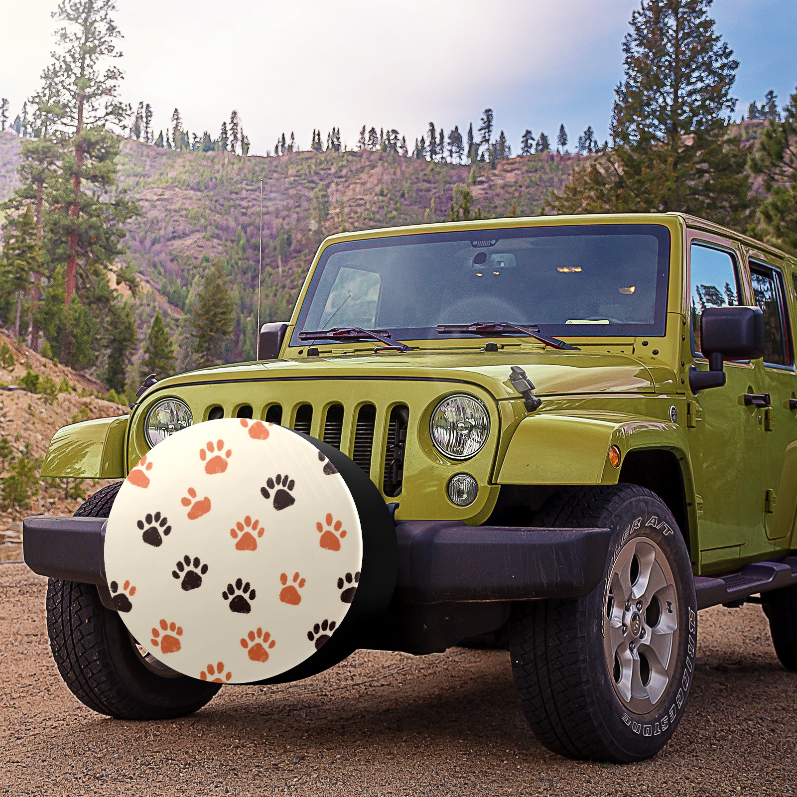 Cute Paw Prints Spare Tire Cover, Waterproof Wheel Protector Universal Fits for Truck SUV RV Trailer Camper (14 Inch)