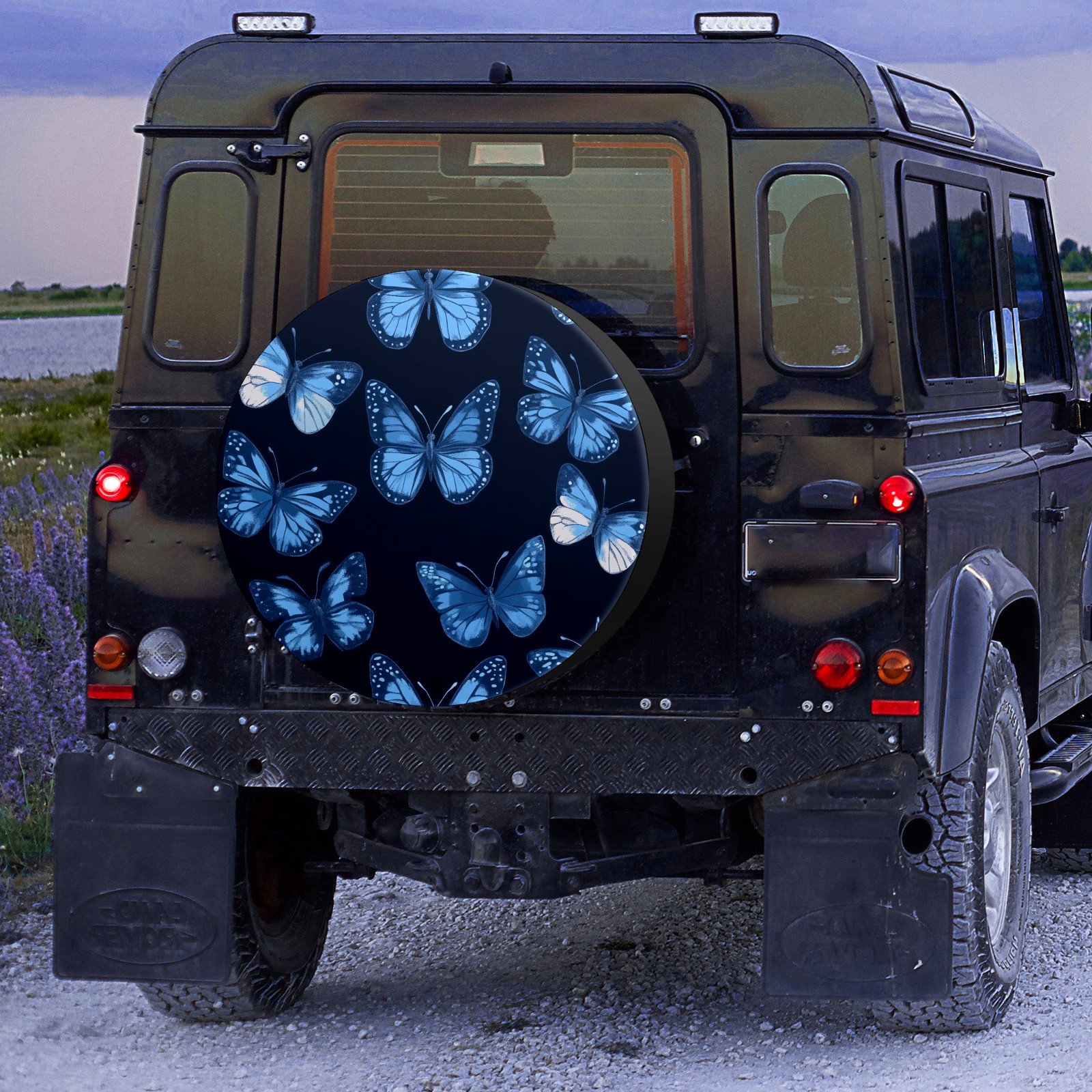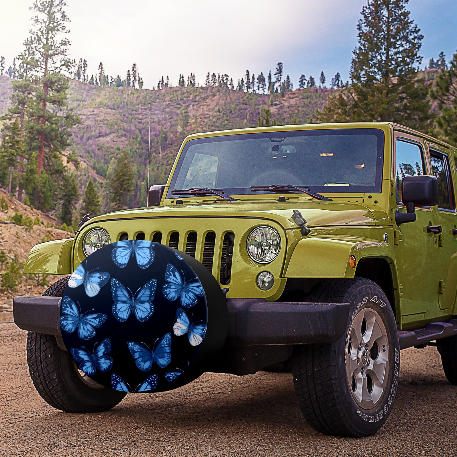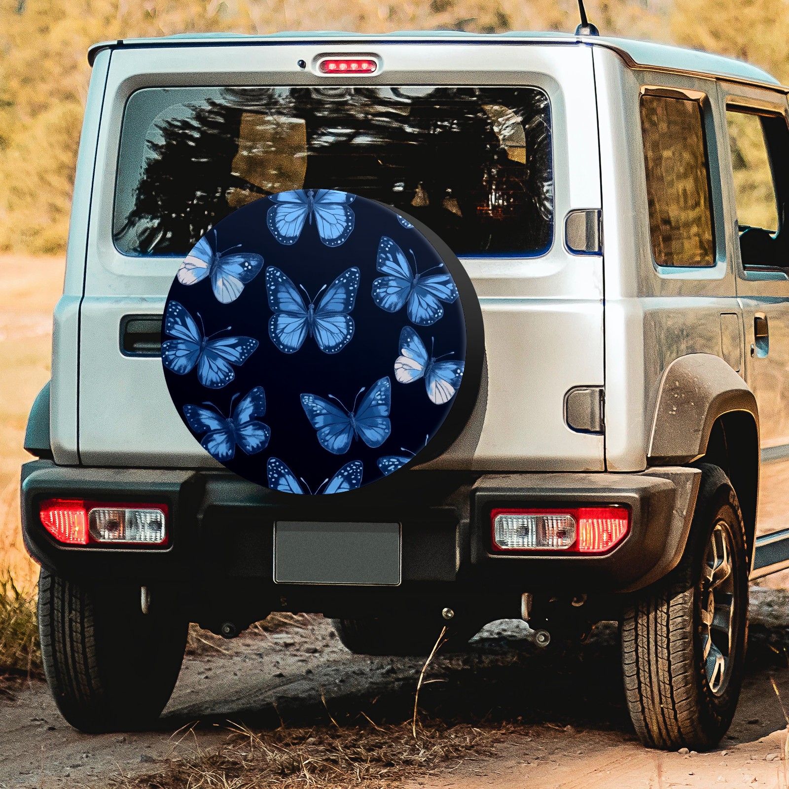 Blue Butterflies Spare Tire Cover, Waterproof Wheel Protector Universal Fits for Truck SUV RV Trailer Camper (14 Inch)