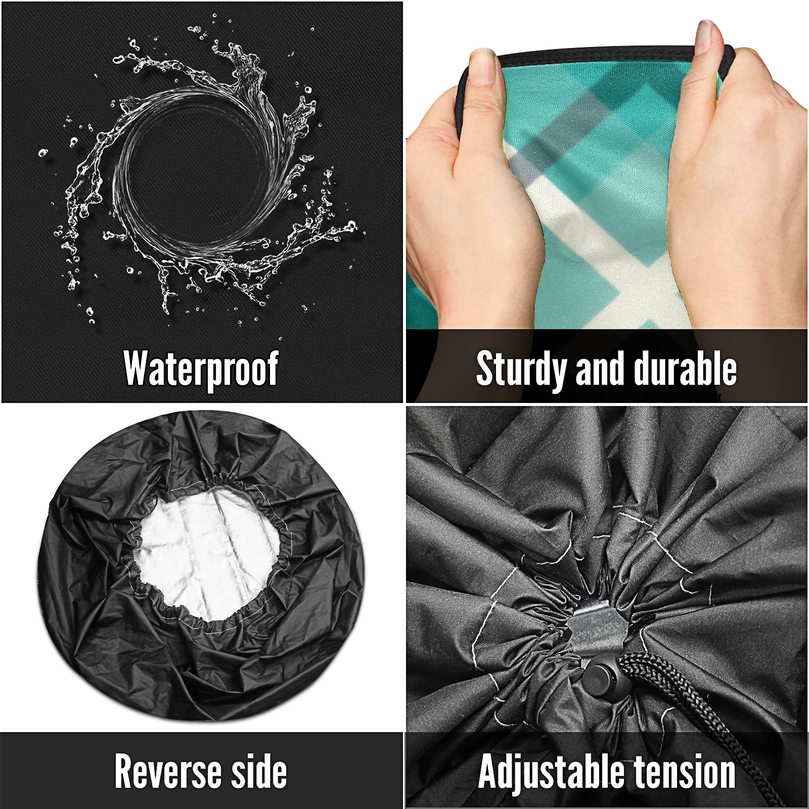 • <p>Keep your spare tire protected and your vehicle looking sharp with our universal Tire Cover. Designed with a sleek single-sided print and classic black sides, this rugged cover is made from high-quality polyester fabric that is fully waterproof. The adjustable nylon rope ensures a secure, custom fit for any tire, helping to maintain a clean and professional appearance for your vehicle.</p>