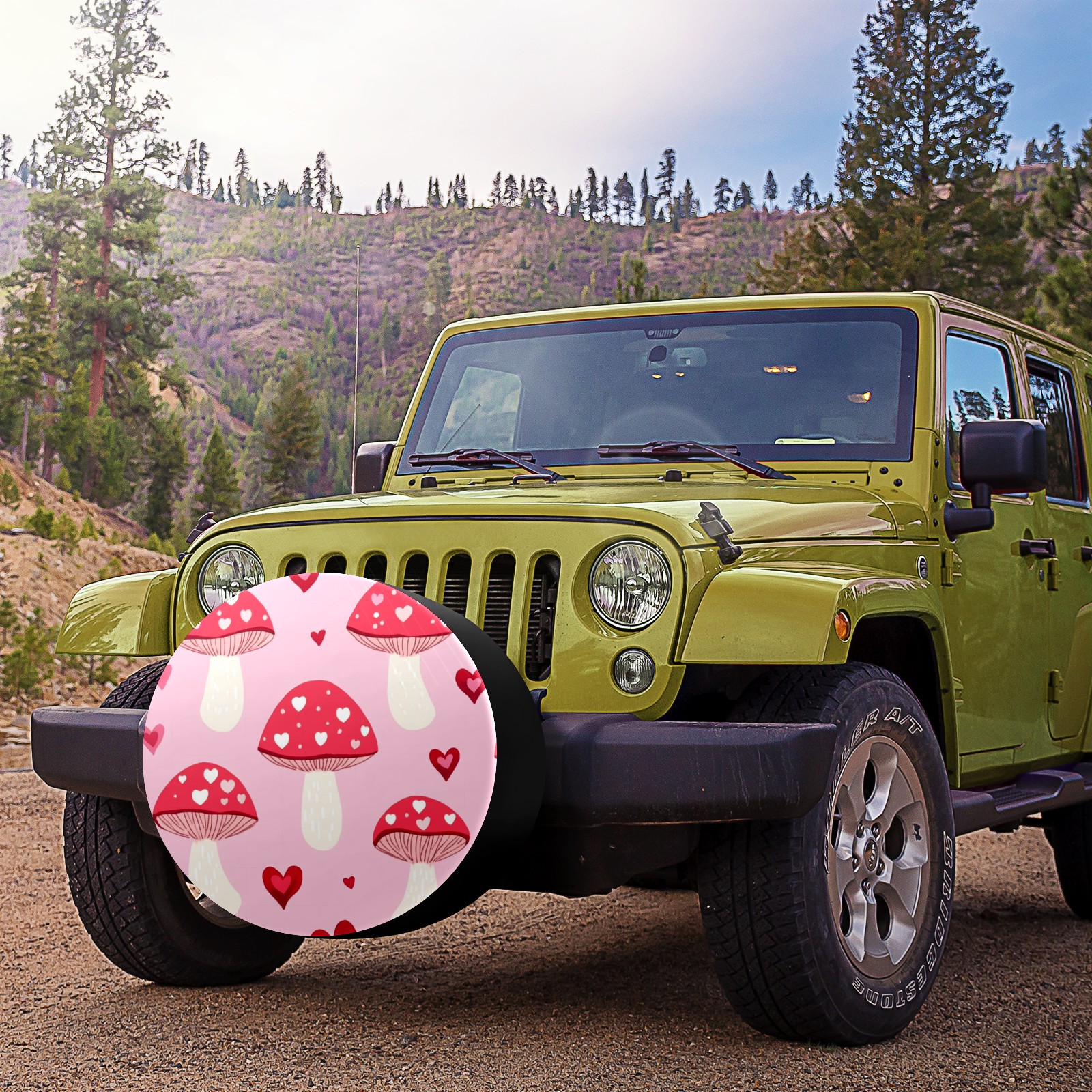 Pink Mushrooms Spare Tire Cover, Waterproof Wheel Protector Universal Fits for Truck SUV RV Trailer Camper (14 Inch)