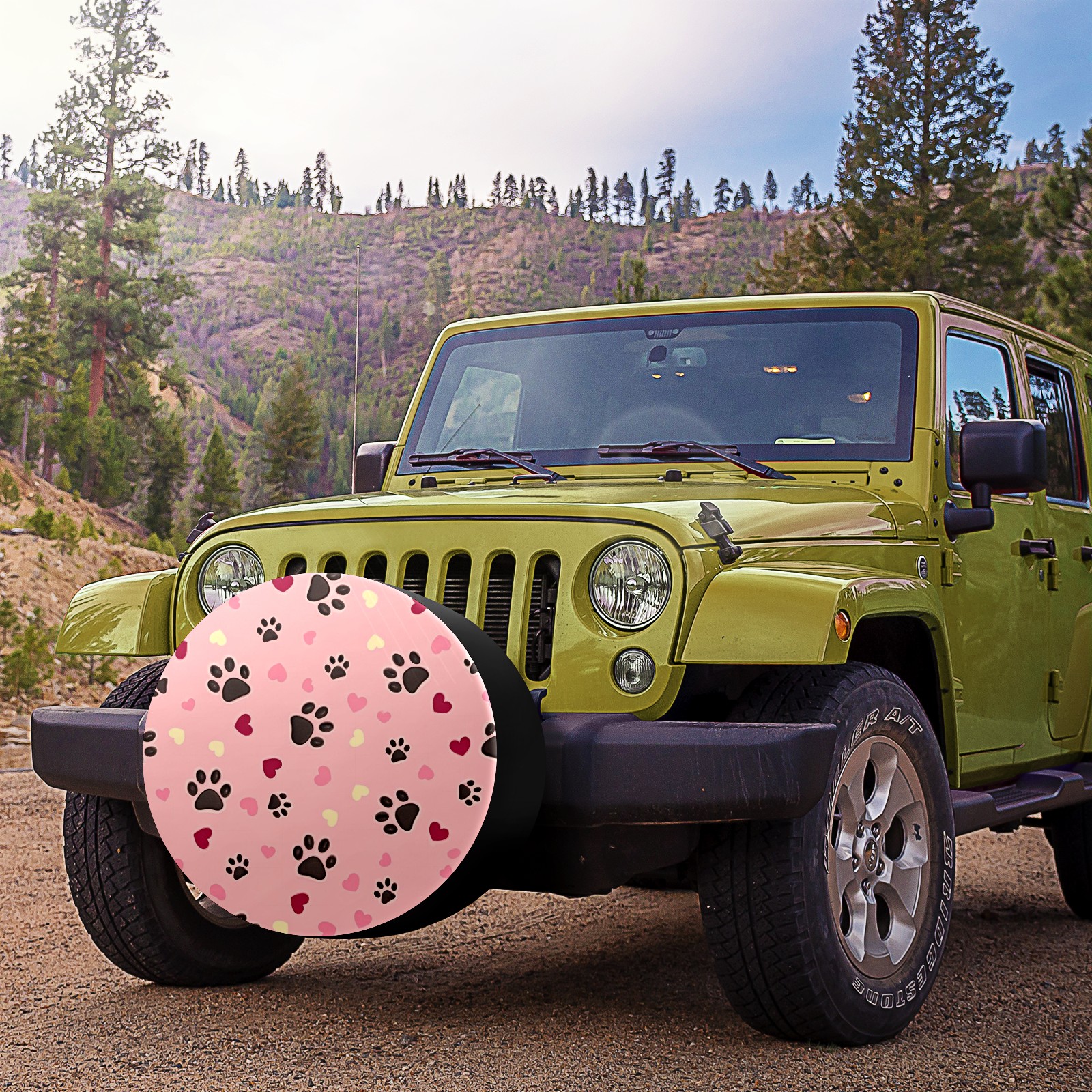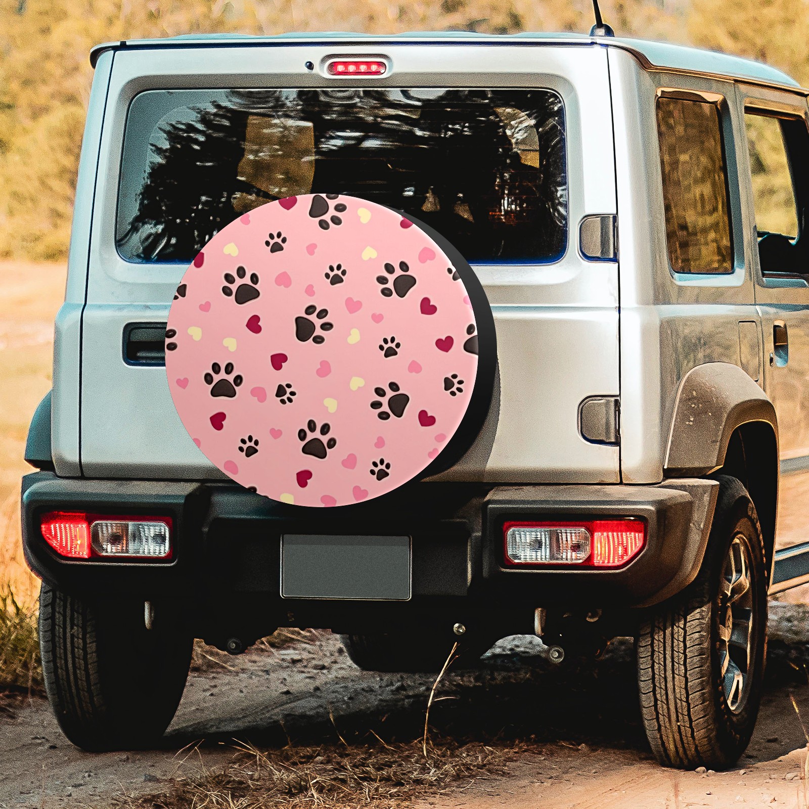 Heart And Dog Paw Spare Tire Cover, Waterproof Wheel Protector Universal Fits for Truck SUV RV Trailer Camper (14 Inch)