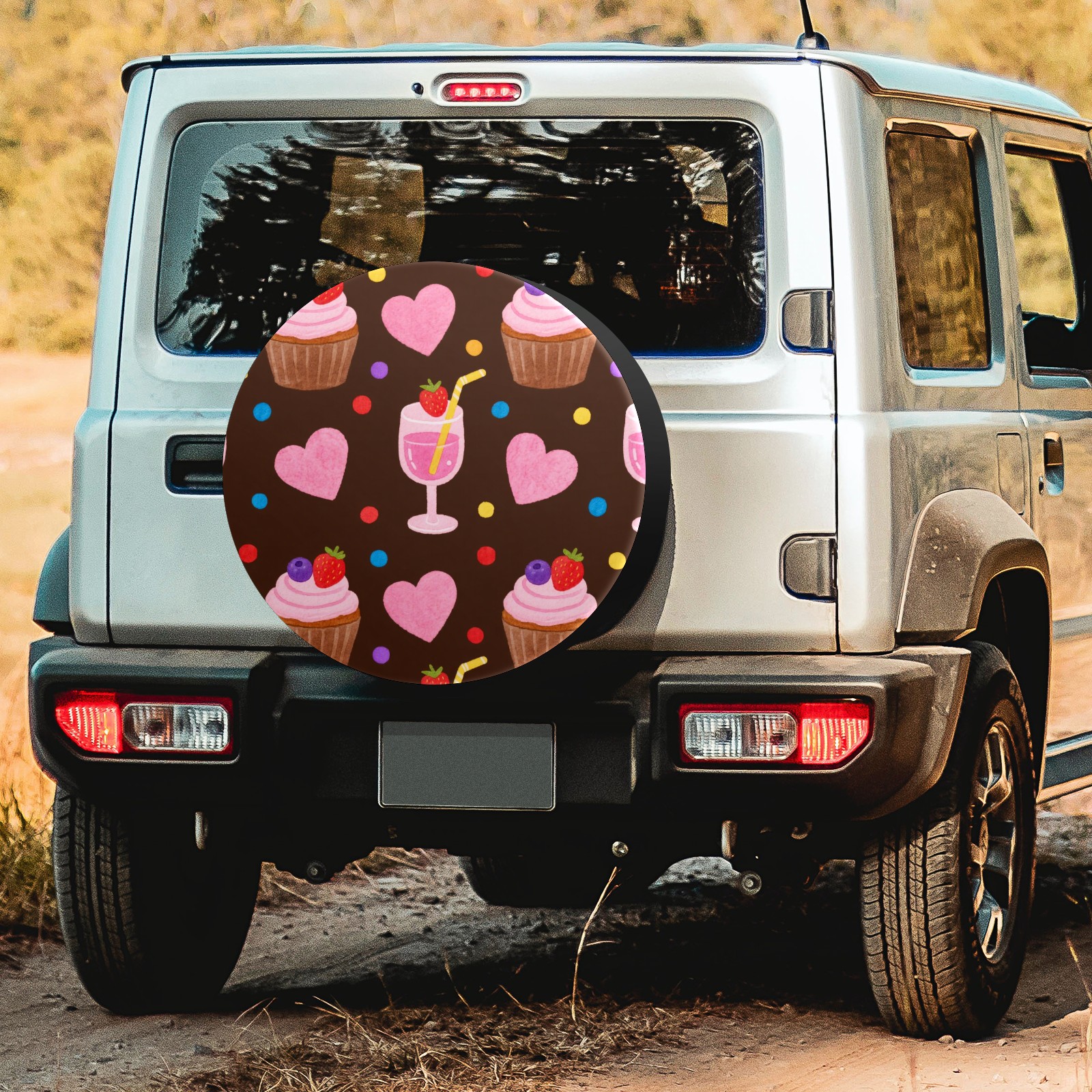 Cupcake And Juice Spare Tire Cover, Waterproof Wheel Protector Universal Fits for Truck SUV RV Trailer Camper (14 Inch)