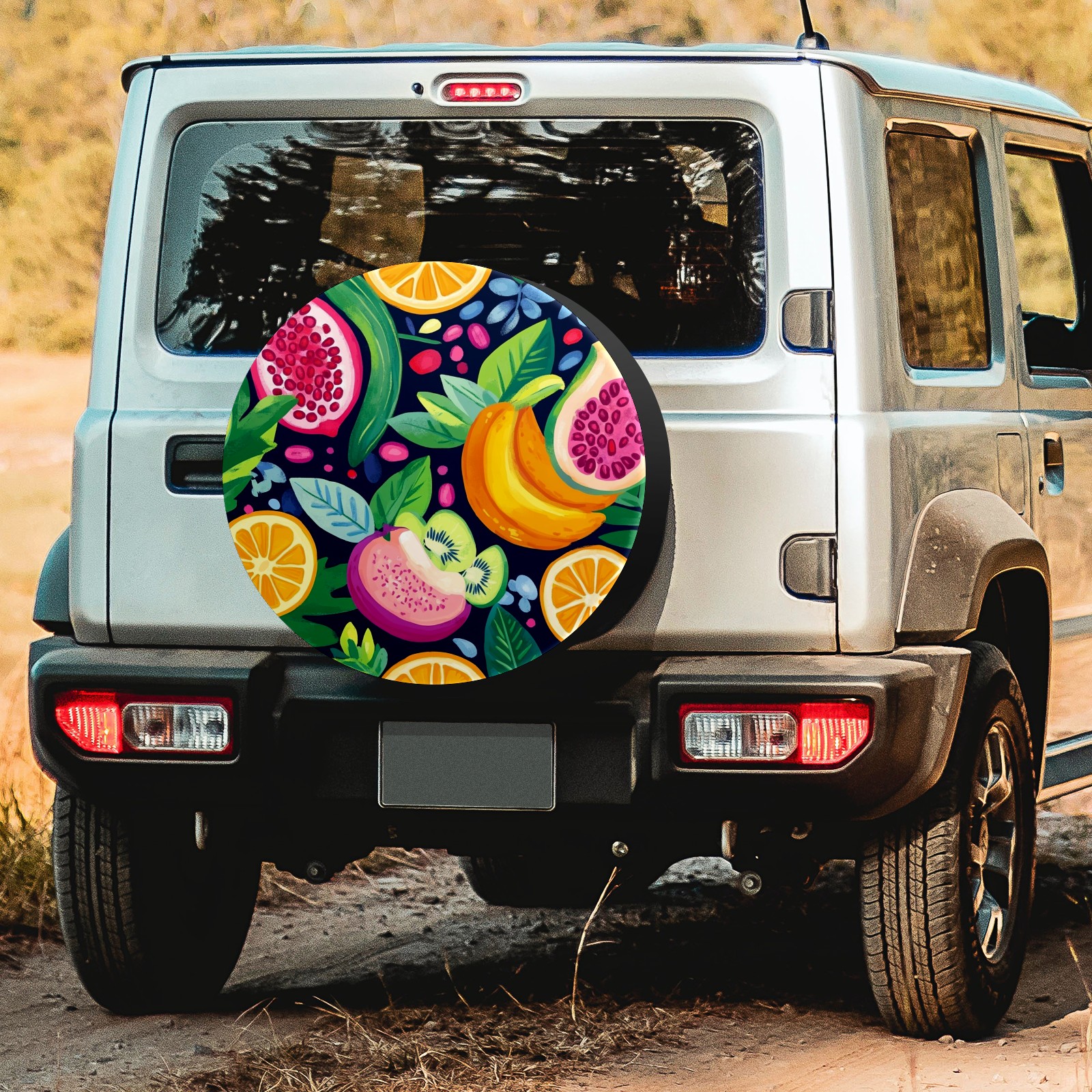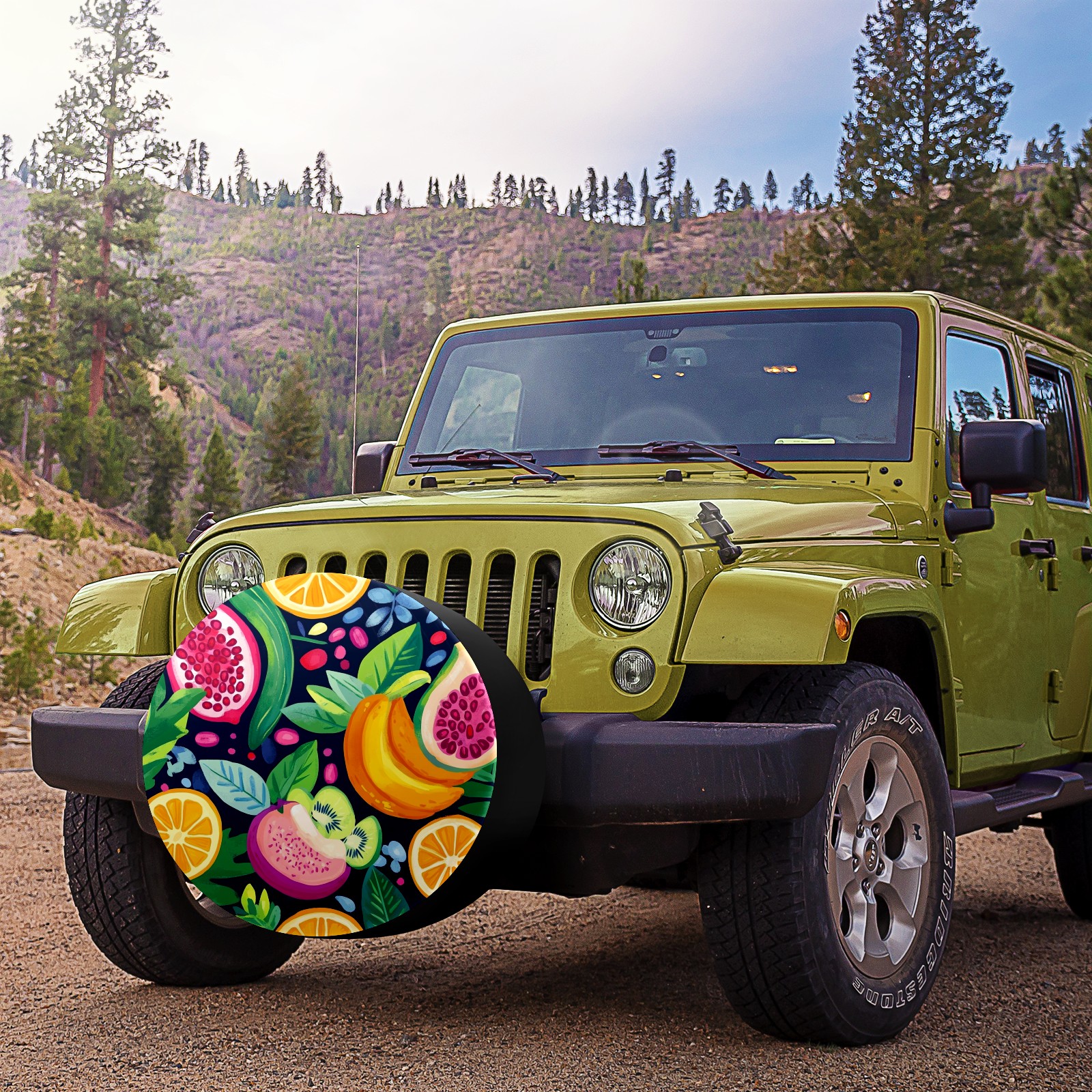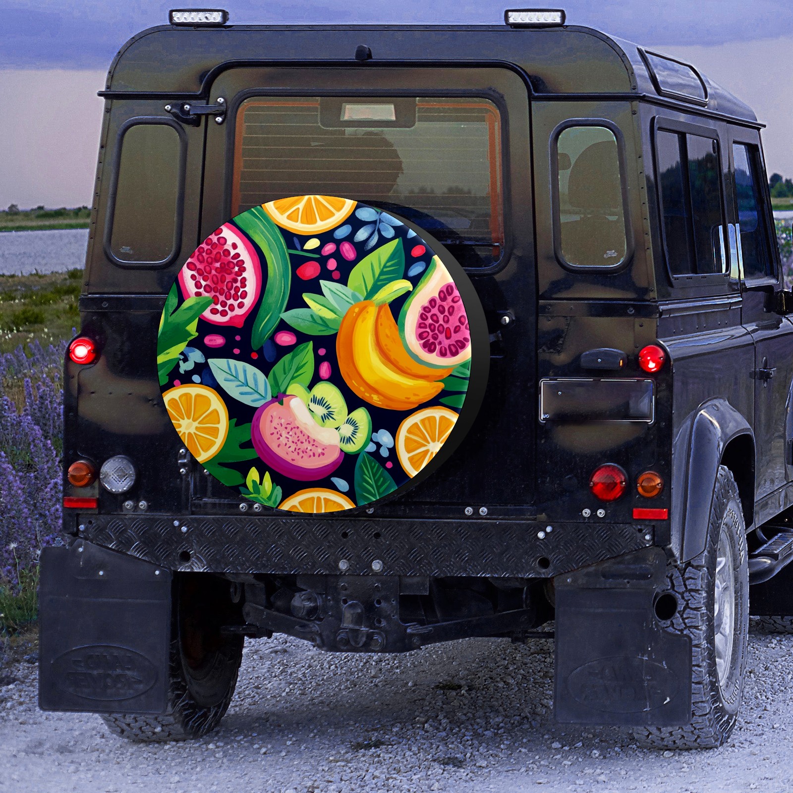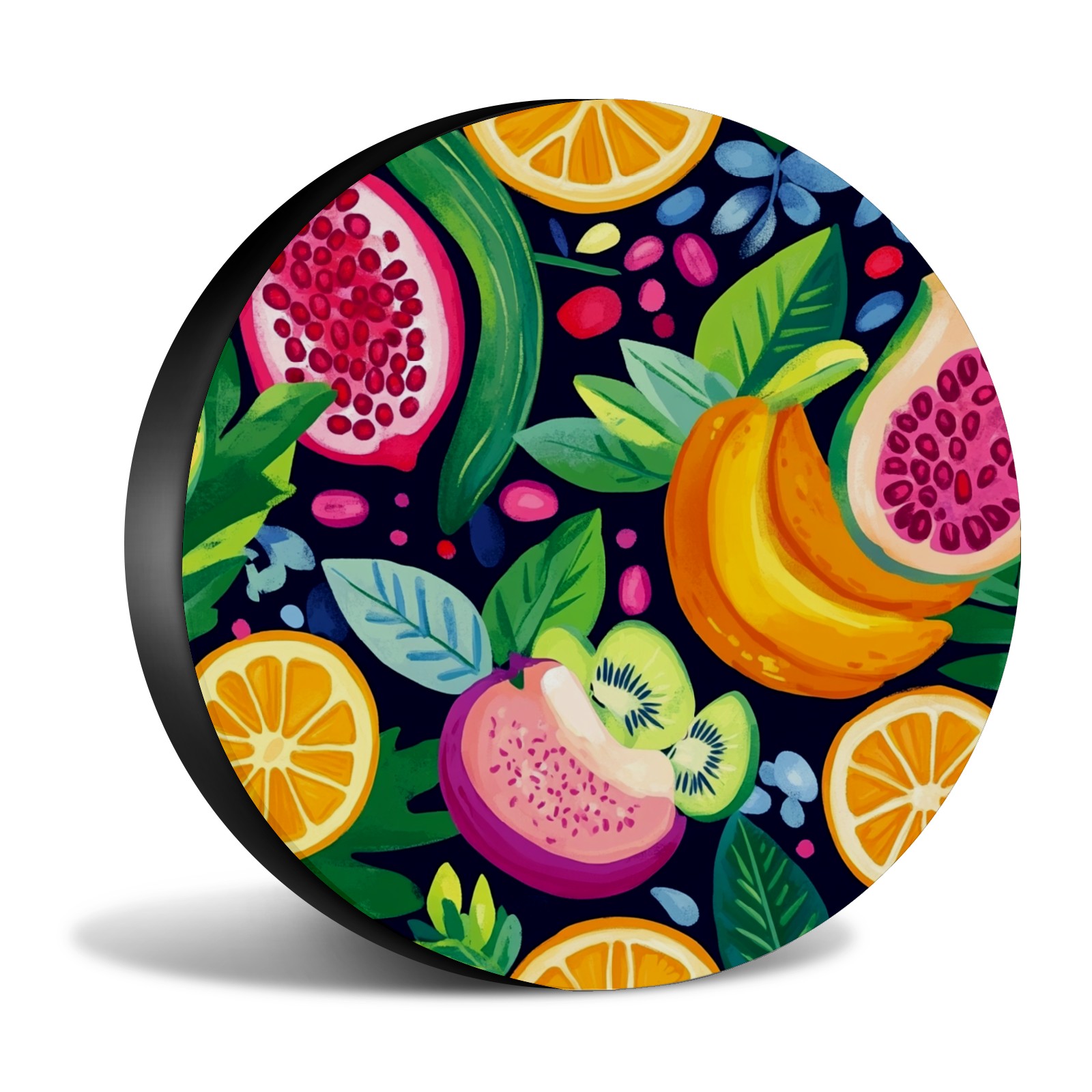 Various Tropical Fruits Spare Tire Cover, Waterproof Wheel Protector Universal Fits for Truck SUV RV Trailer Camper (14 Inch)