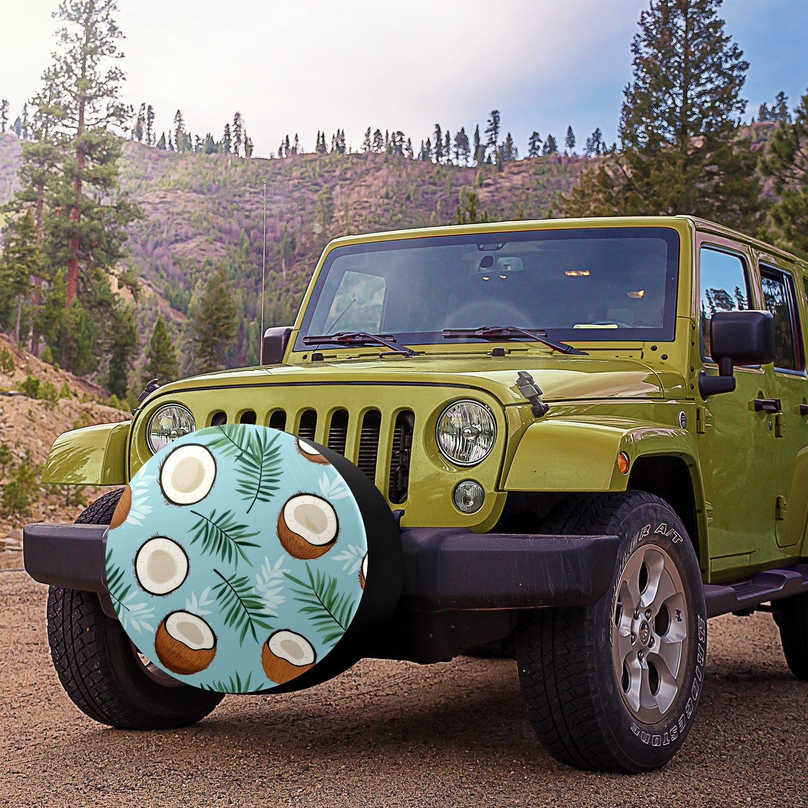 Coconuts And Leaves Spare Tire Cover, Waterproof Wheel Protector Universal Fits for Truck SUV RV Trailer Camper (14 Inch)