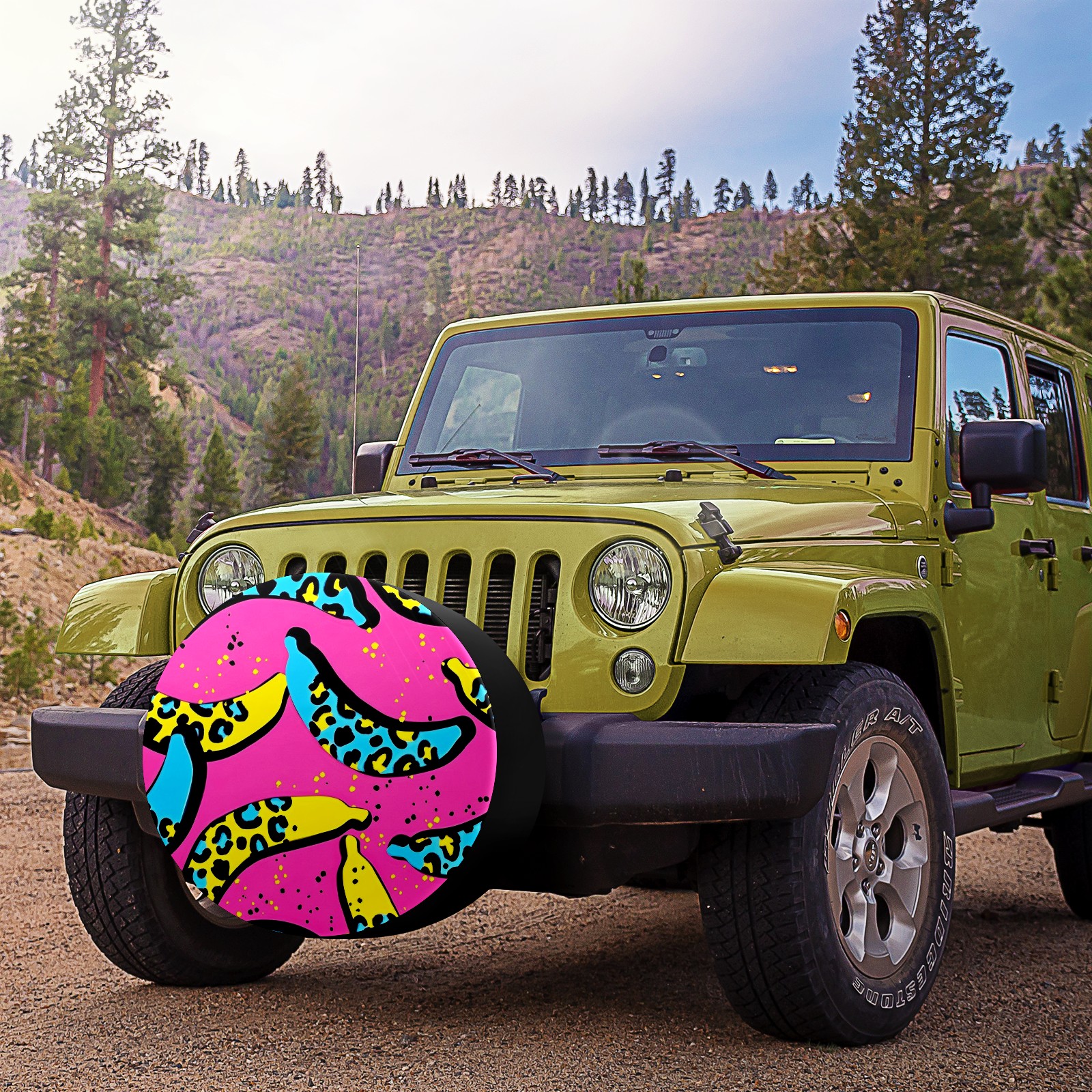 Leopard Banana Spare Tire Cover, Waterproof Wheel Protector Universal Fits for Truck SUV RV Trailer Camper (14 Inch)