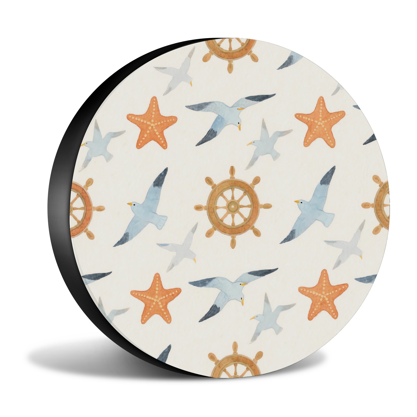 Seagull And Starfish Spare Tire Cover, Waterproof Wheel Protector Universal Fits for Truck SUV RV Trailer Camper (14 Inch)