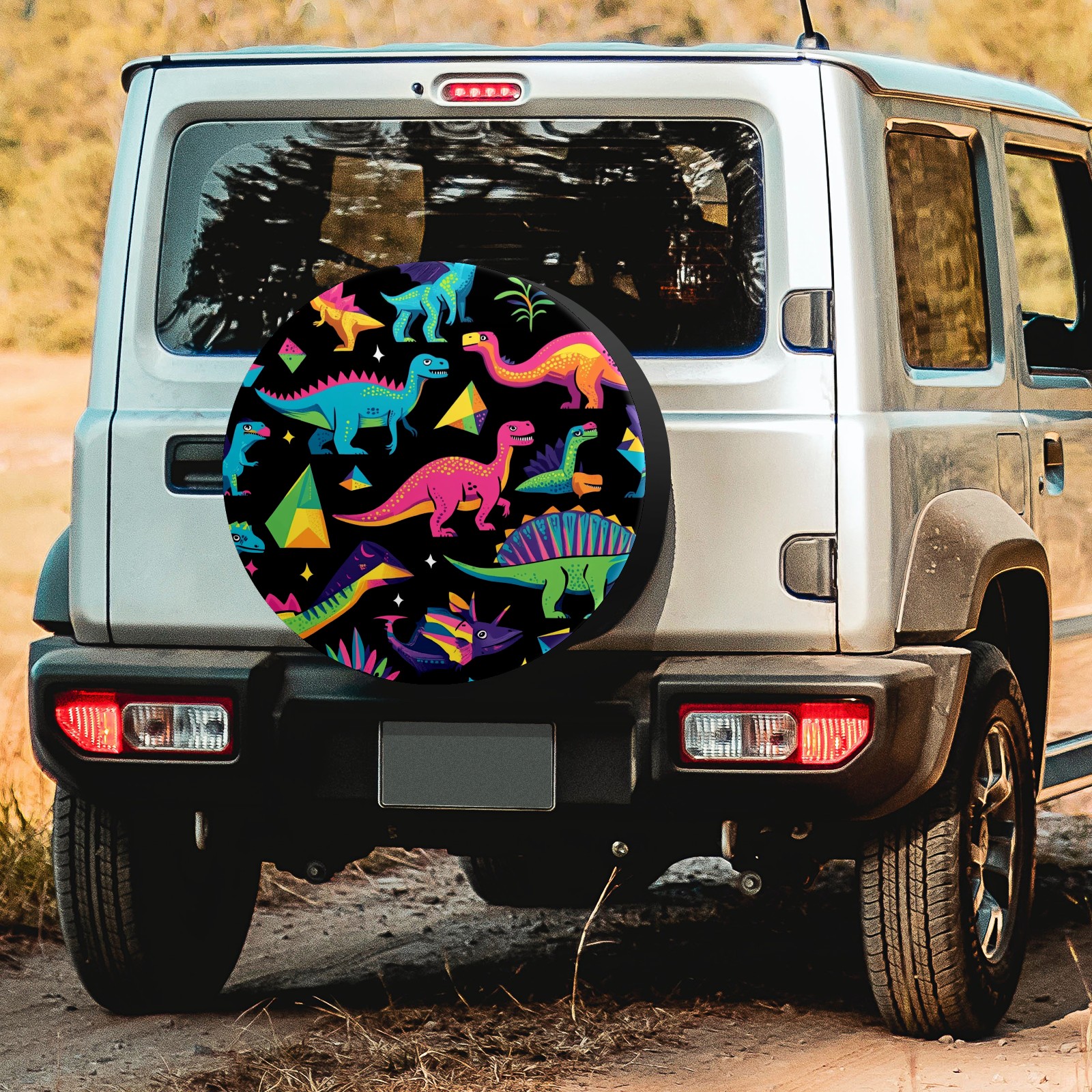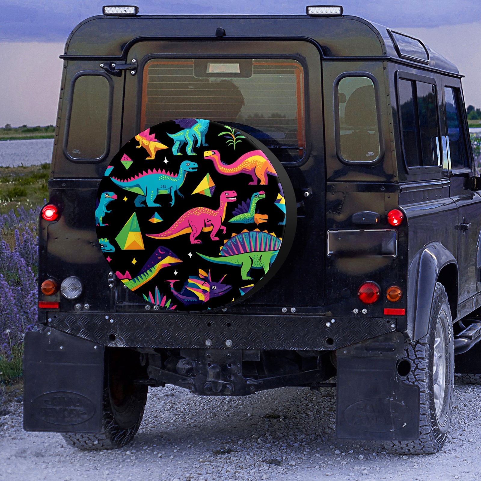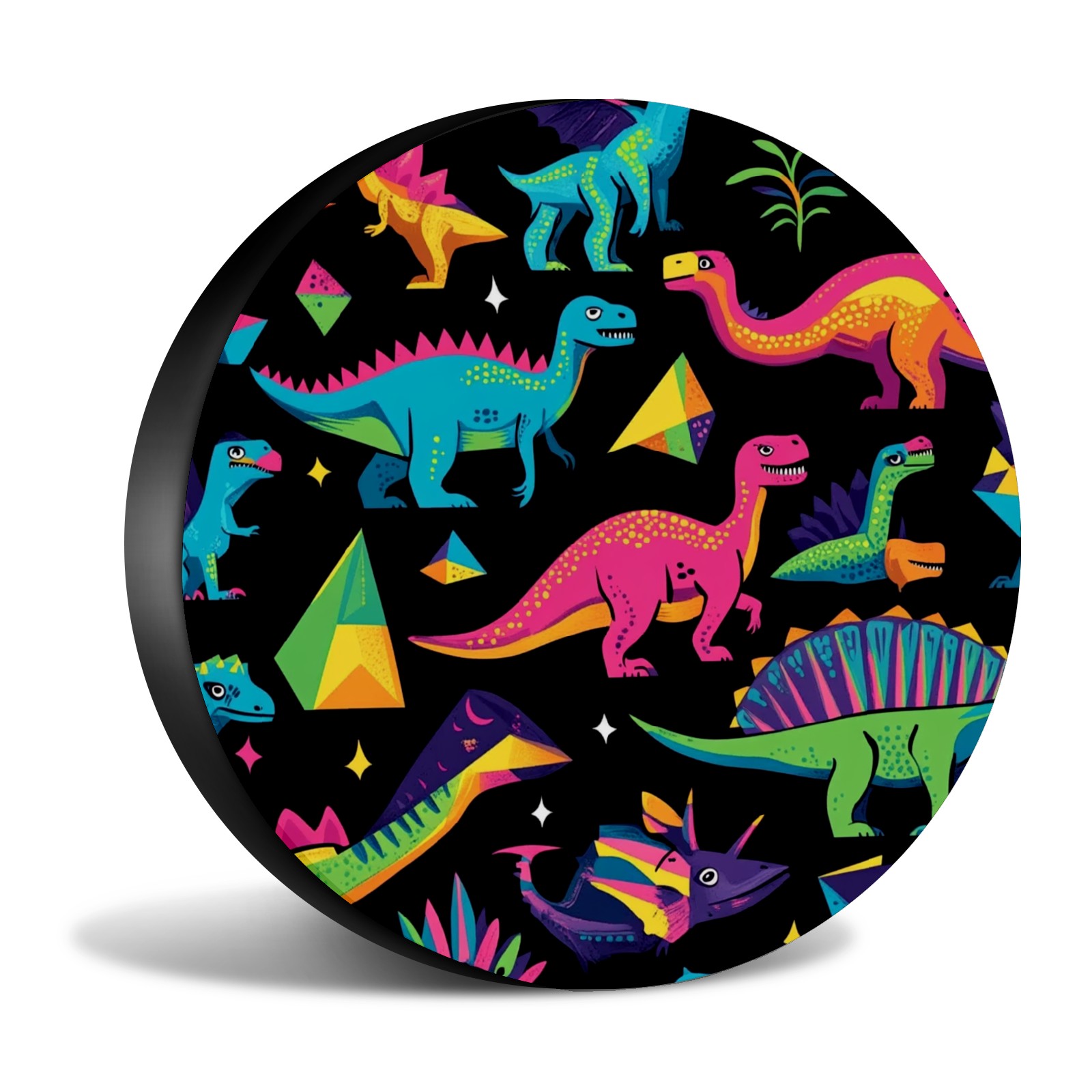 Colorful Dinosaurs Spare Tire Cover, Waterproof Wheel Protector Universal Fits for Truck SUV RV Trailer Camper (14 Inch)