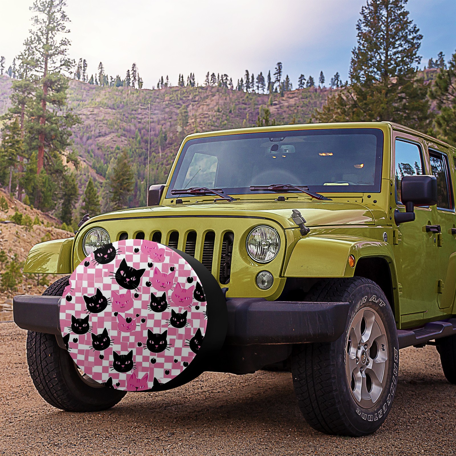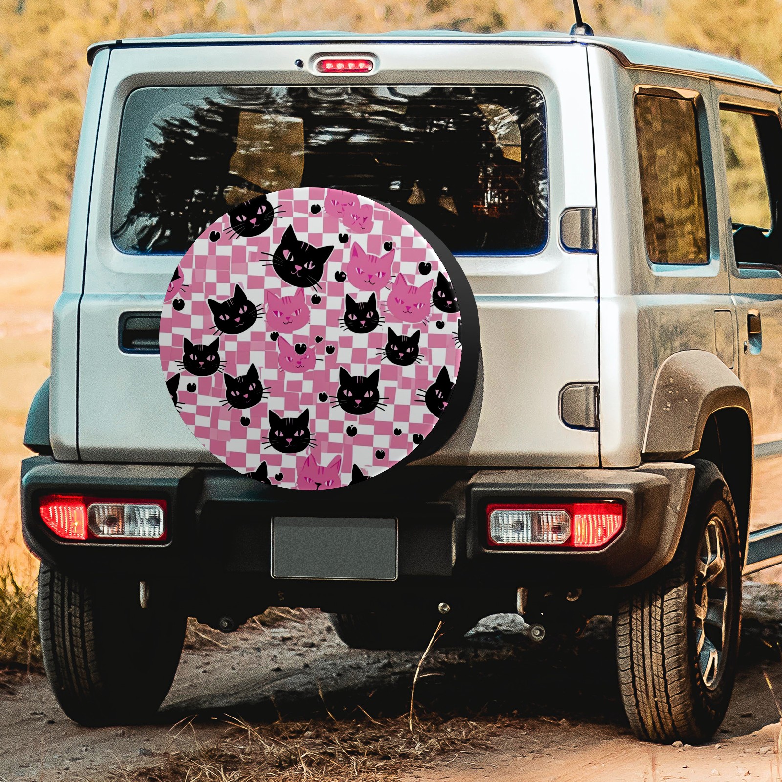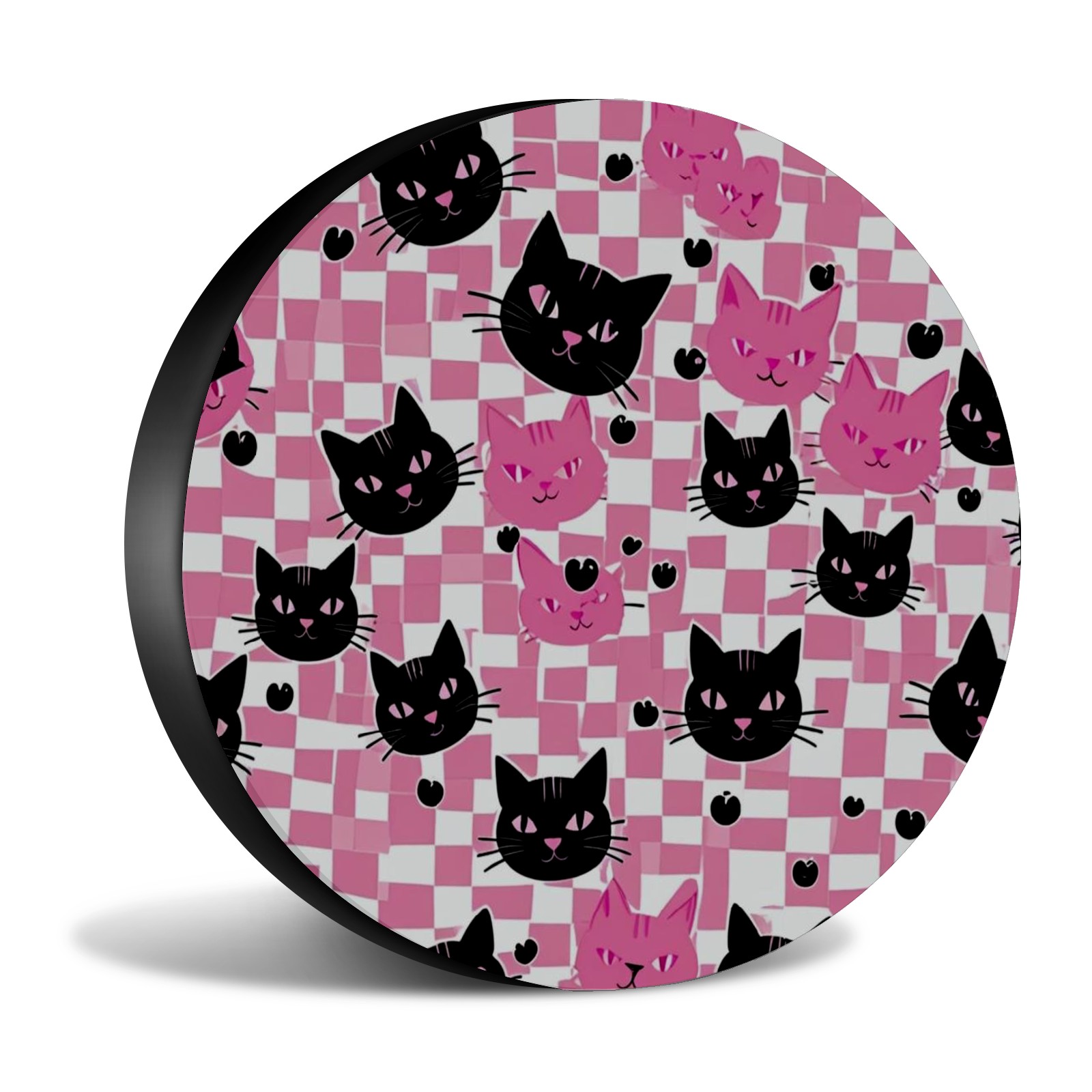 Pink Black Cat Spare Tire Cover, Waterproof Wheel Protector Universal Fits for Truck SUV RV Trailer Camper (14 Inch)