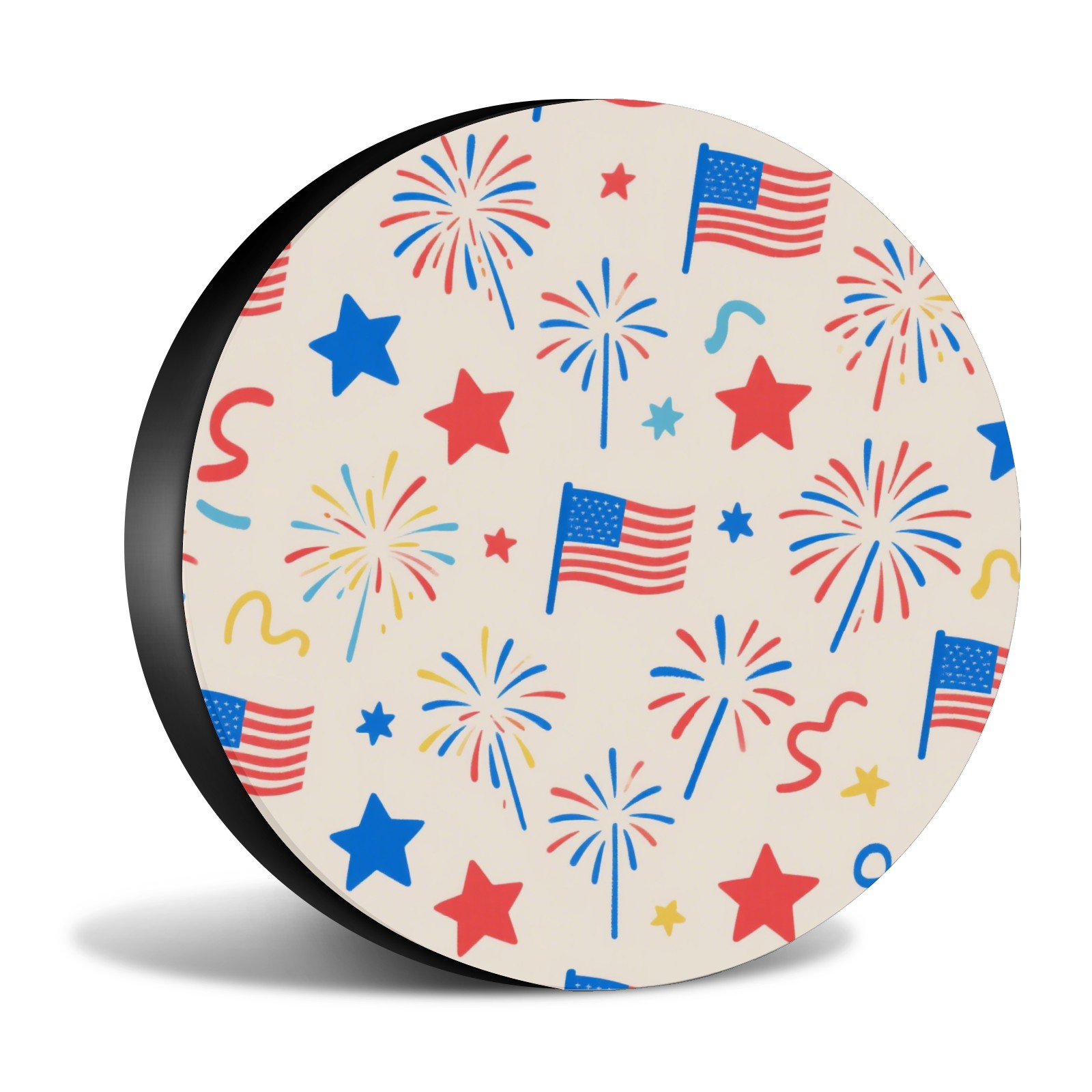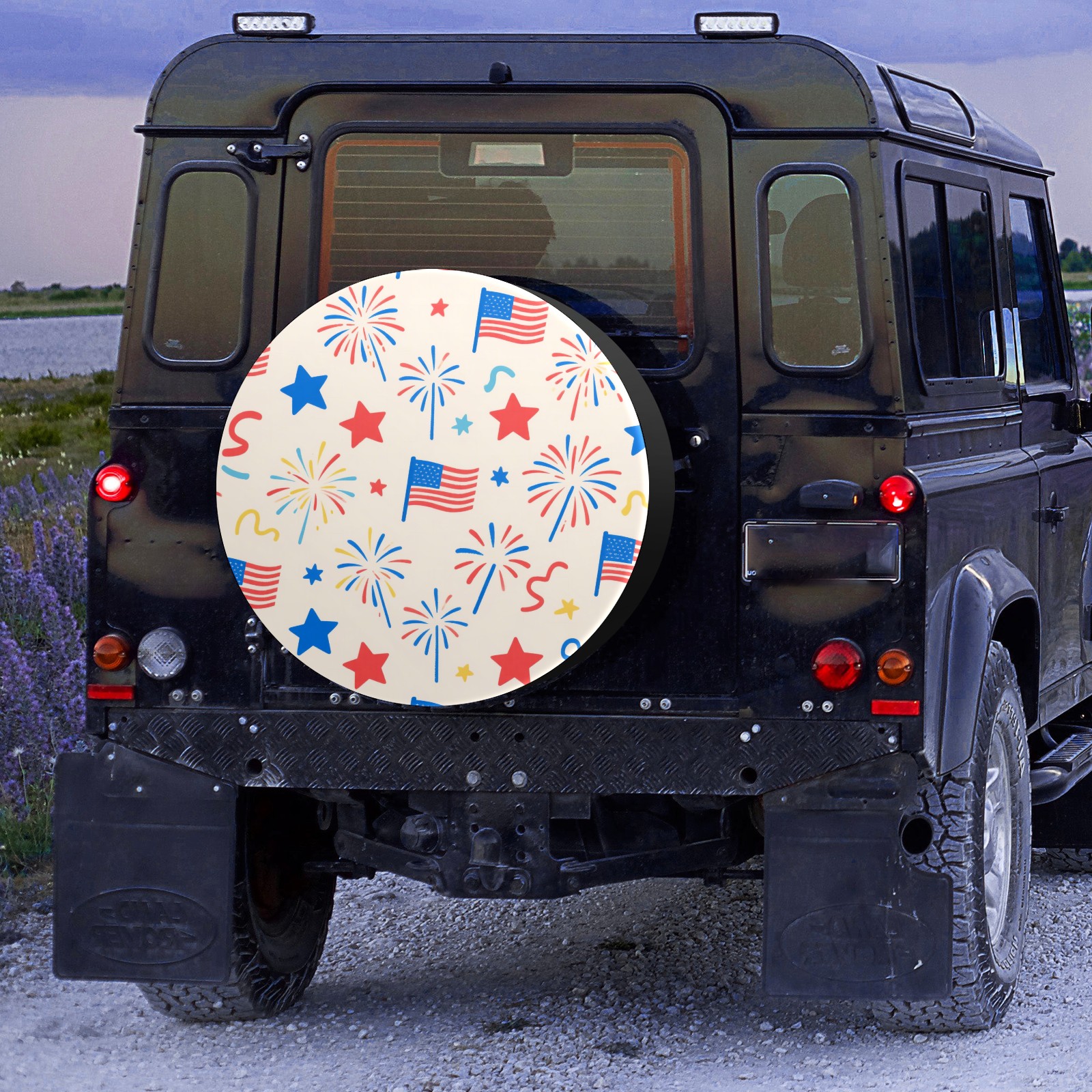 American Flag Firework Spare Tire Cover, Waterproof Wheel Protector Universal Fits for Truck SUV RV Trailer Camper (14 Inch)