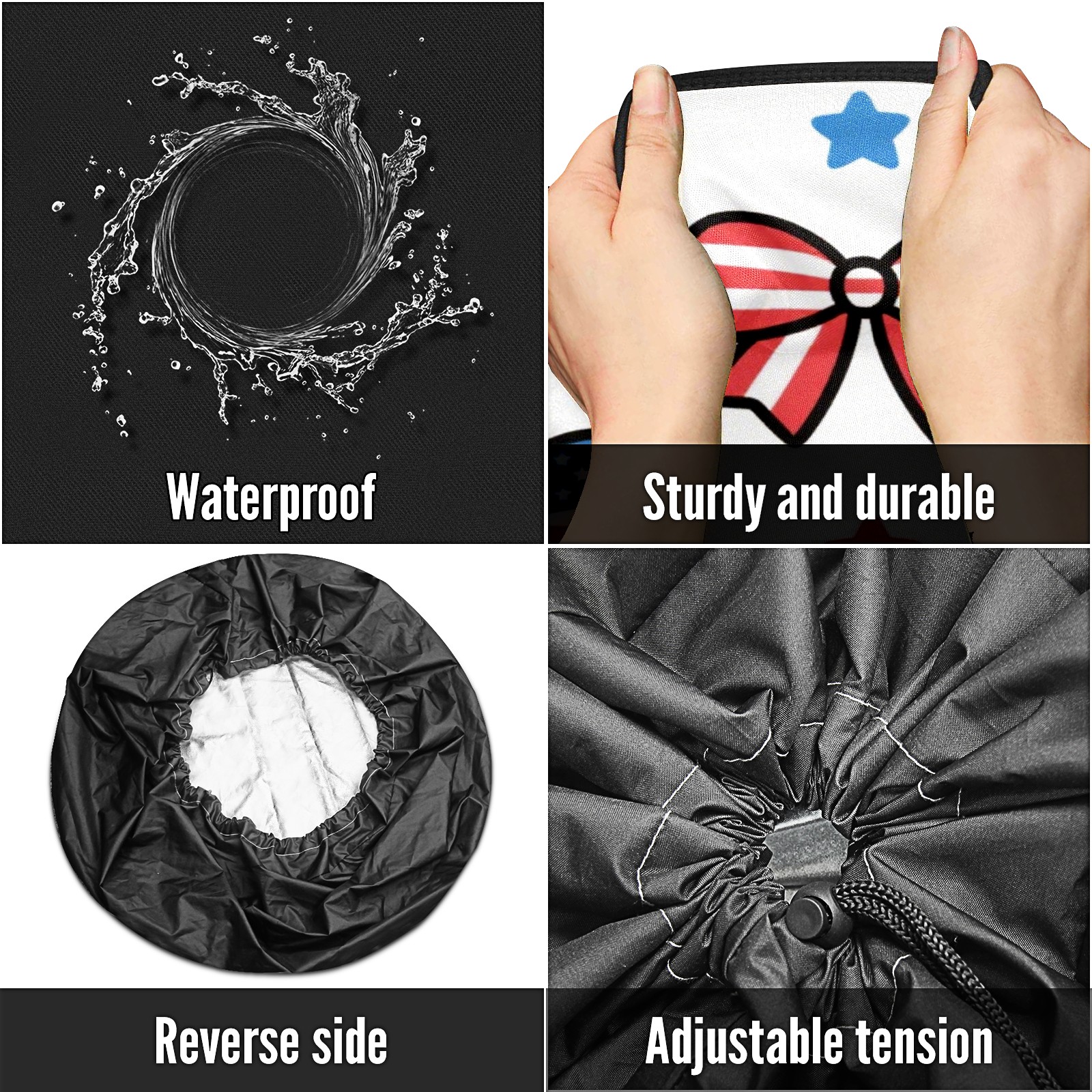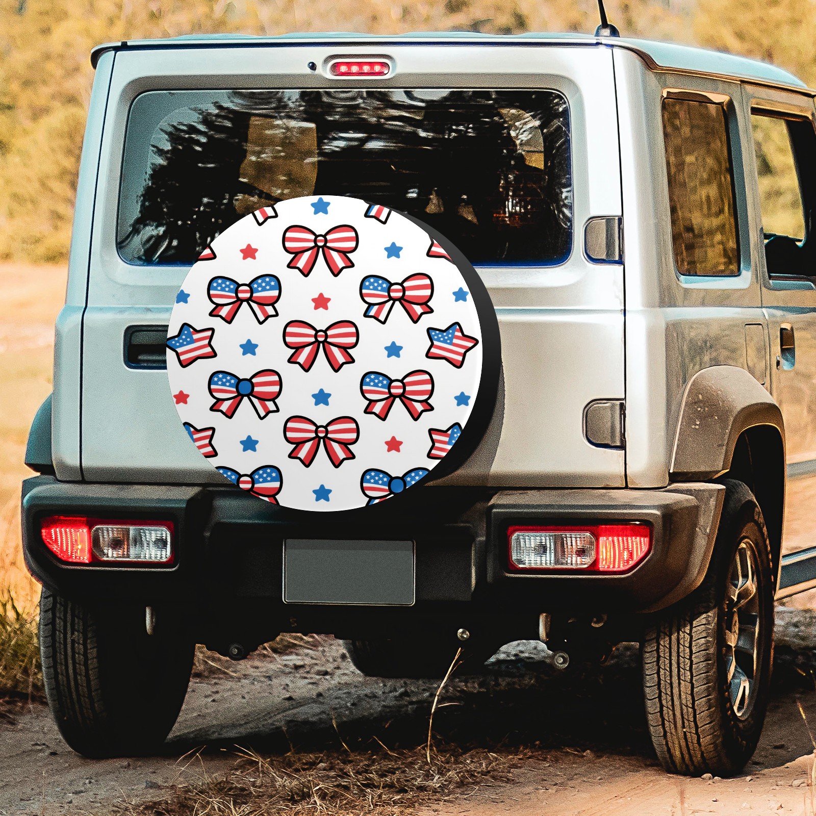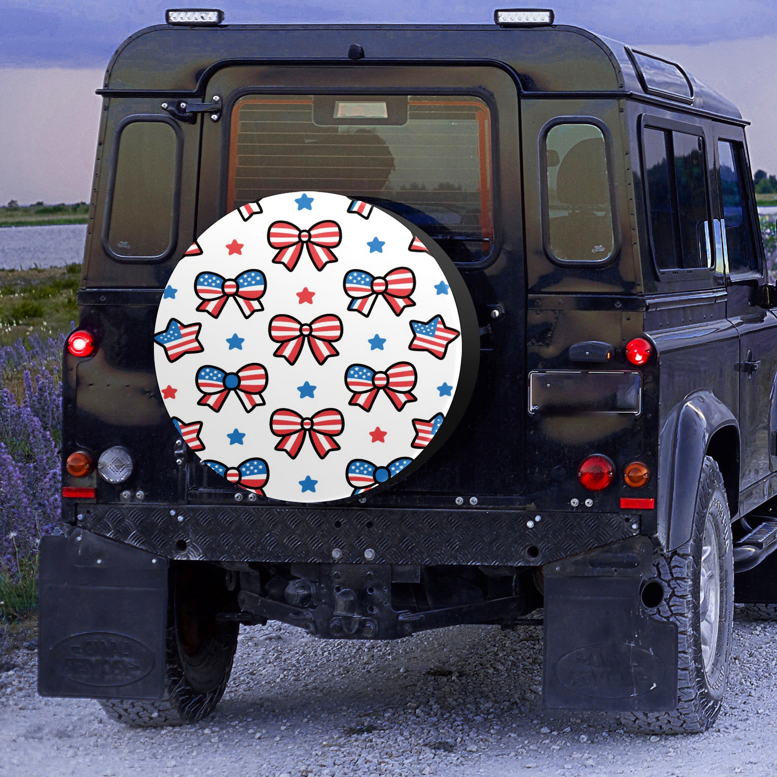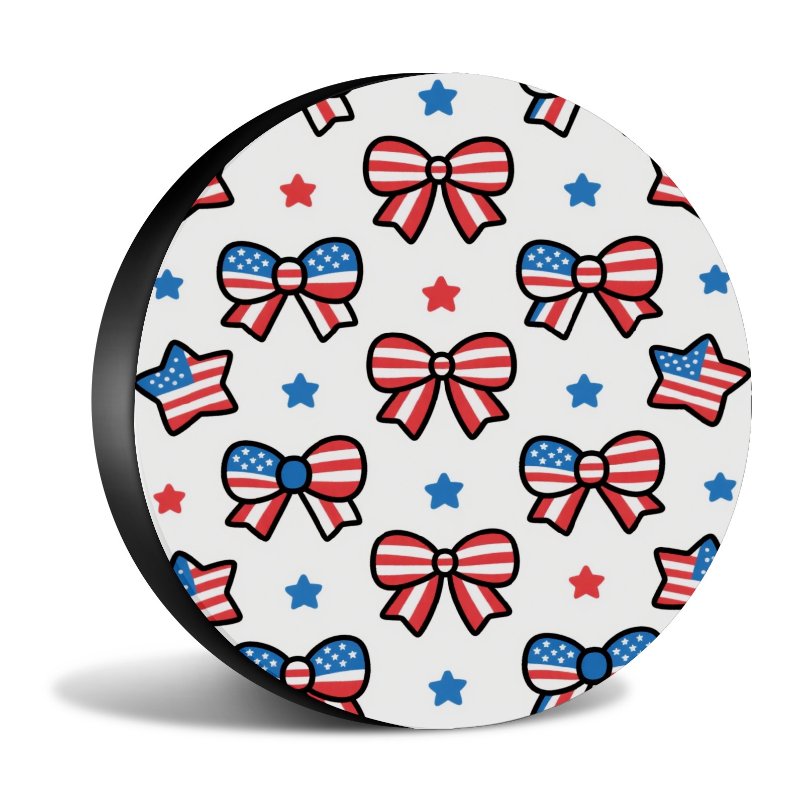American Flag Star Bow Spare Tire Cover, Waterproof Wheel Protector Universal Fits for Truck SUV RV Trailer Camper (14 Inch)