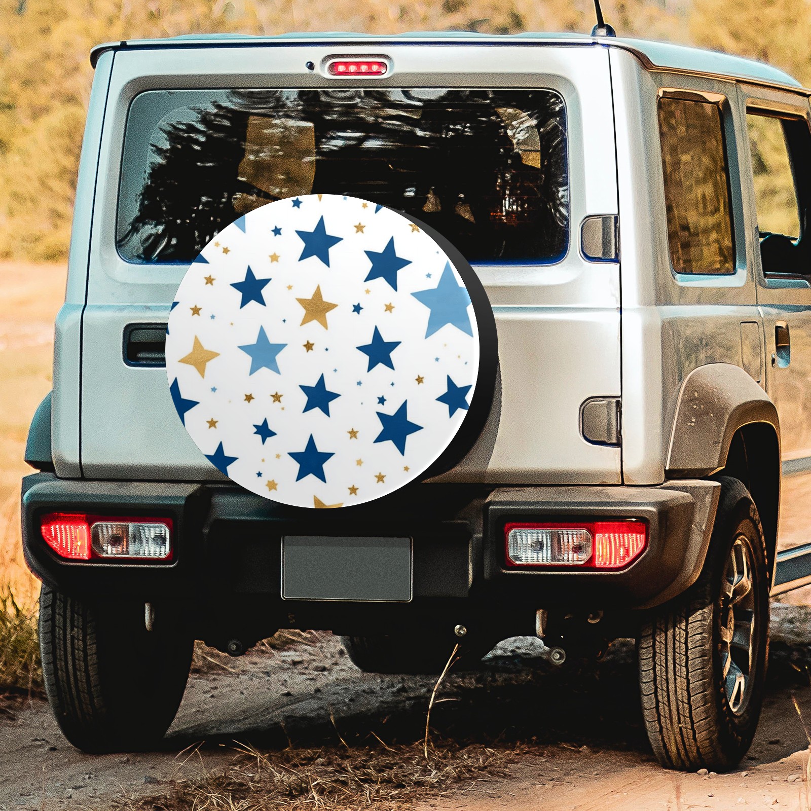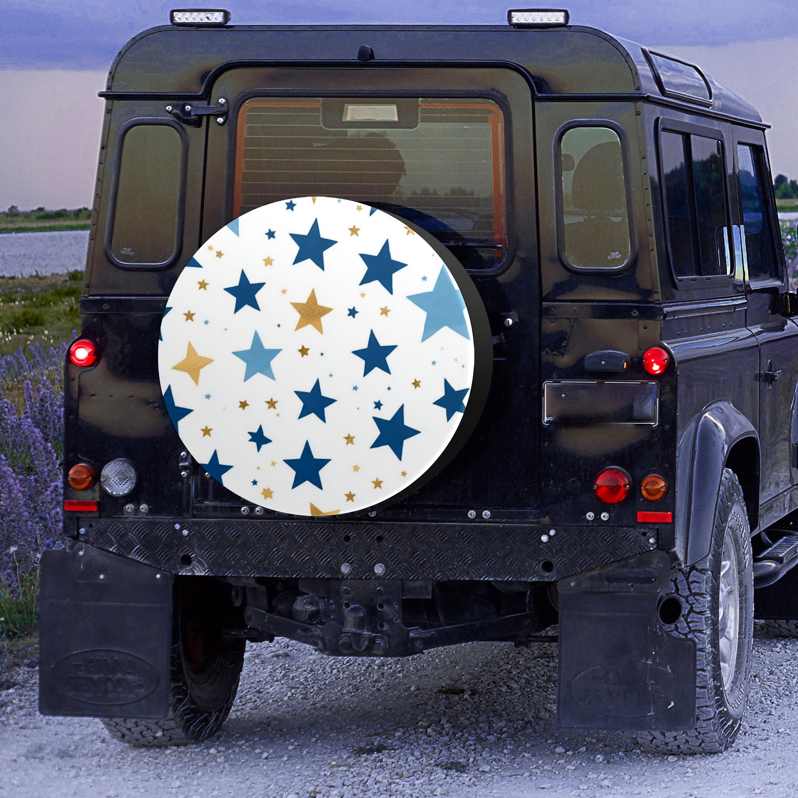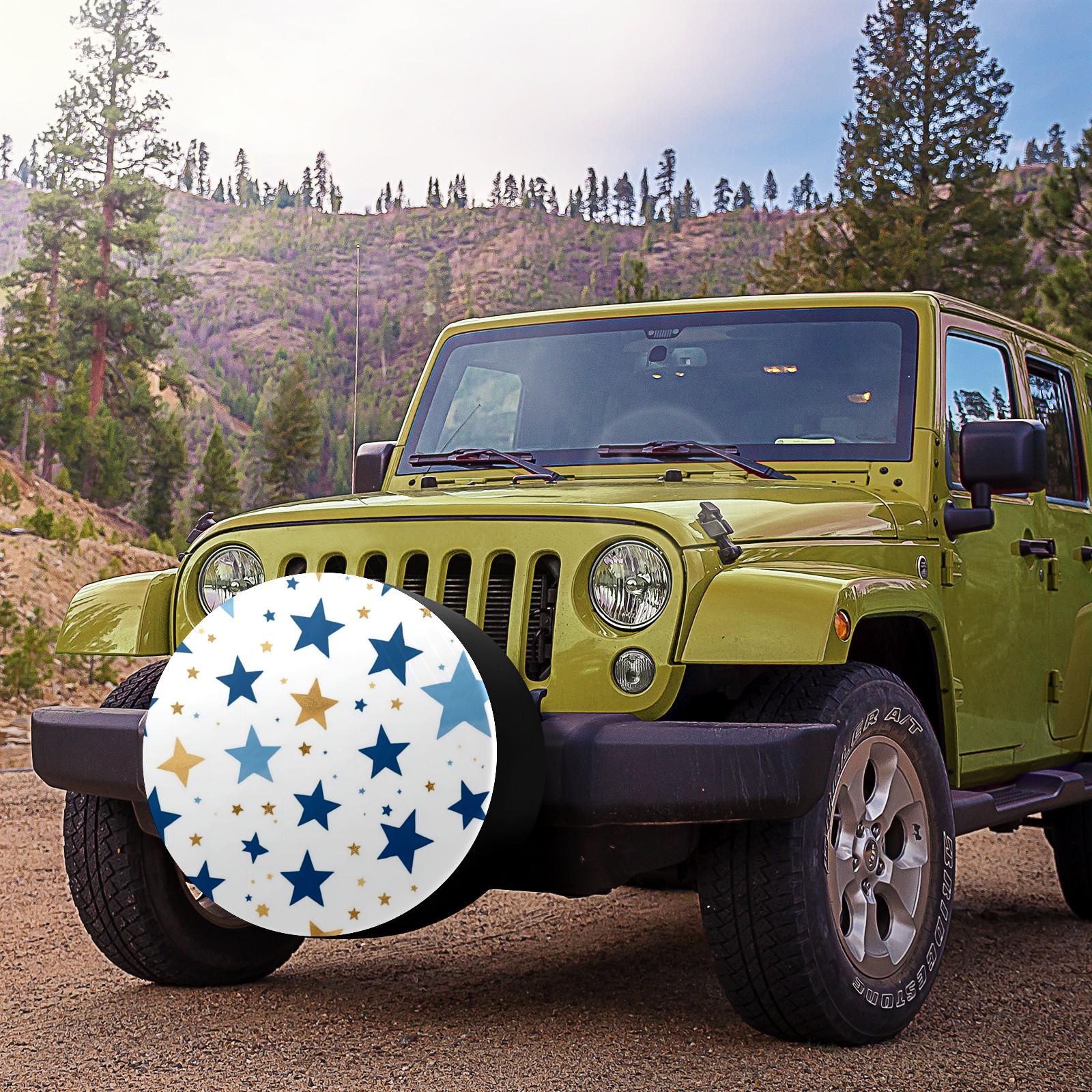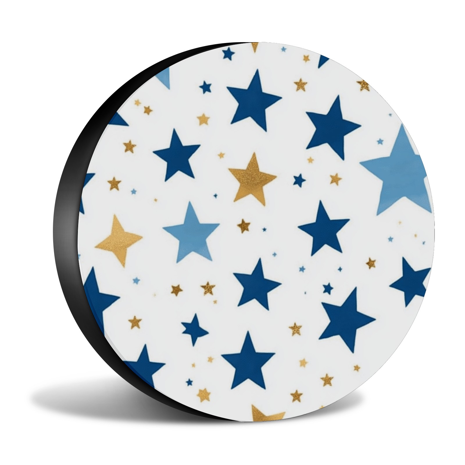 Blue And Gold Stars Spare Tire Cover, Waterproof Wheel Protector Universal Fits for Truck SUV RV Trailer Camper (14 Inch)