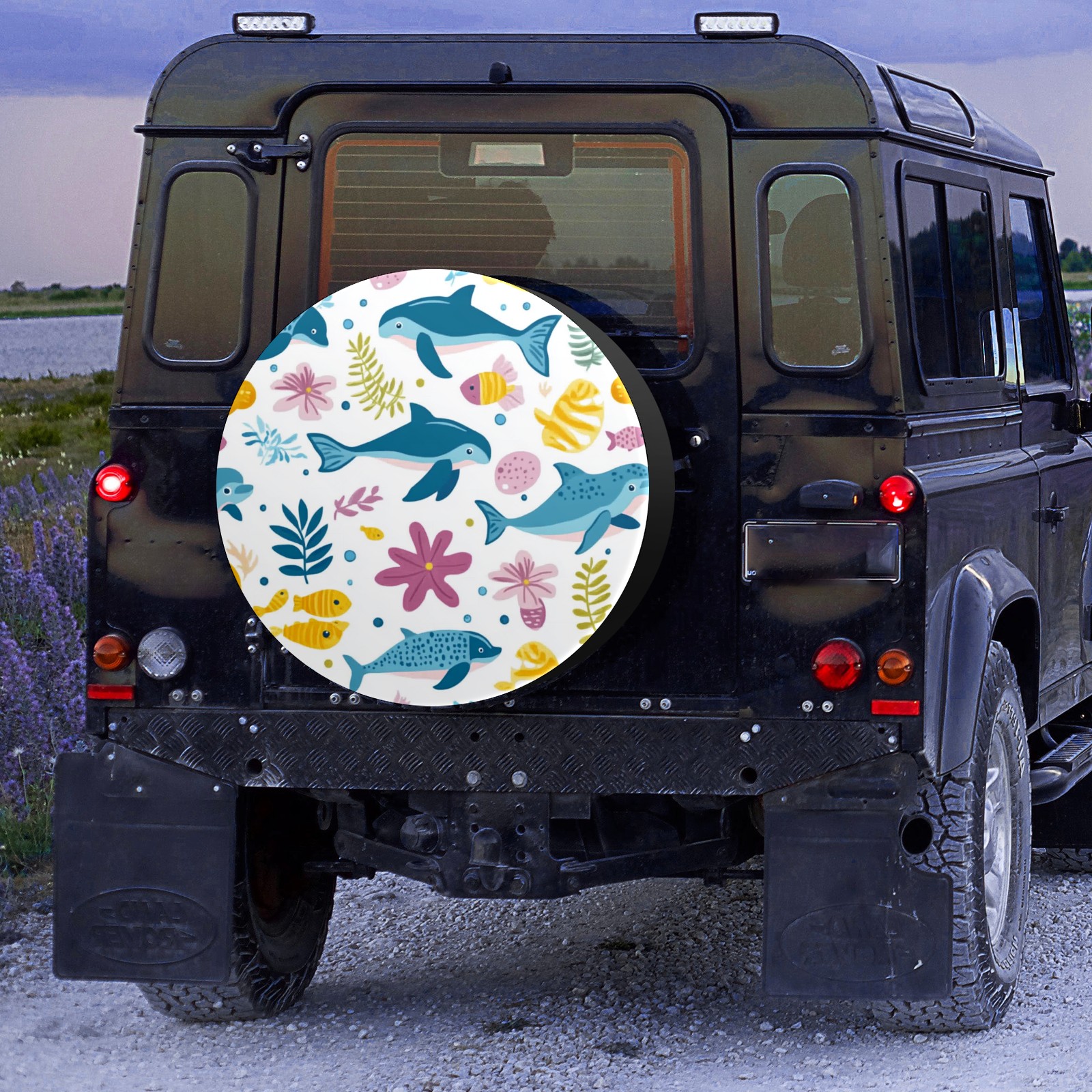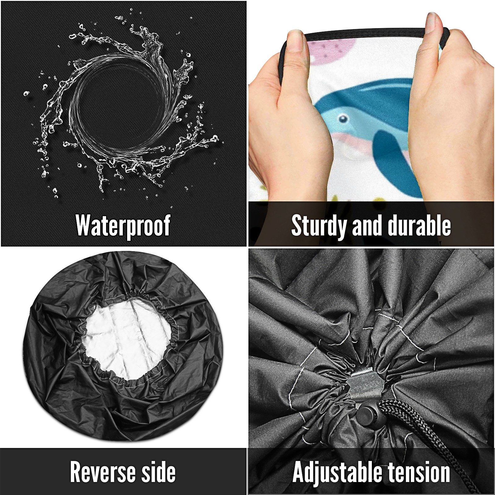 • <p>Keep your spare tire protected and your vehicle looking sharp with our universal Tire Cover. Designed with a sleek single-sided print and classic black sides, this rugged cover is made from high-quality polyester fabric that is fully waterproof. The adjustable nylon rope ensures a secure, custom fit for any tire, helping to maintain a clean and professional appearance for your vehicle.</p>