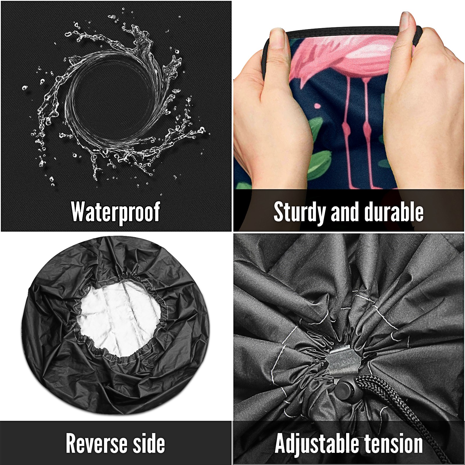 • <p>Keep your spare tire protected and your vehicle looking sharp with our universal Tire Cover. Designed with a sleek single-sided print and classic black sides, this rugged cover is made from high-quality polyester fabric that is fully waterproof. The adjustable nylon rope ensures a secure, custom fit for any tire, helping to maintain a clean and professional appearance for your vehicle.</p>