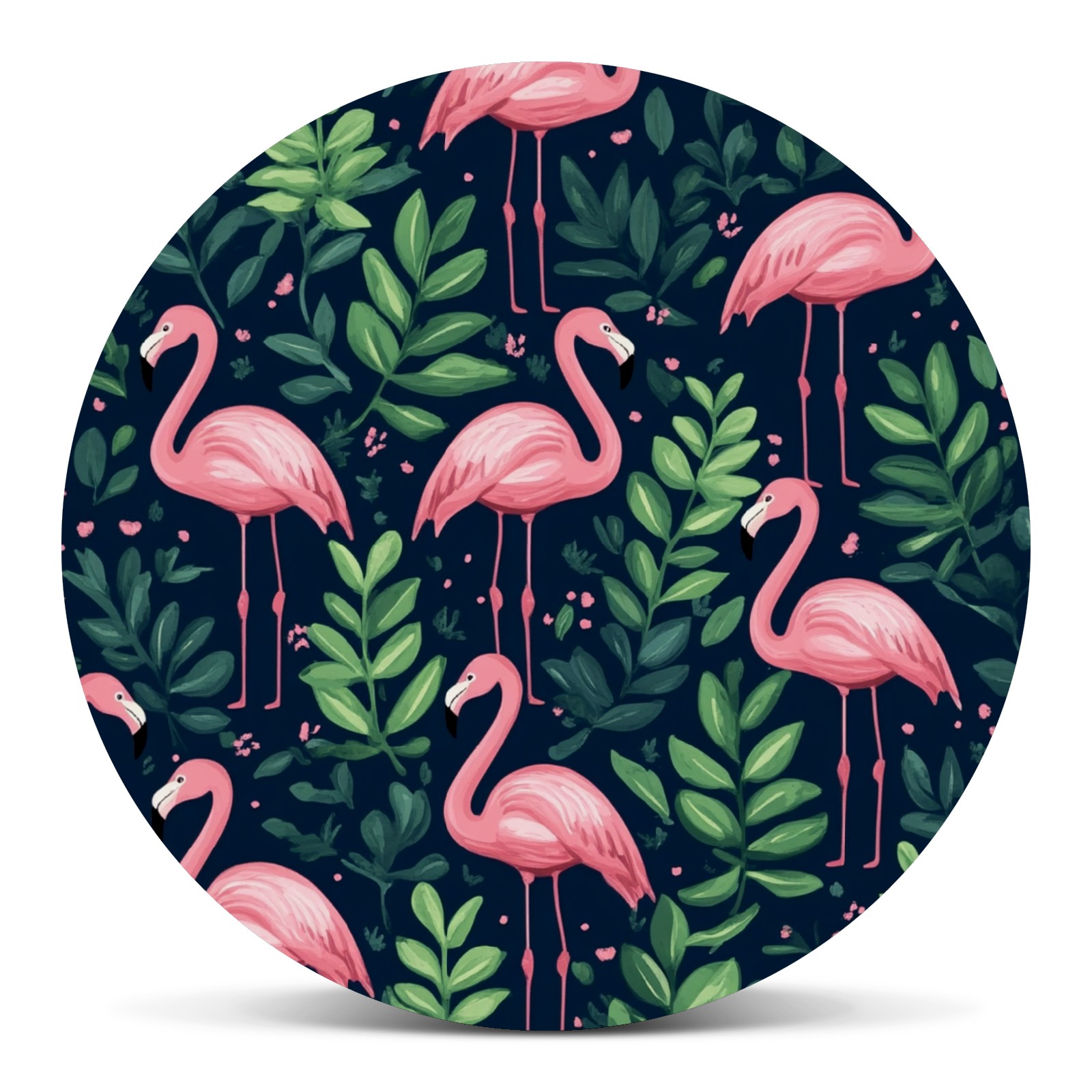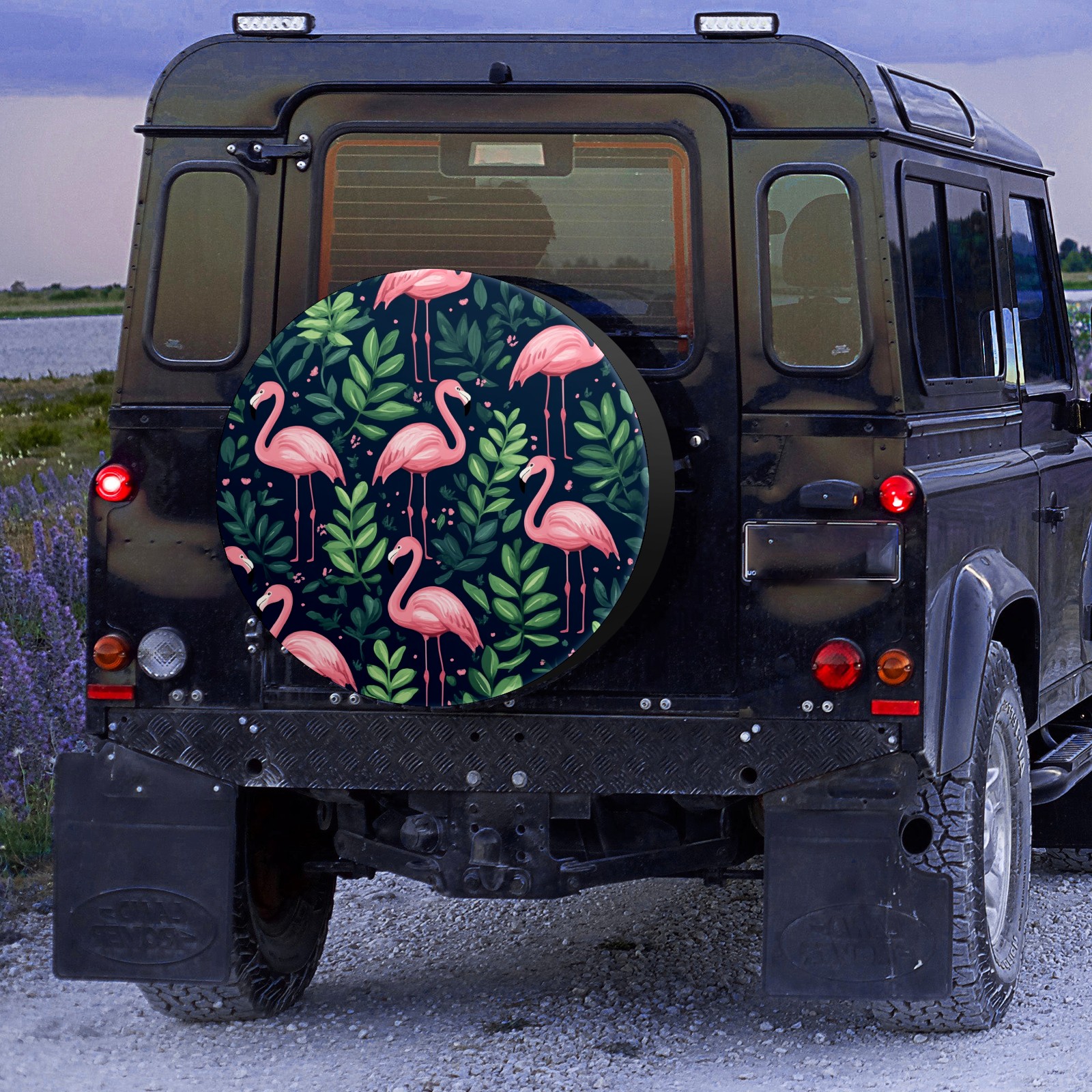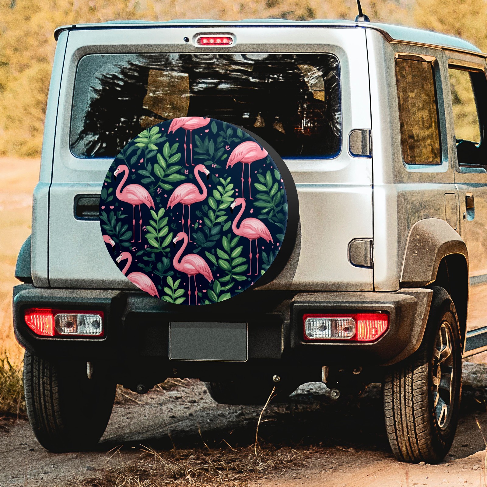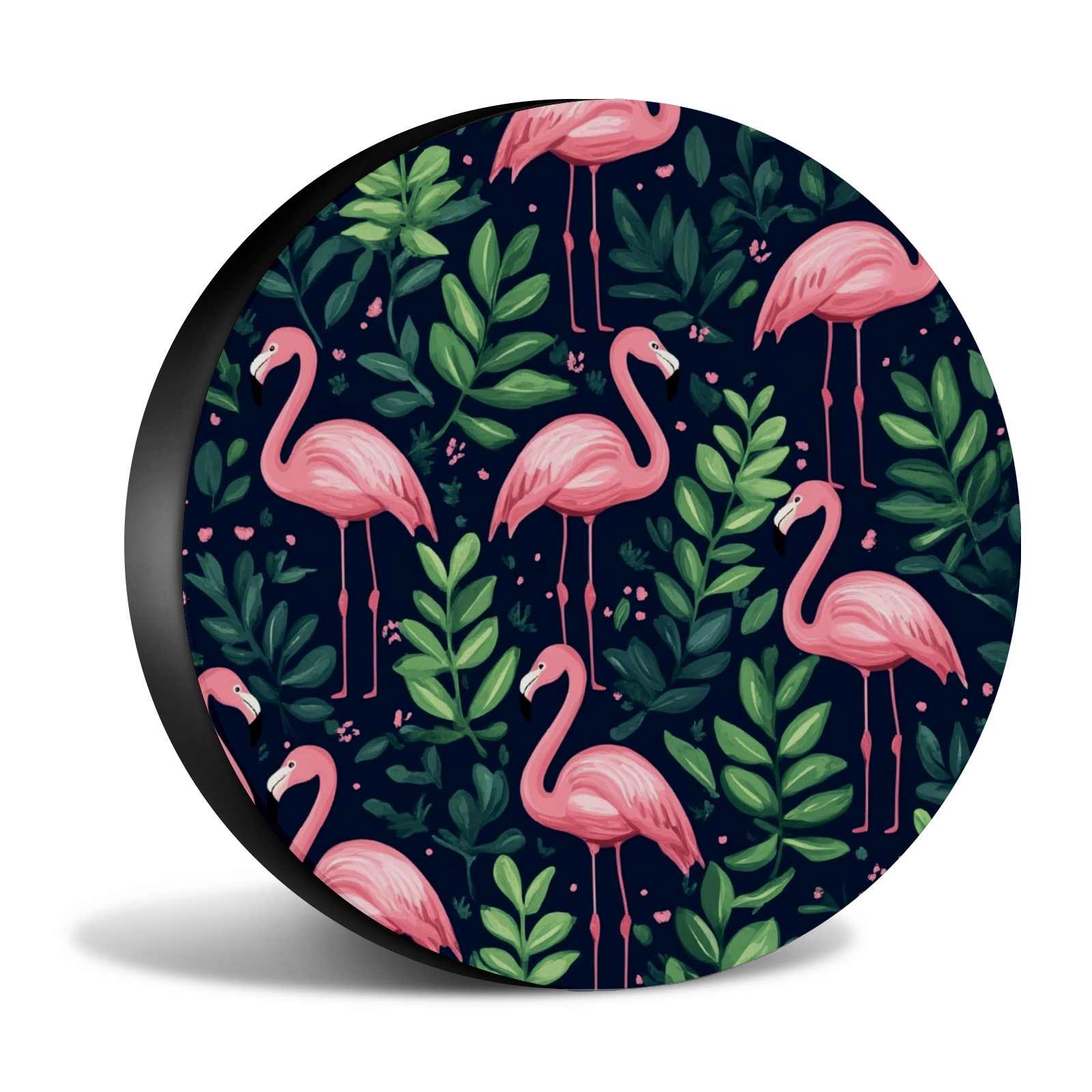 Pink Flamingos And Green Leaves Spare Tire Cover, Waterproof Wheel Protector Universal Fits for Truck SUV RV Trailer Camper (14 Inch)