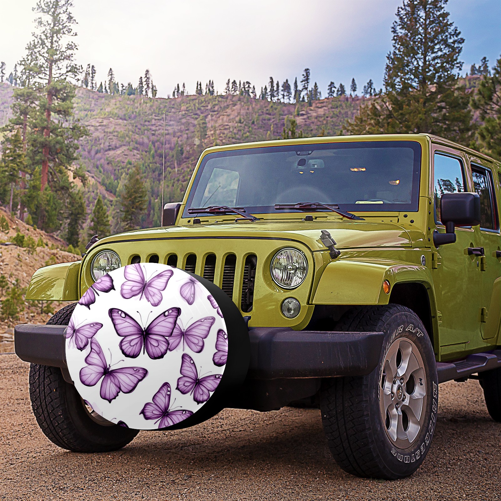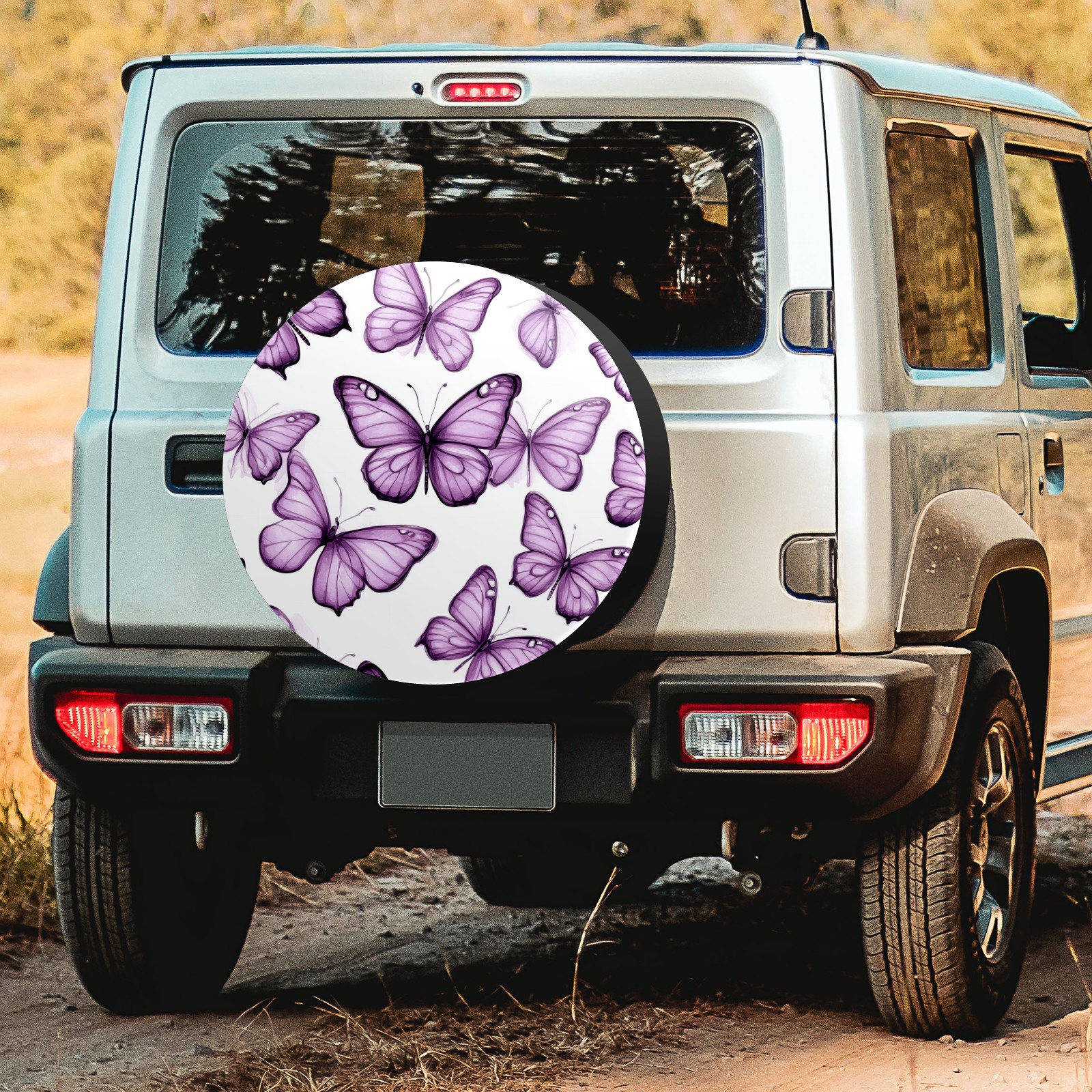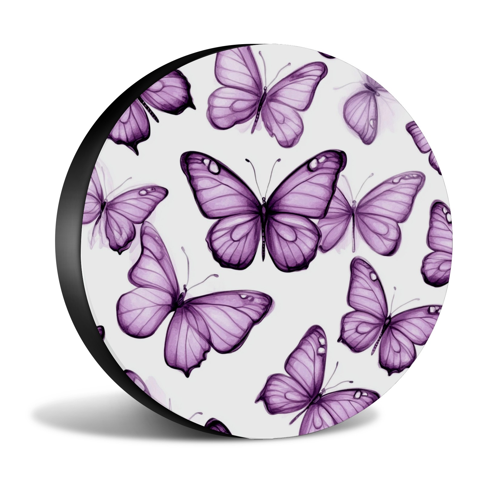 Purple Butterflies Spare Tire Cover, Waterproof Wheel Protector Universal Fits for Truck SUV RV Trailer Camper (14 Inch)