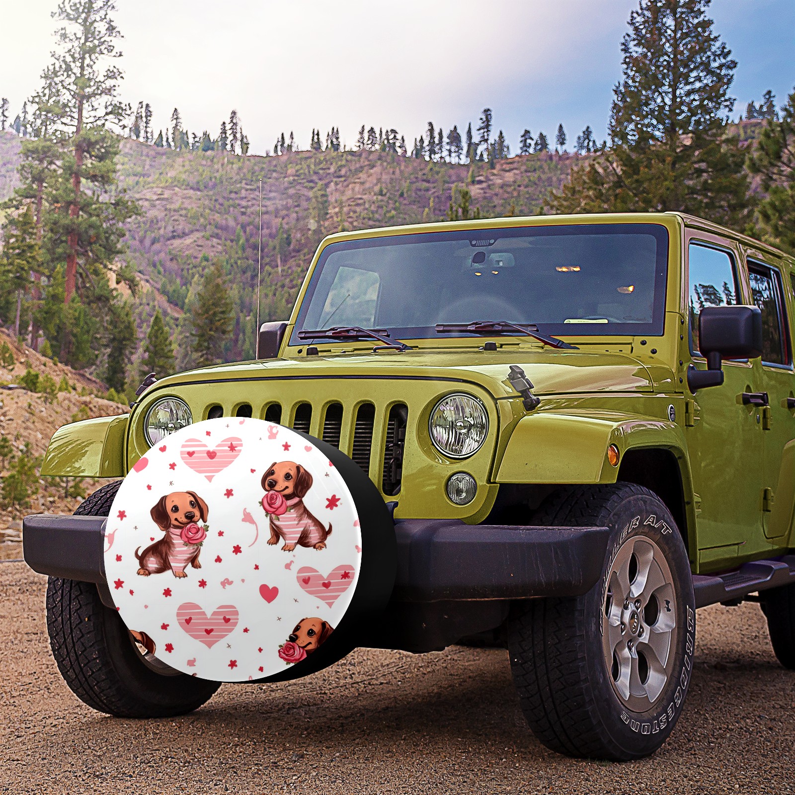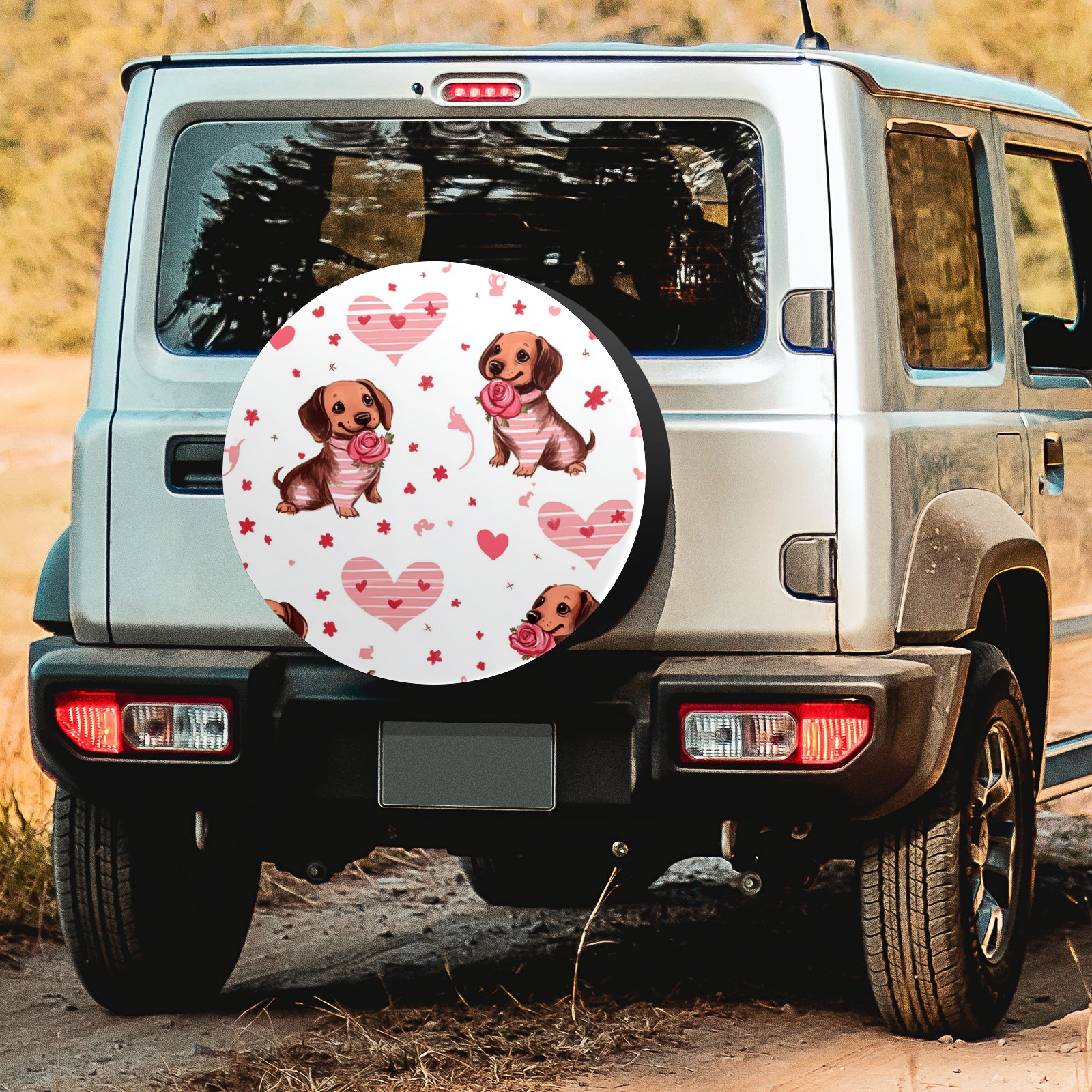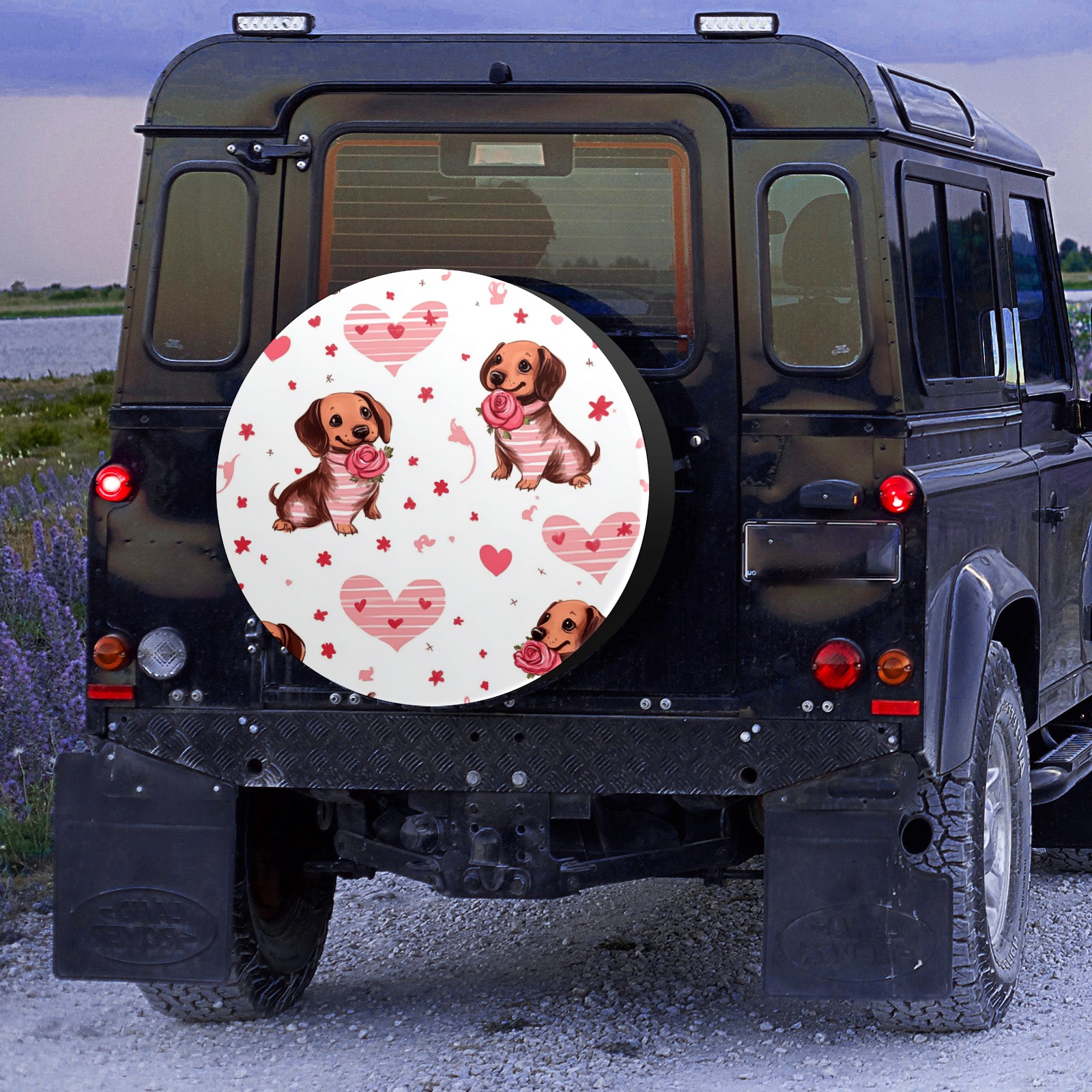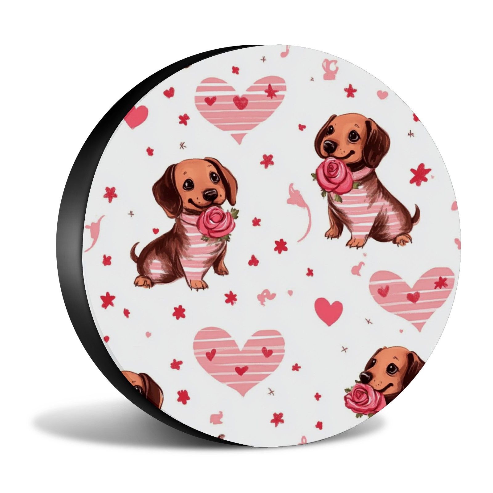 Brown Dachshund Puppies Spare Tire Cover, Waterproof Wheel Protector Universal Fits for Truck SUV RV Trailer Camper (14 Inch)