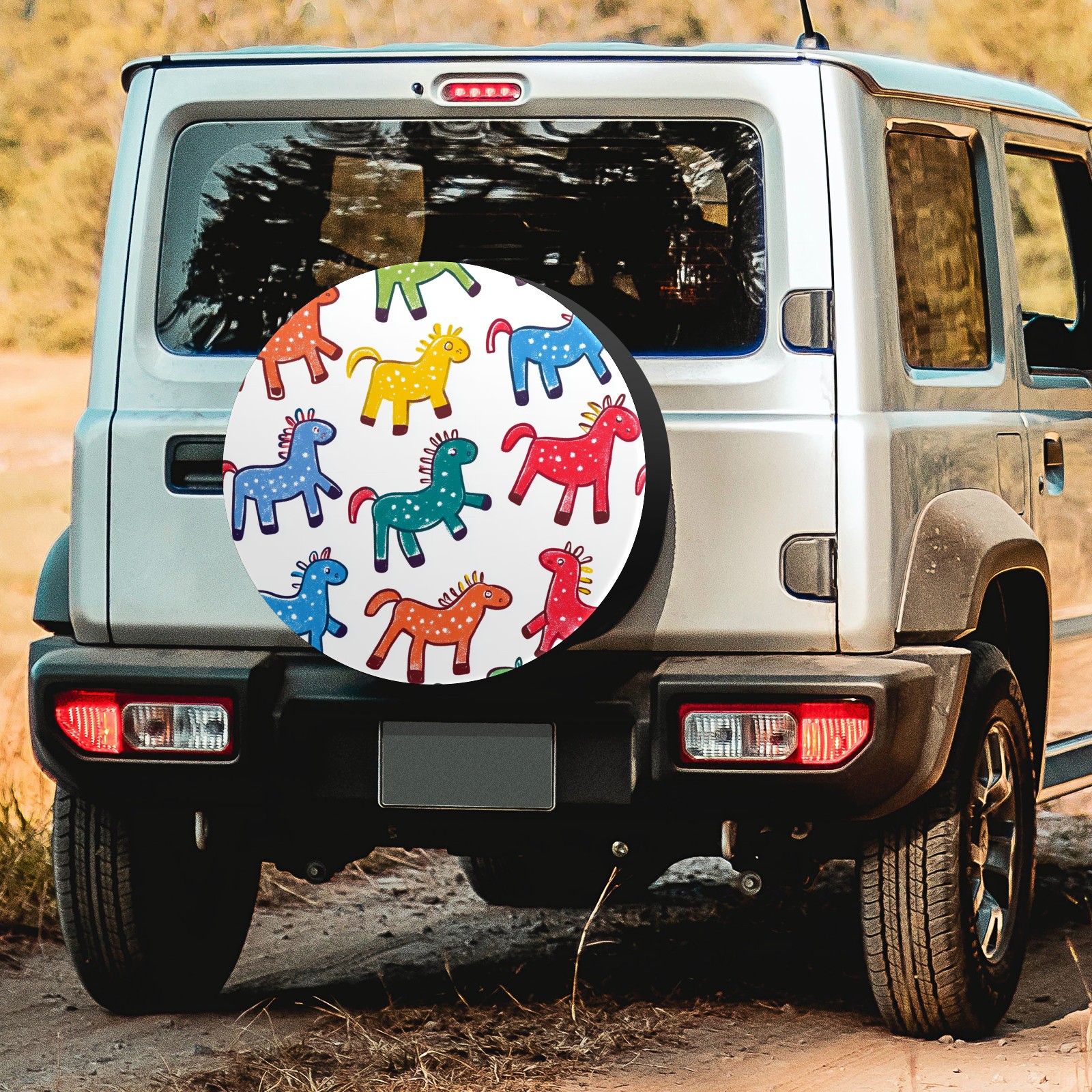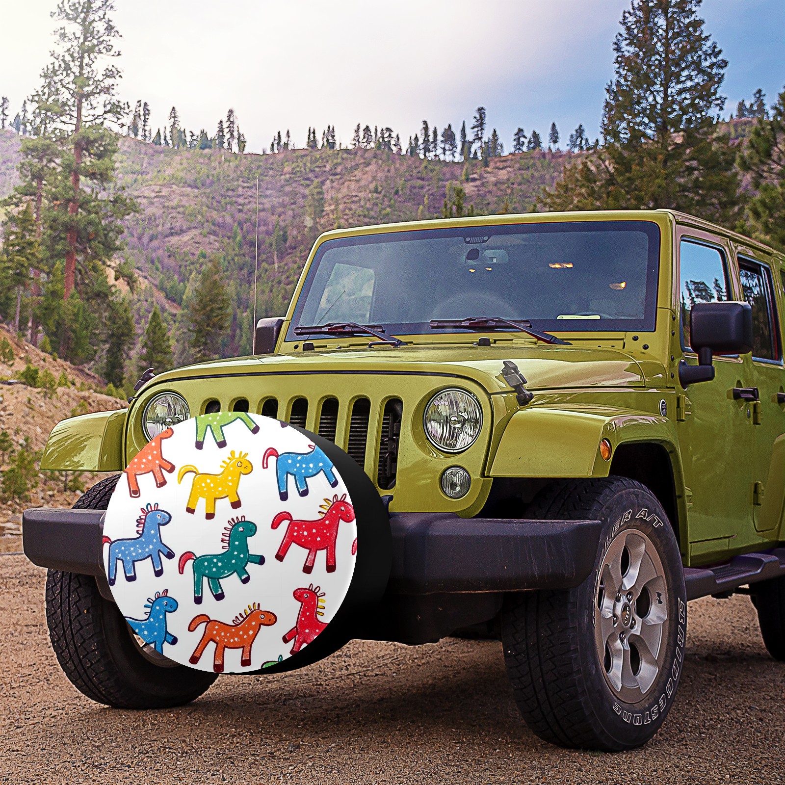 Colorful Stick Horses Spare Tire Cover, Waterproof Wheel Protector Universal Fits for Truck SUV RV Trailer Camper (14 Inch)