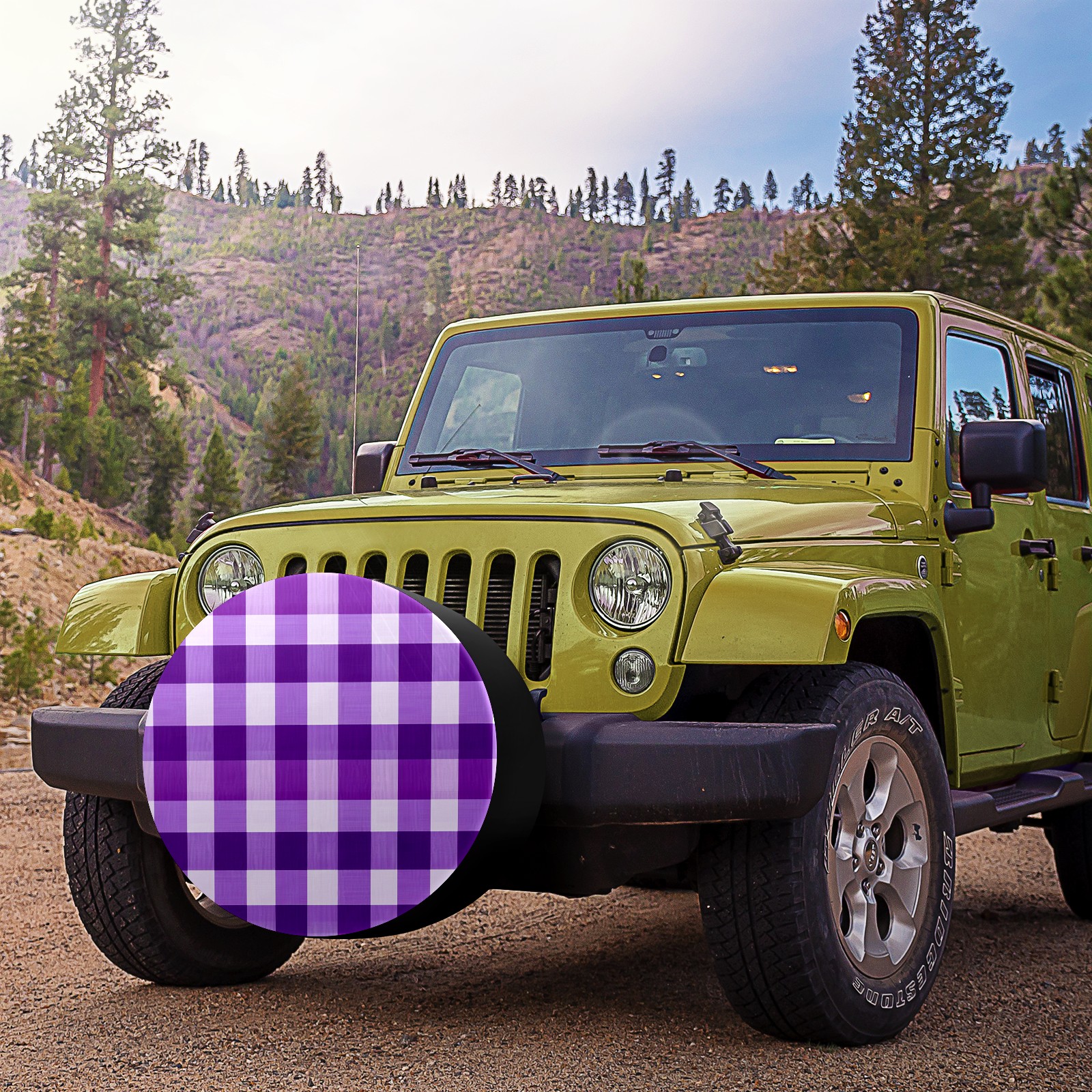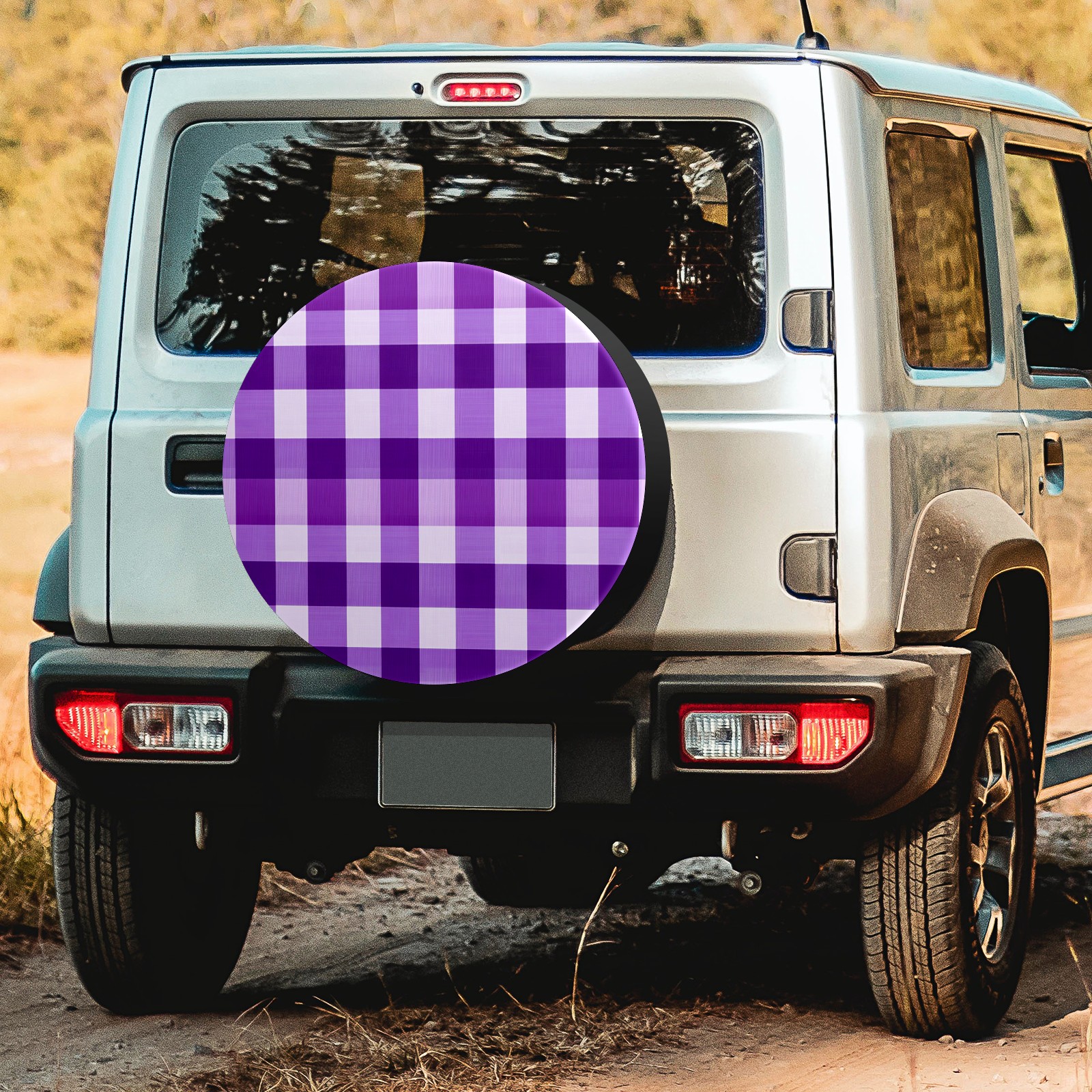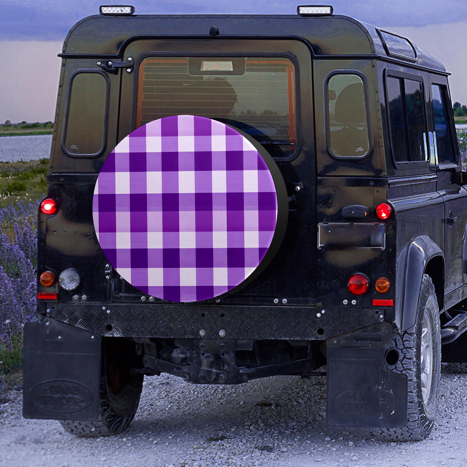 Purple Gingham Spare Tire Cover, Waterproof Wheel Protector Universal Fits for Truck SUV RV Trailer Camper (14 Inch)
