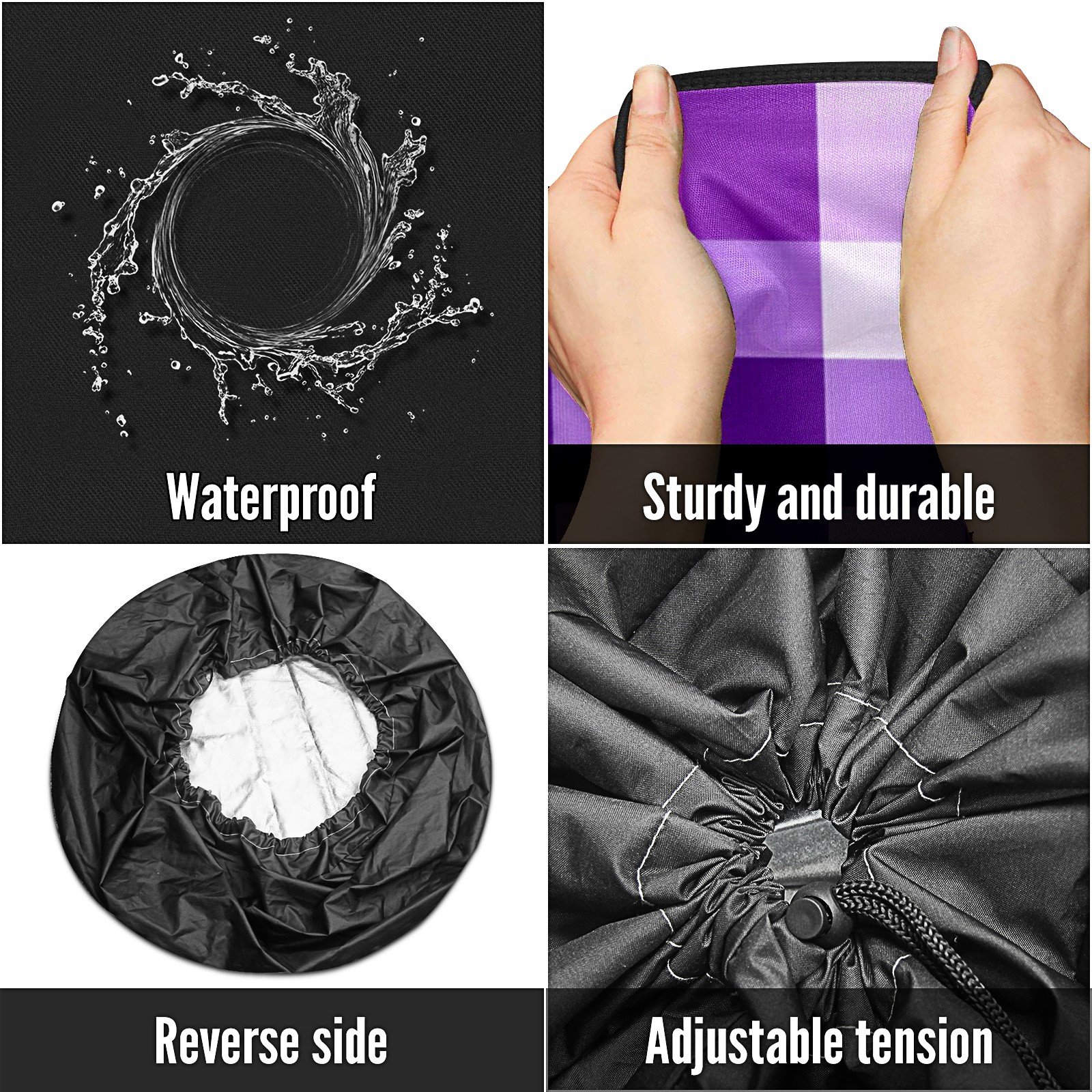 • <p>Keep your spare tire protected and your vehicle looking sharp with our universal Tire Cover. Designed with a sleek single-sided print and classic black sides, this rugged cover is made from high-quality polyester fabric that is fully waterproof. The adjustable nylon rope ensures a secure, custom fit for any tire, helping to maintain a clean and professional appearance for your vehicle.</p>