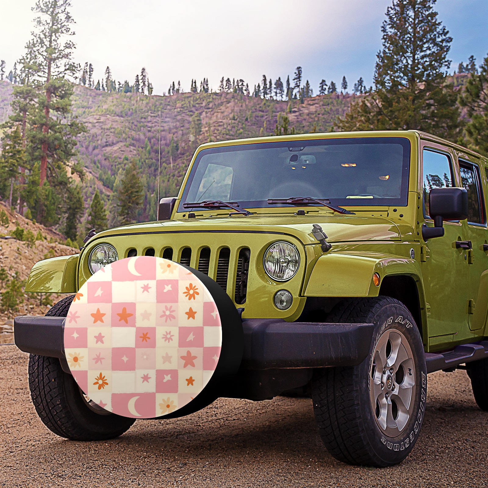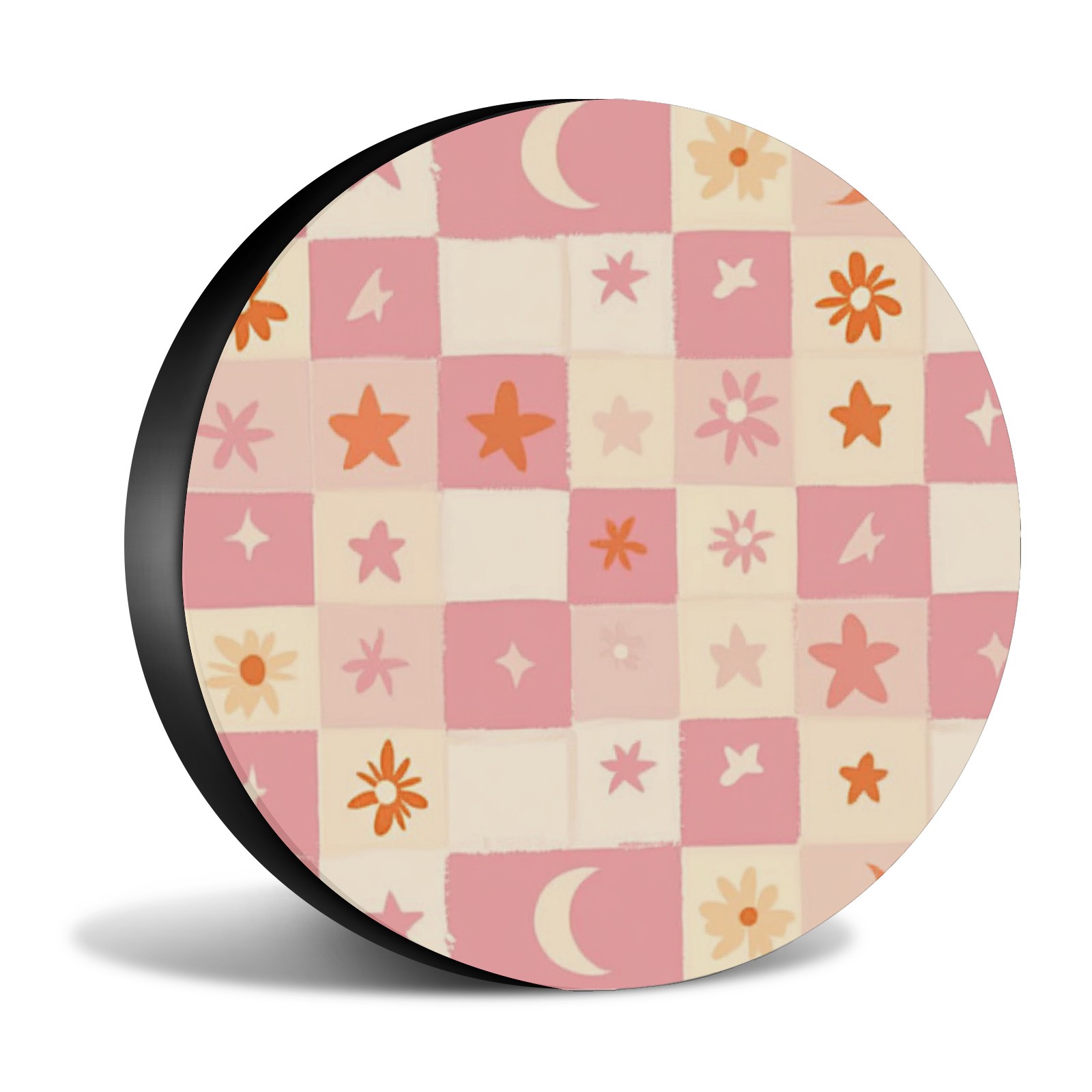Pink And Peach Pastel Checkered Spare Tire Cover, Waterproof Wheel Protector Universal Fits for Truck SUV RV Trailer Camper (14 Inch)