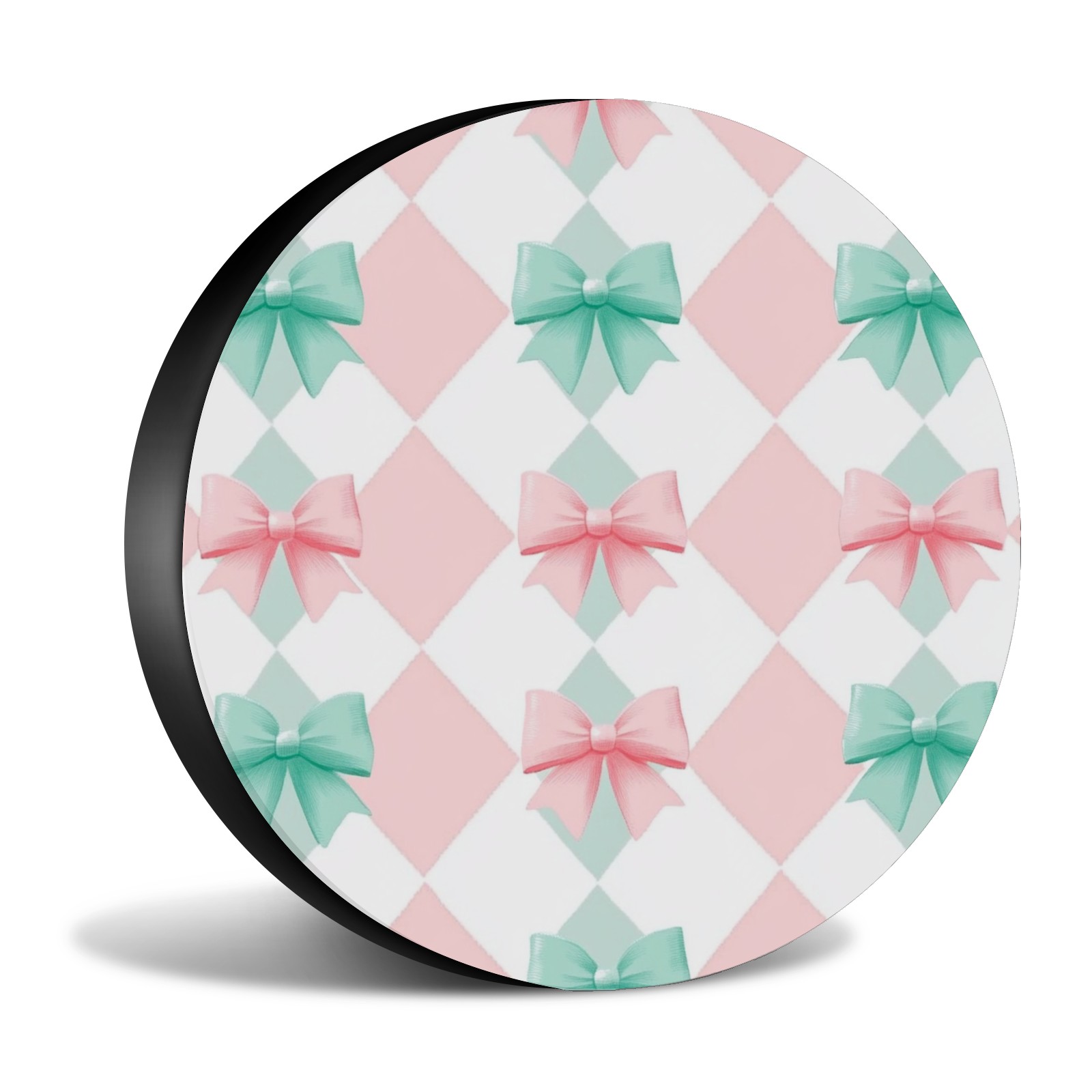 Pink And Mint Gingham Spare Tire Cover, Waterproof Wheel Protector Universal Fits for Truck SUV RV Trailer Camper (14 Inch)