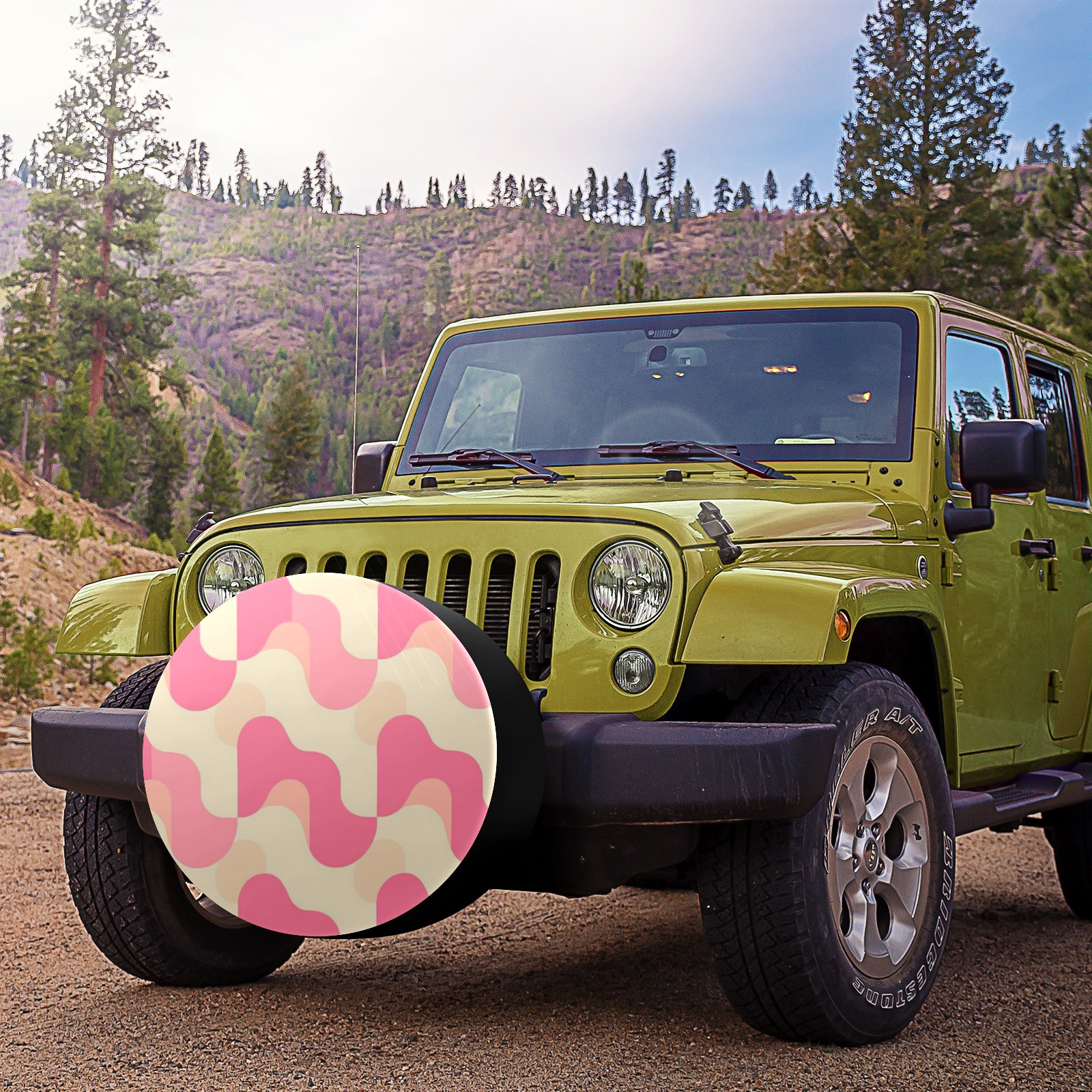 Pink And Cream Retro Groovy Spare Tire Cover, Waterproof Wheel Protector Universal Fits for Truck SUV RV Trailer Camper (14 Inch)
