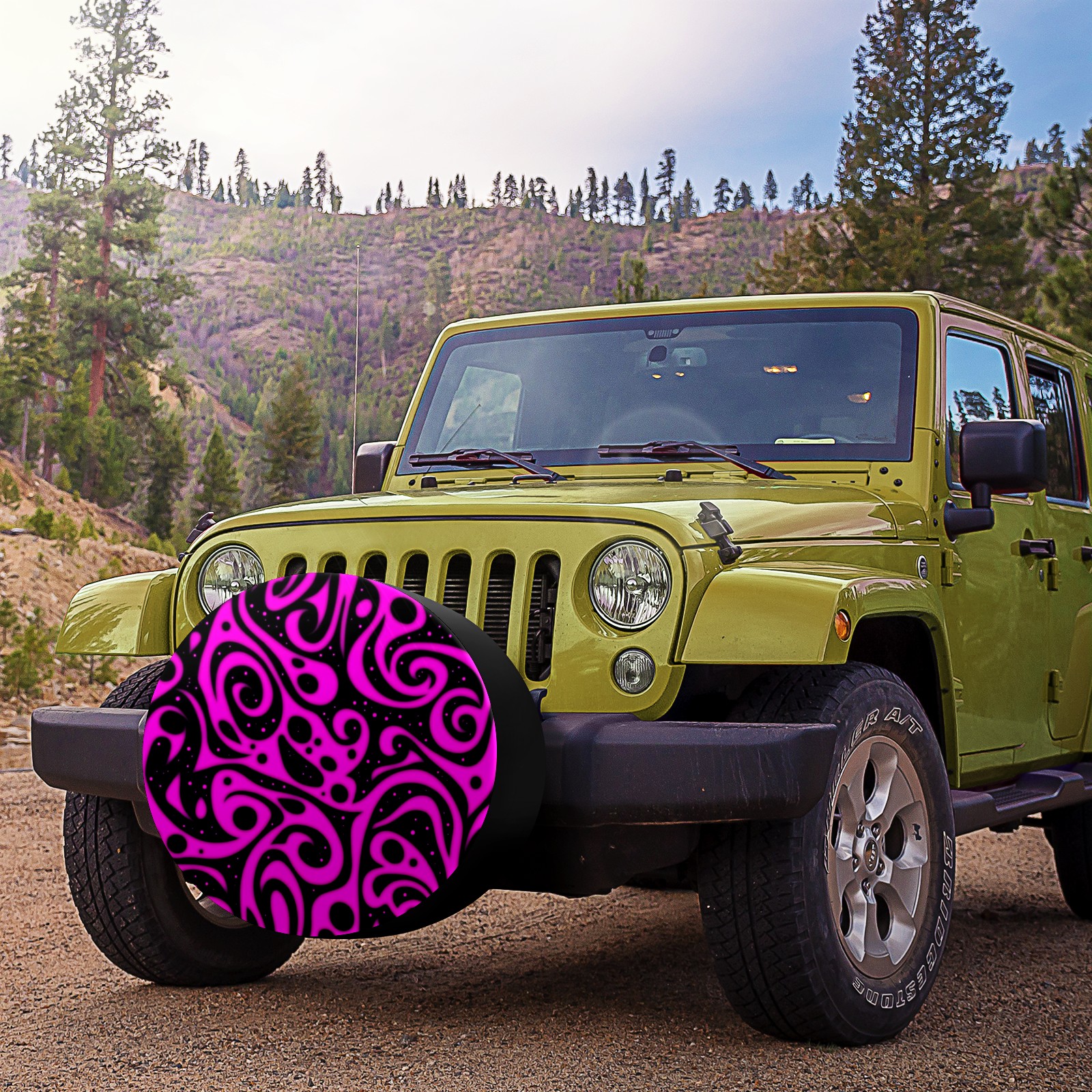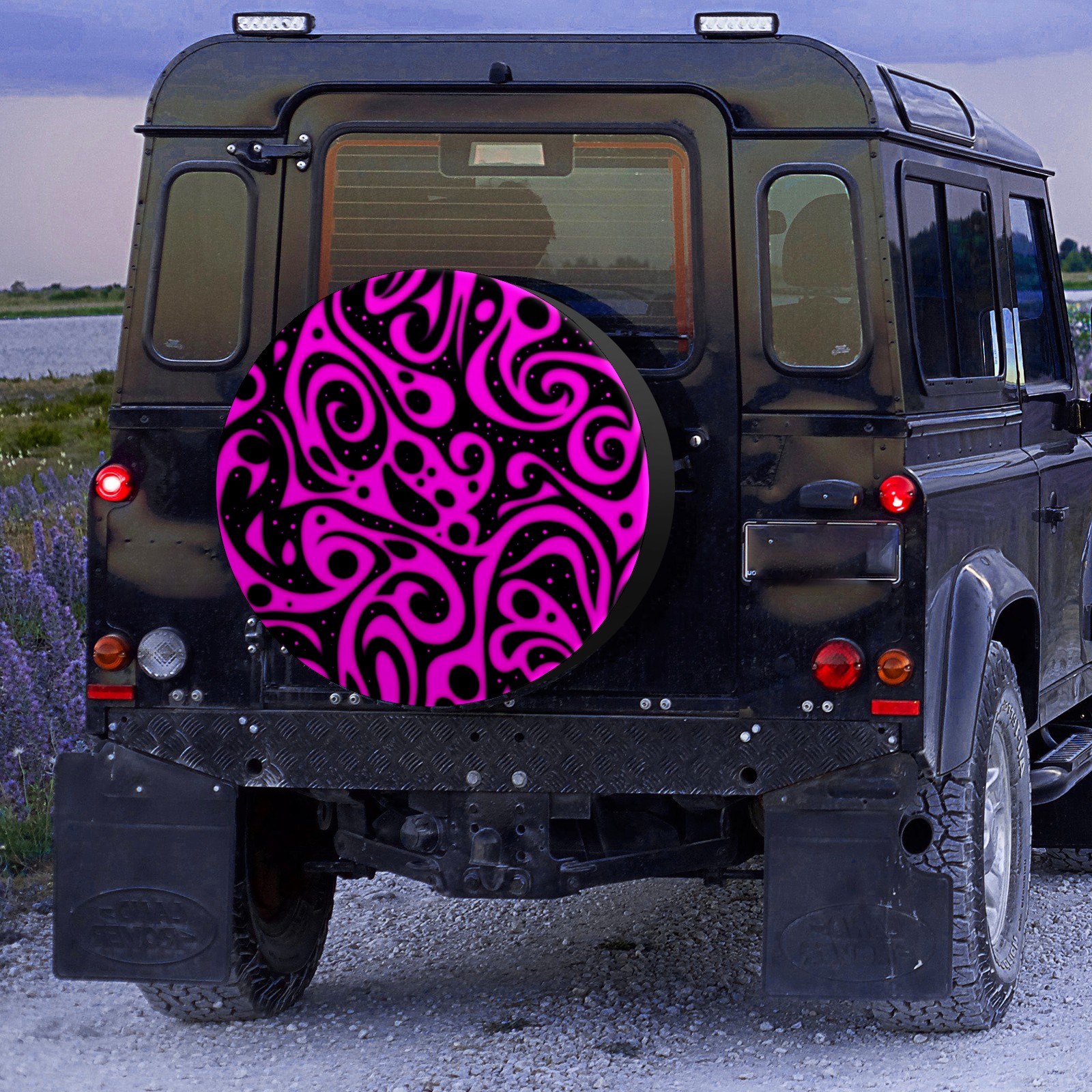 • <p>Keep your spare tire protected and your vehicle looking sharp with our universal Tire Cover. Designed with a sleek single-sided print and classic black sides, this rugged cover is made from high-quality polyester fabric that is fully waterproof. The adjustable nylon rope ensures a secure, custom fit for any tire, helping to maintain a clean and professional appearance for your vehicle.</p>