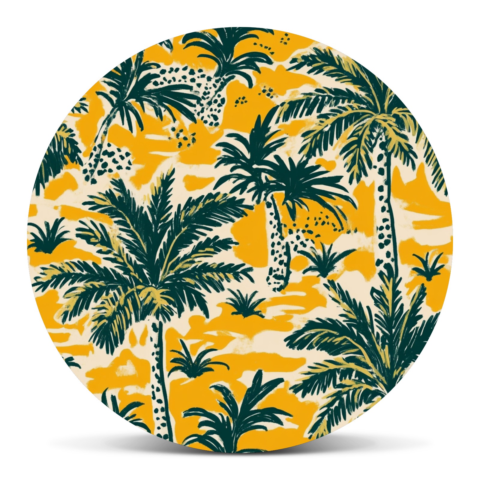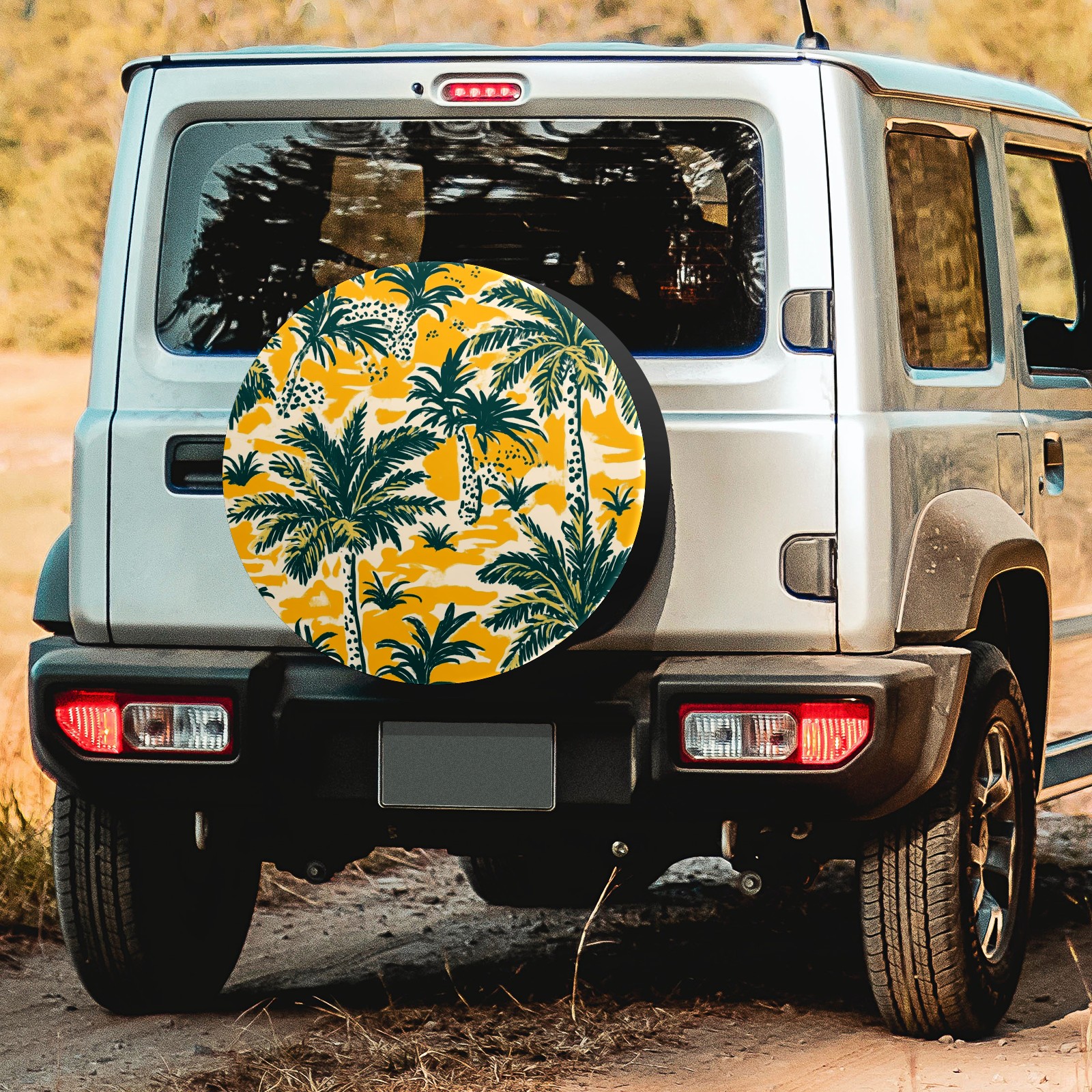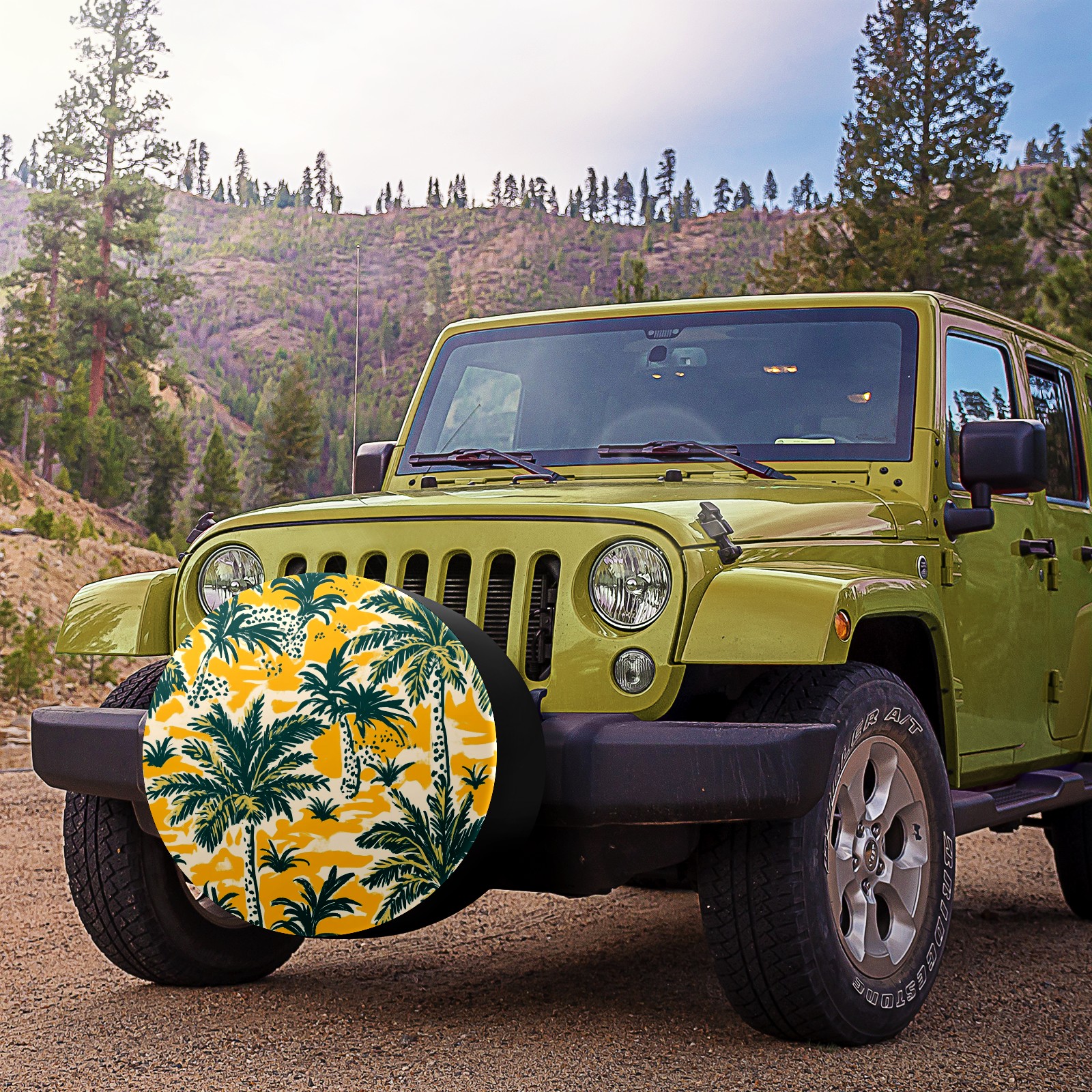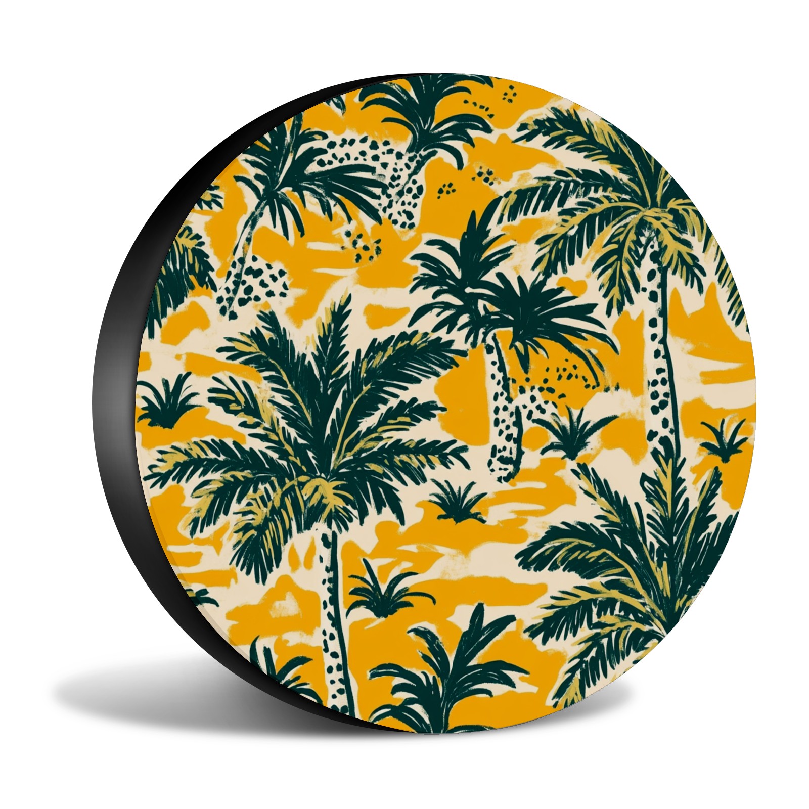 Yellow And Green With Palm Trees Spare Tire Cover, Waterproof Wheel Protector Universal Fits for Truck SUV RV Trailer Camper (14 Inch)