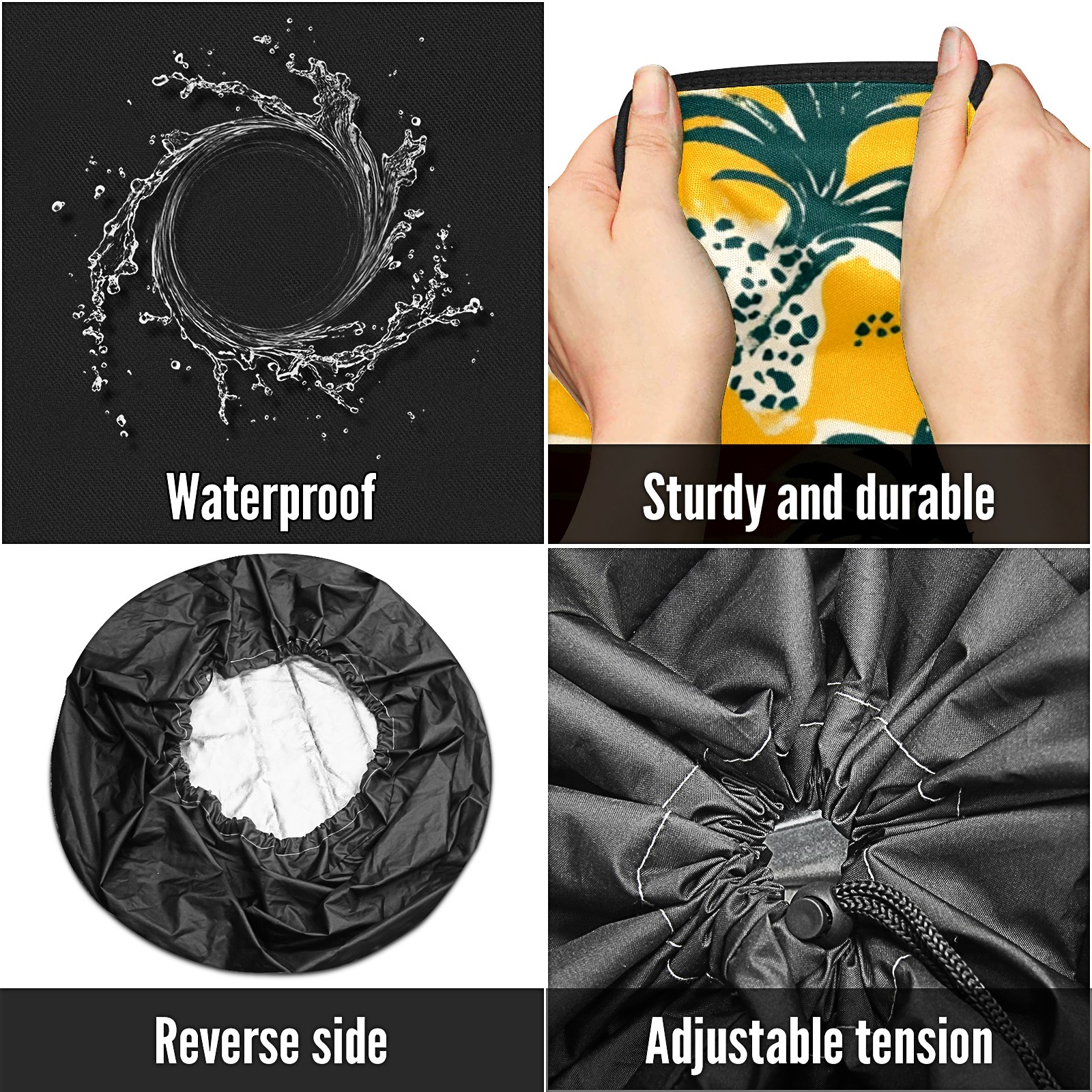• <p>Keep your spare tire protected and your vehicle looking sharp with our universal Tire Cover. Designed with a sleek single-sided print and classic black sides, this rugged cover is made from high-quality polyester fabric that is fully waterproof. The adjustable nylon rope ensures a secure, custom fit for any tire, helping to maintain a clean and professional appearance for your vehicle.</p>