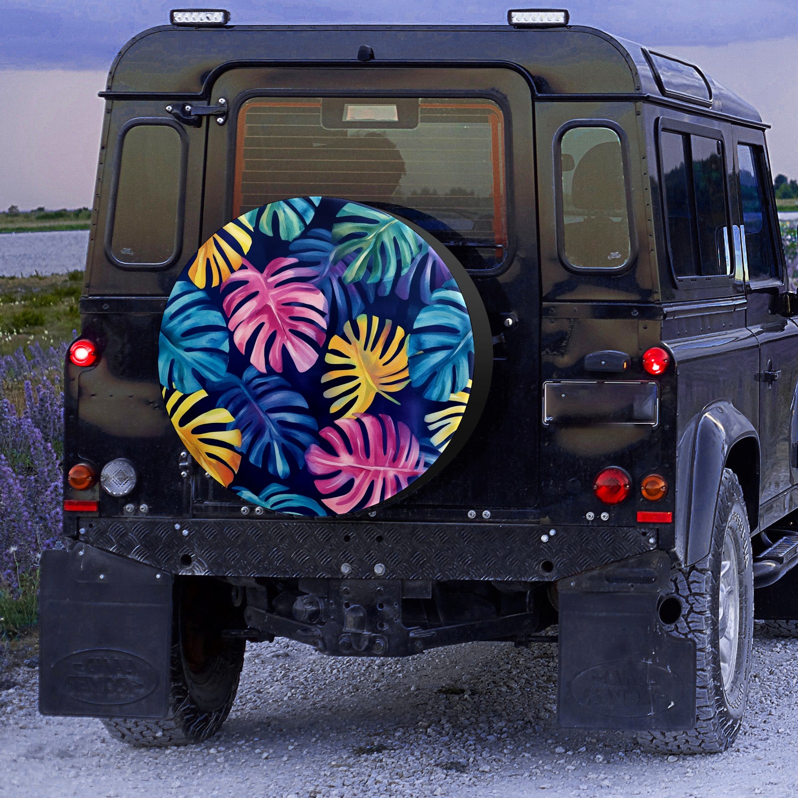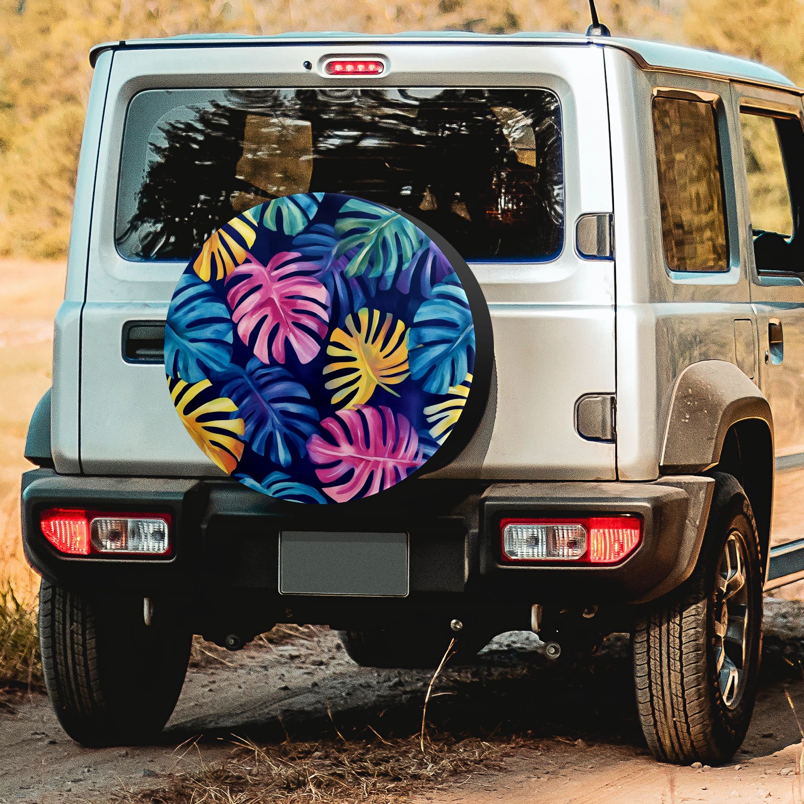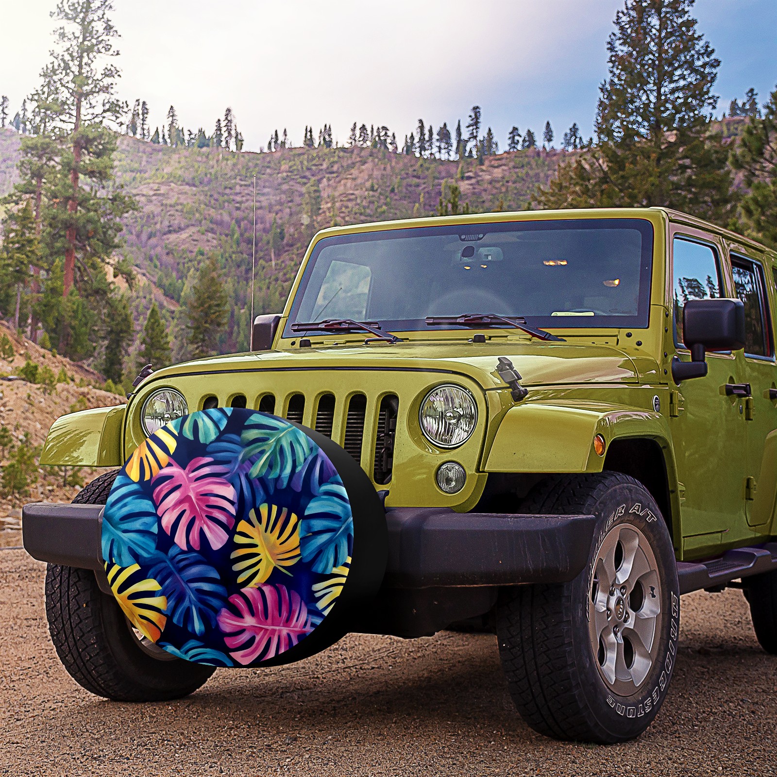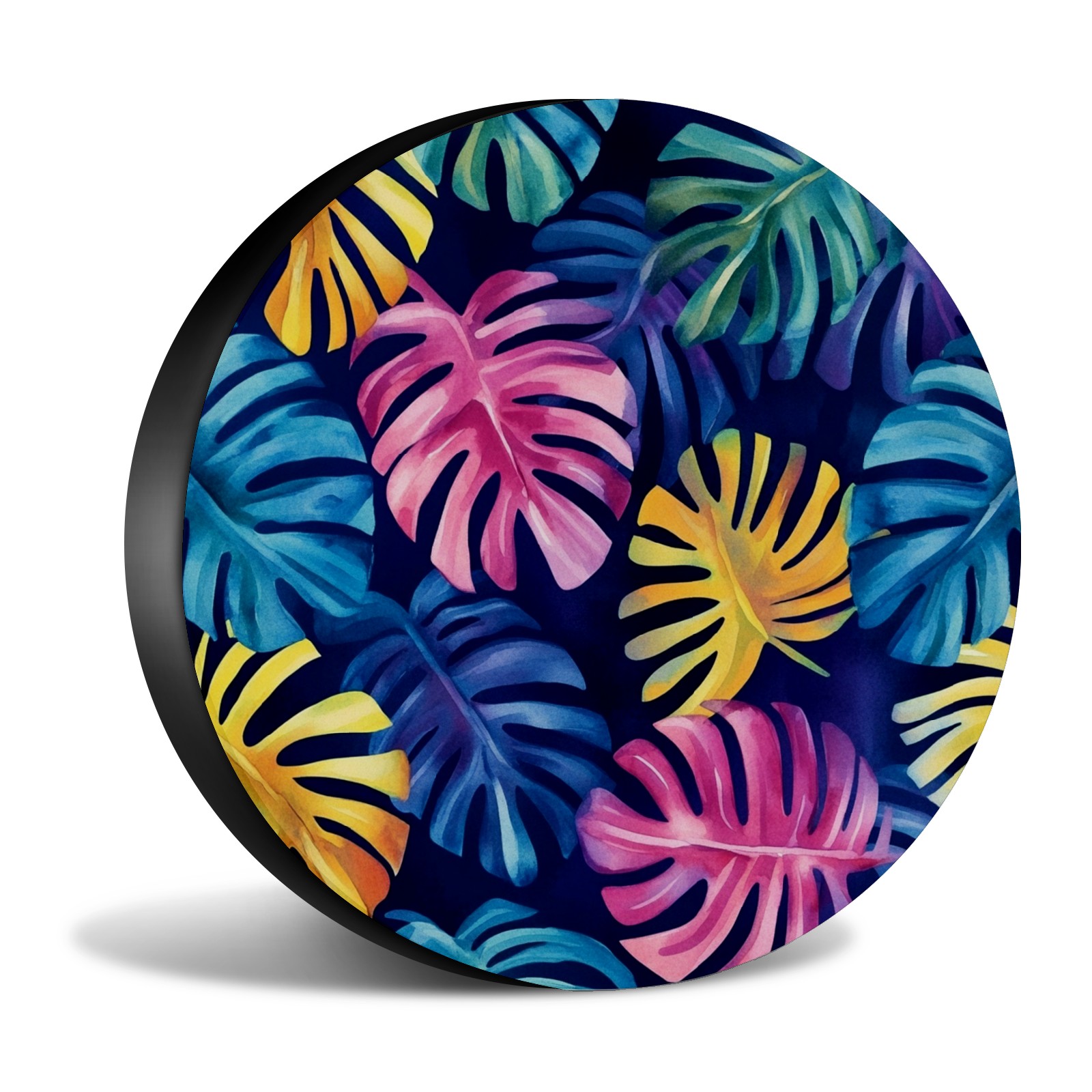 Watercolor Tropical Leaves Spare Tire Cover, Waterproof Wheel Protector Universal Fits for Truck SUV RV Trailer Camper (14 Inch)