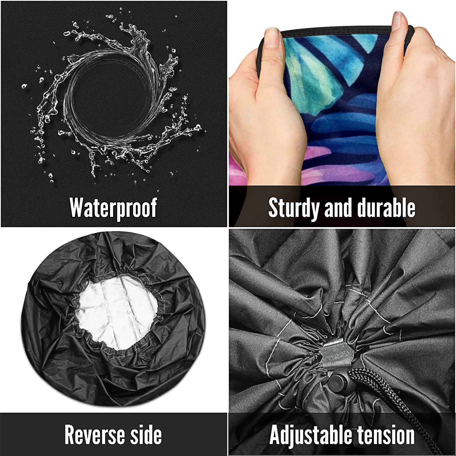 • <p>Keep your spare tire protected and your vehicle looking sharp with our universal Tire Cover. Designed with a sleek single-sided print and classic black sides, this rugged cover is made from high-quality polyester fabric that is fully waterproof. The adjustable nylon rope ensures a secure, custom fit for any tire, helping to maintain a clean and professional appearance for your vehicle.</p>