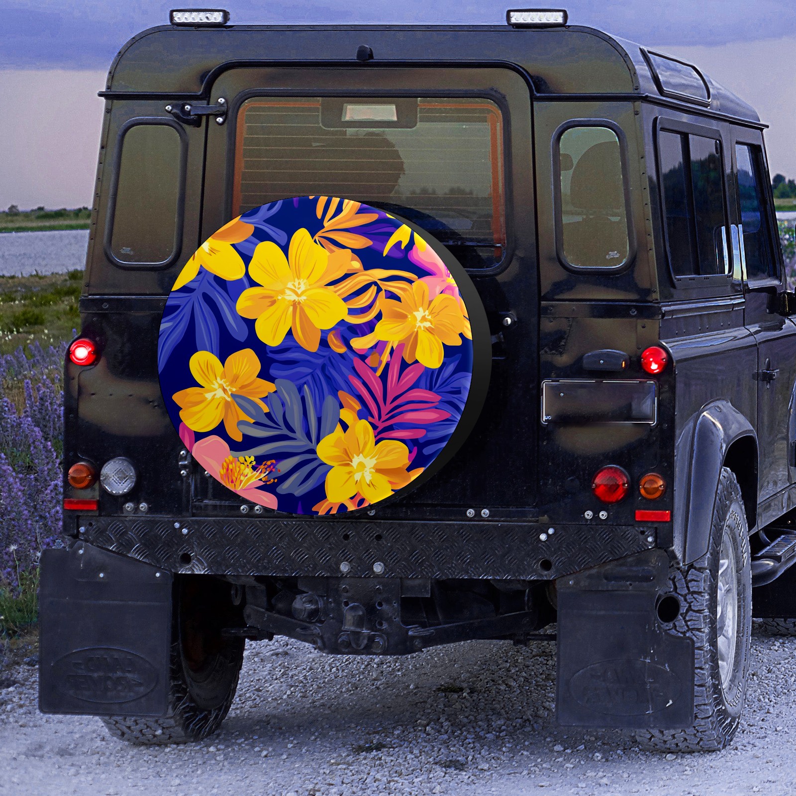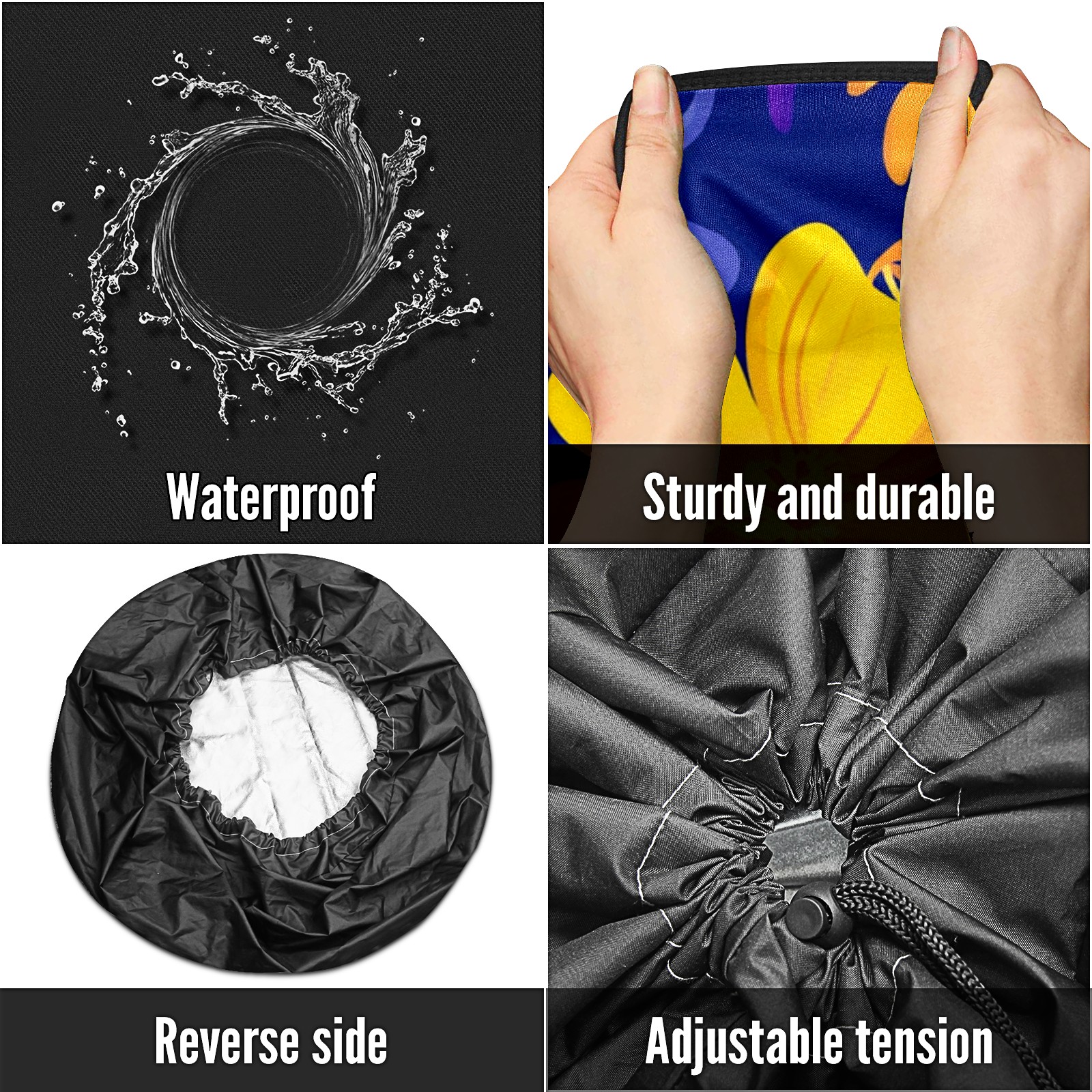 • <p>Keep your spare tire protected and your vehicle looking sharp with our universal Tire Cover. Designed with a sleek single-sided print and classic black sides, this rugged cover is made from high-quality polyester fabric that is fully waterproof. The adjustable nylon rope ensures a secure, custom fit for any tire, helping to maintain a clean and professional appearance for your vehicle.</p>