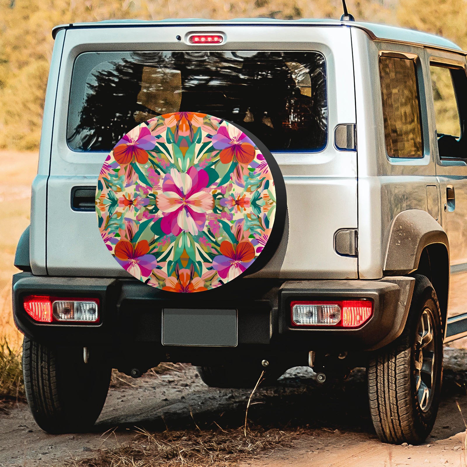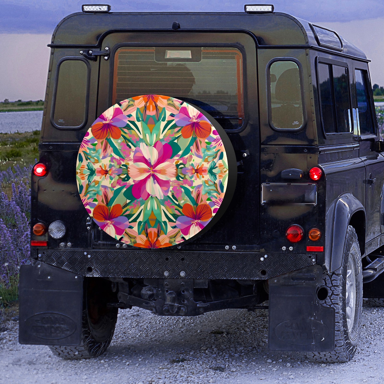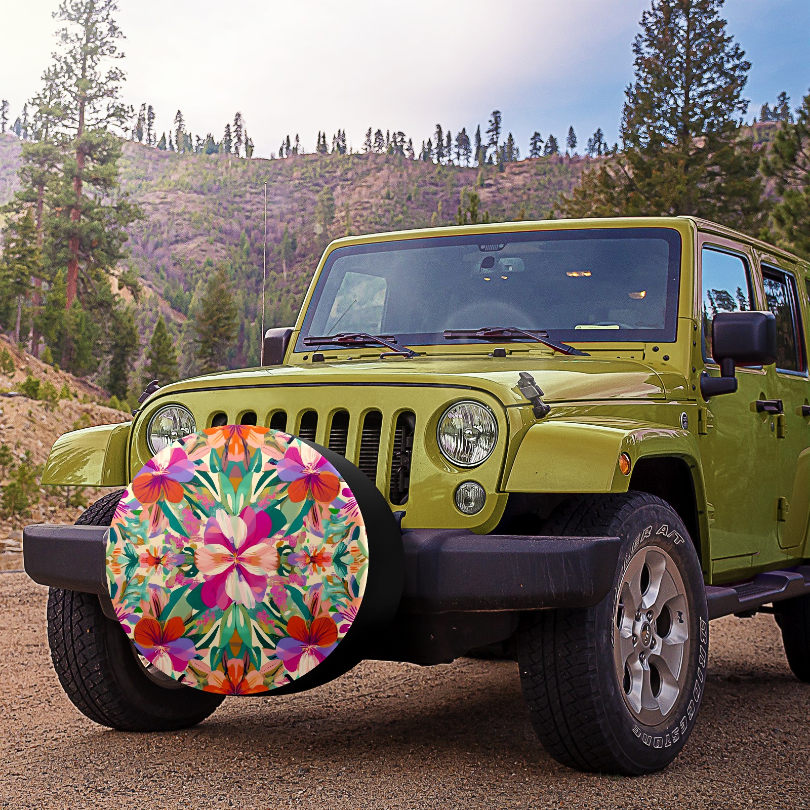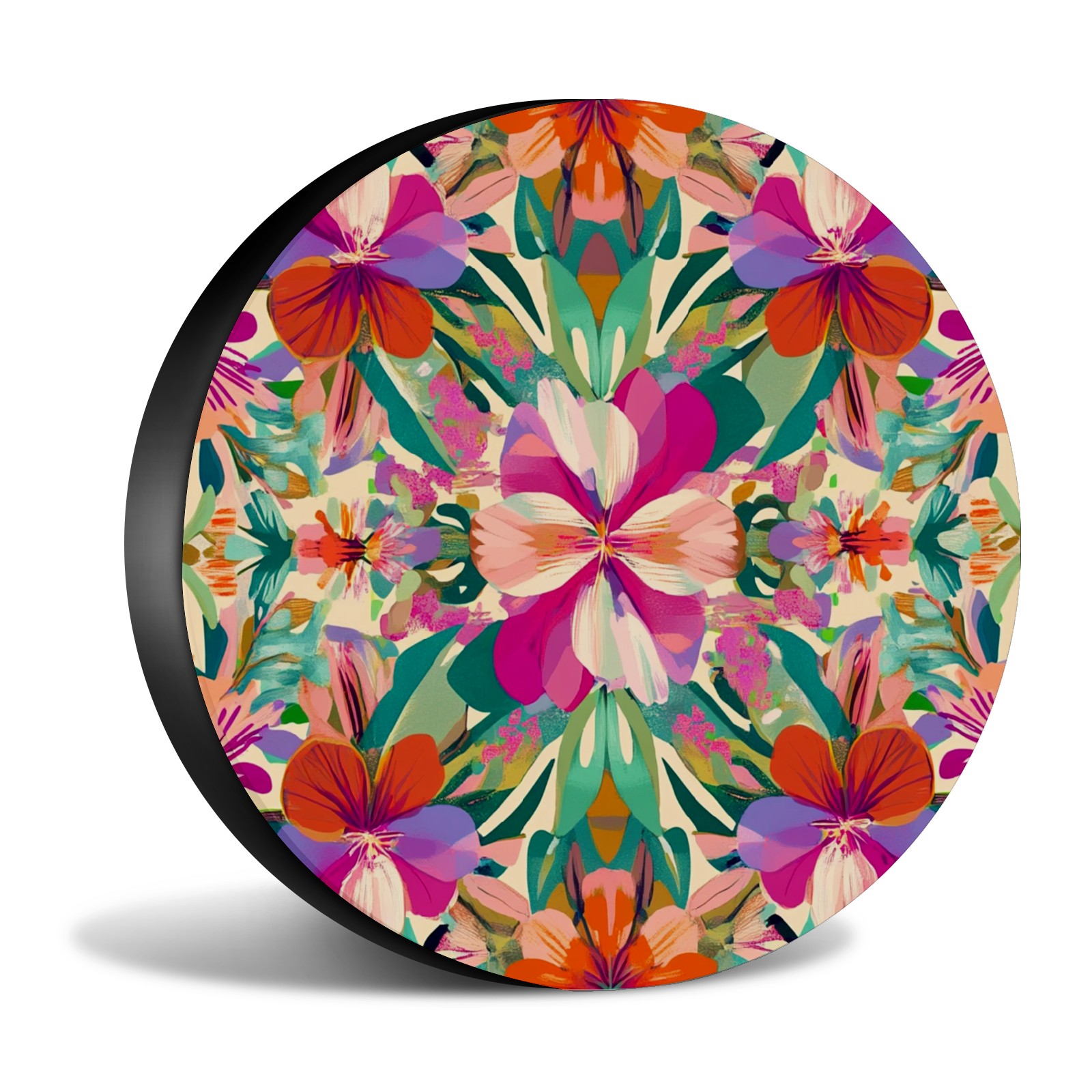 Exotic Flowers Spare Tire Cover, Waterproof Wheel Protector Universal Fits for Truck SUV RV Trailer Camper (14 Inch)