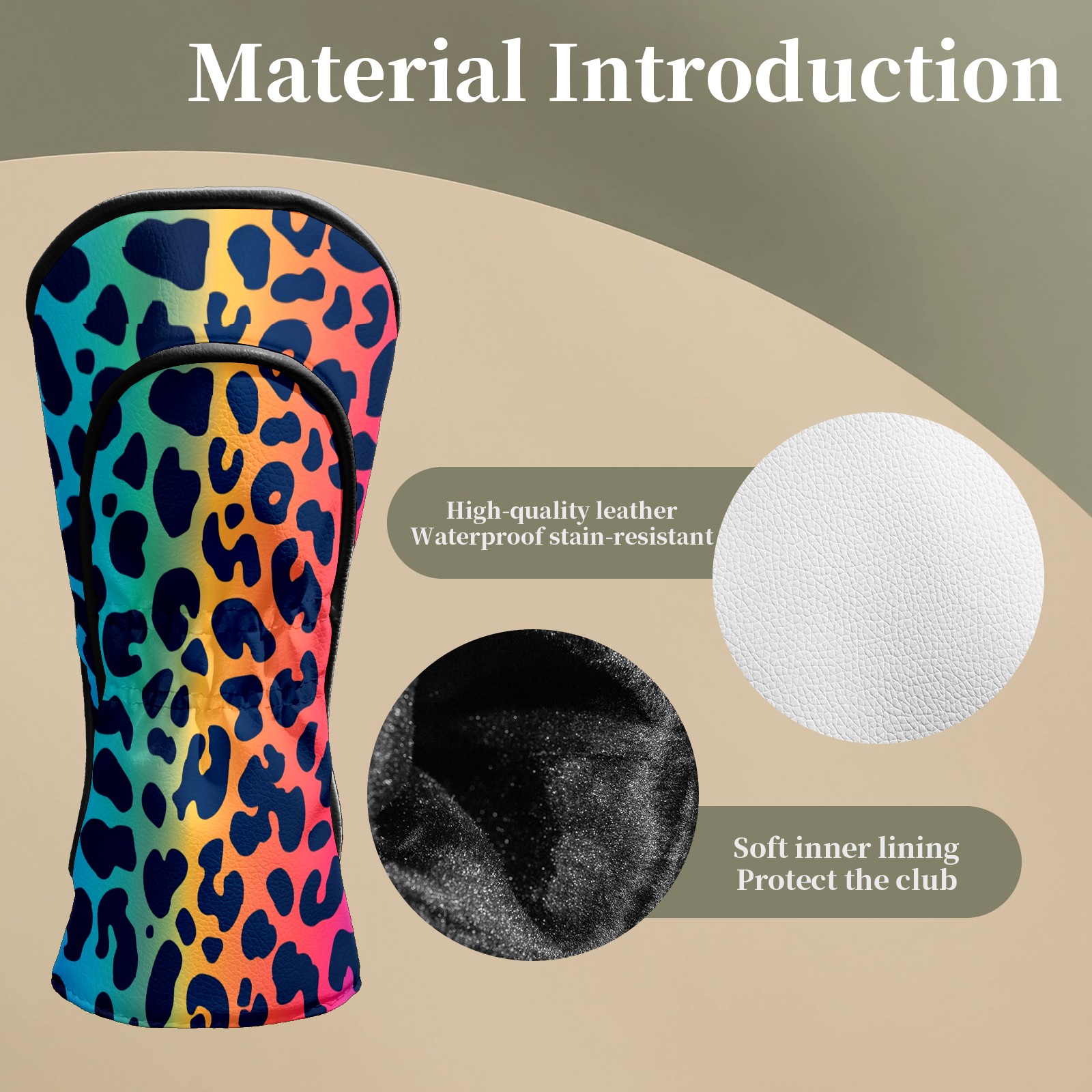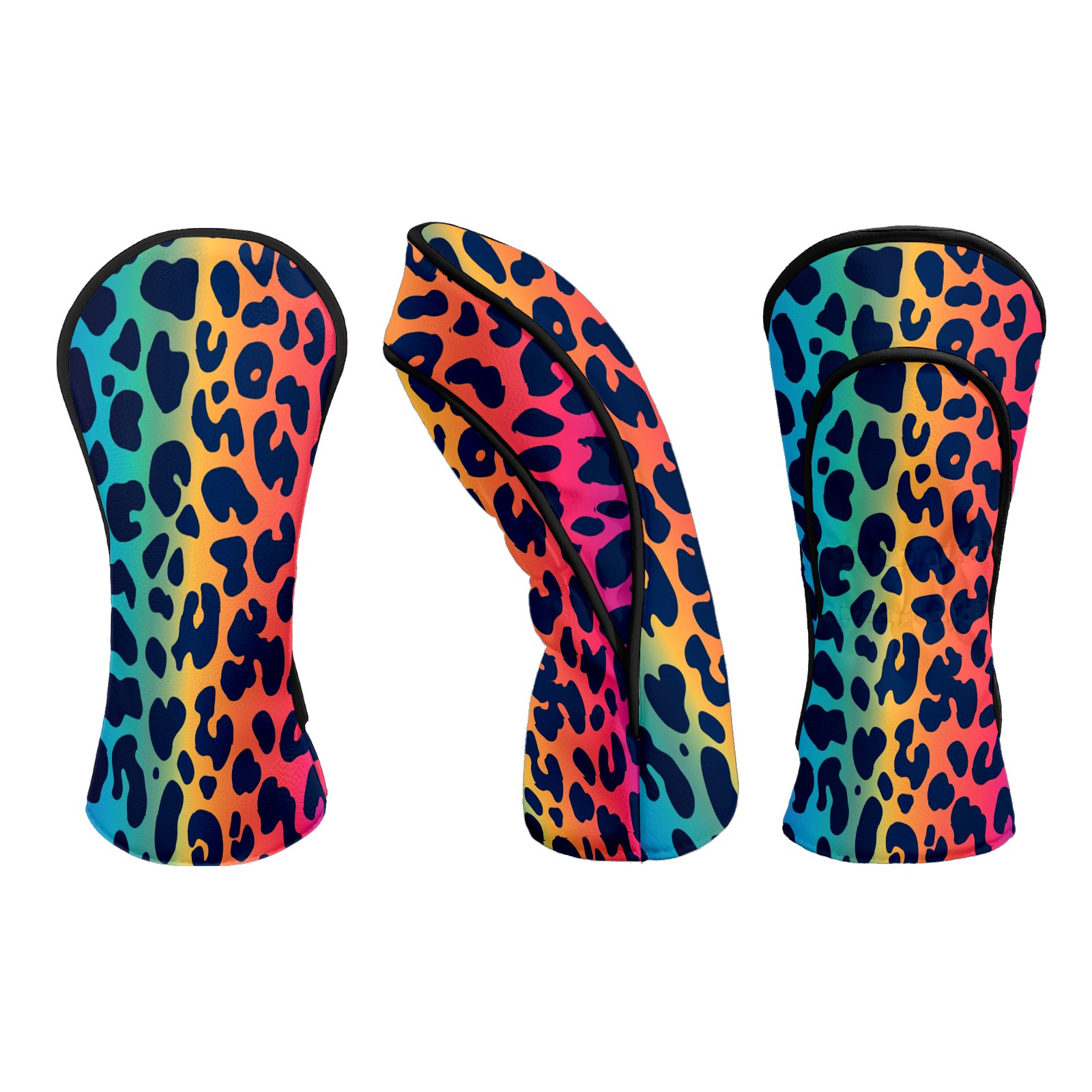 Golf Club Covers Colorful Leopard Print Driver Head cover, Leather Golf Club Head Covers for Driver Fairway Woods Waterproof Golf Headcovers with Anti-Scratch Lining Fits Most Clubs