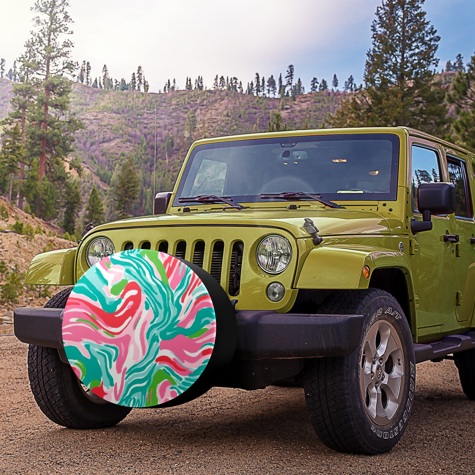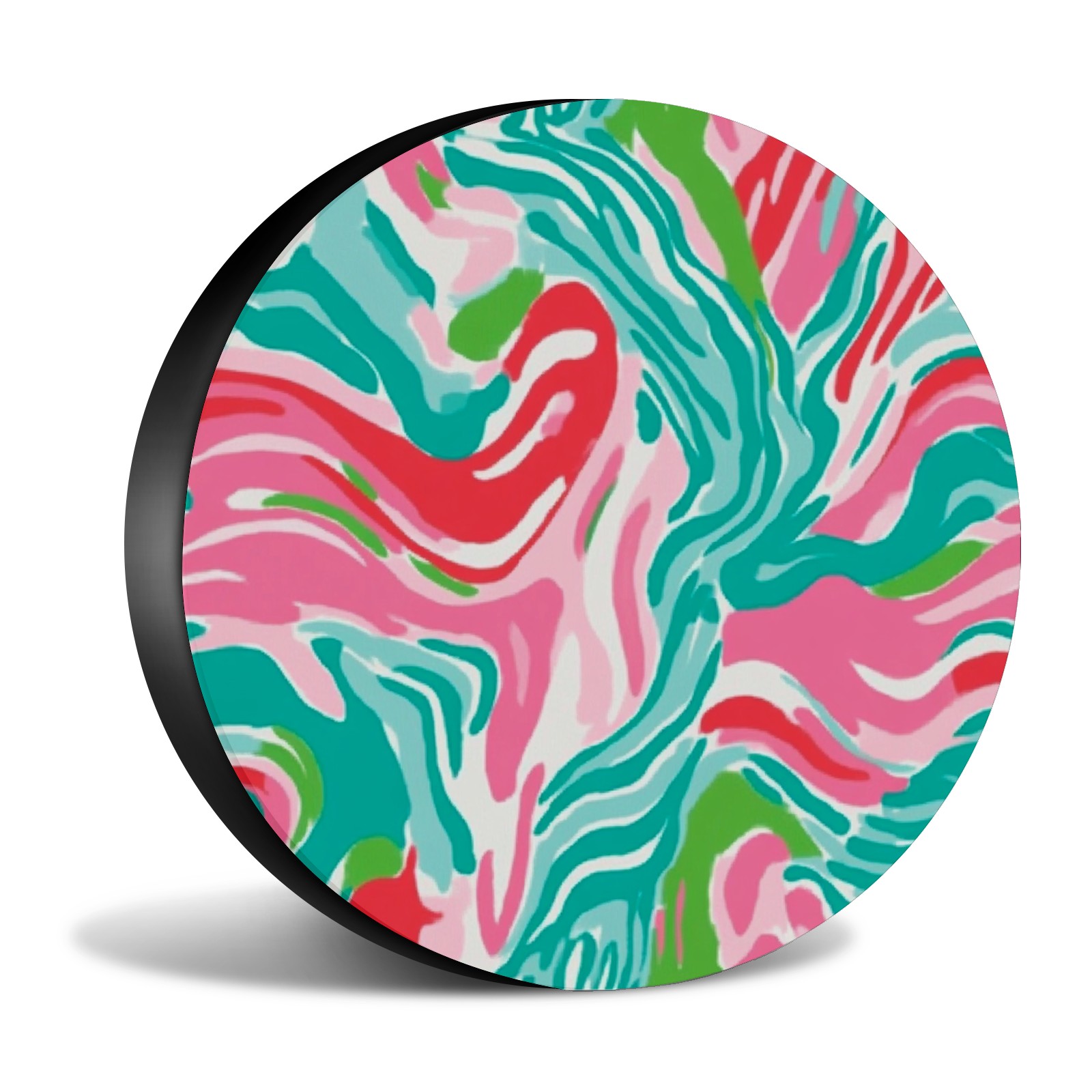 Pink And Teal Abstract Waves Spare Tire Cover, Waterproof Wheel Protector Universal Fits for Truck SUV RV Trailer Camper (14 Inch)