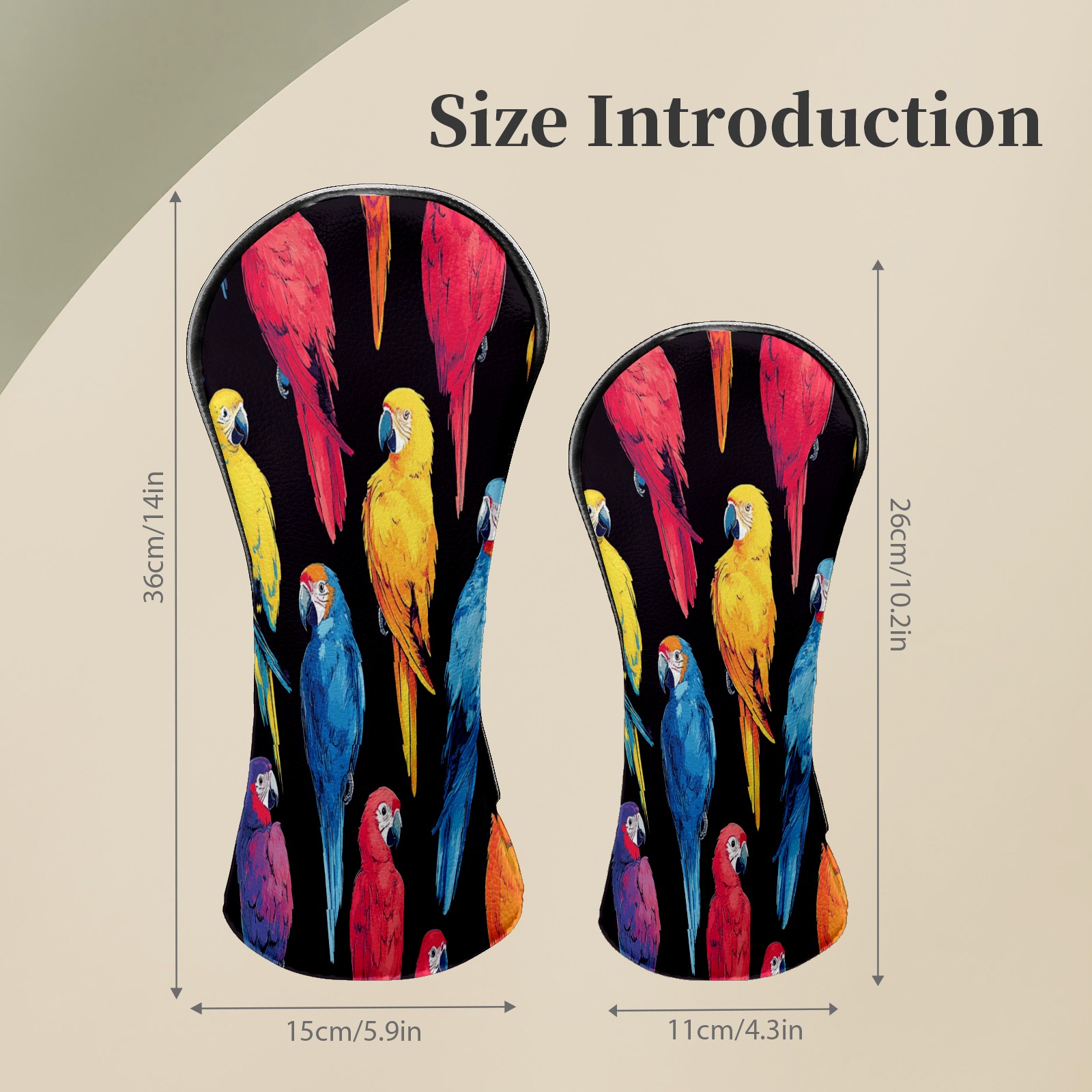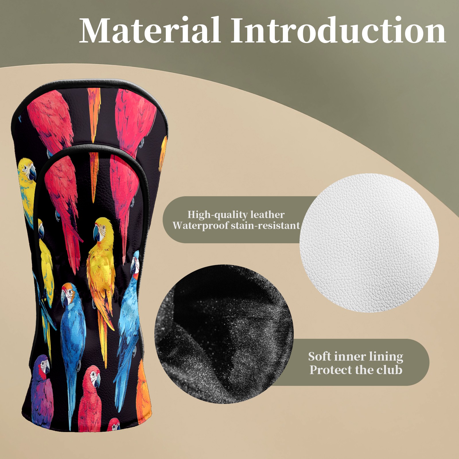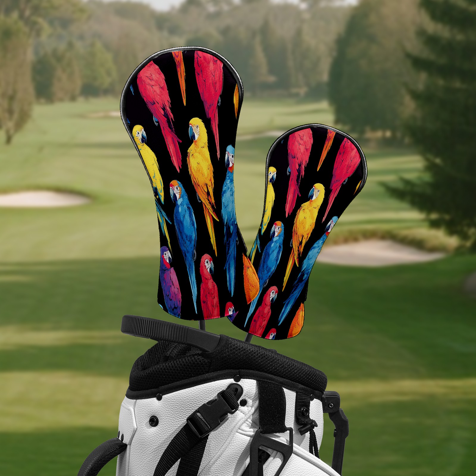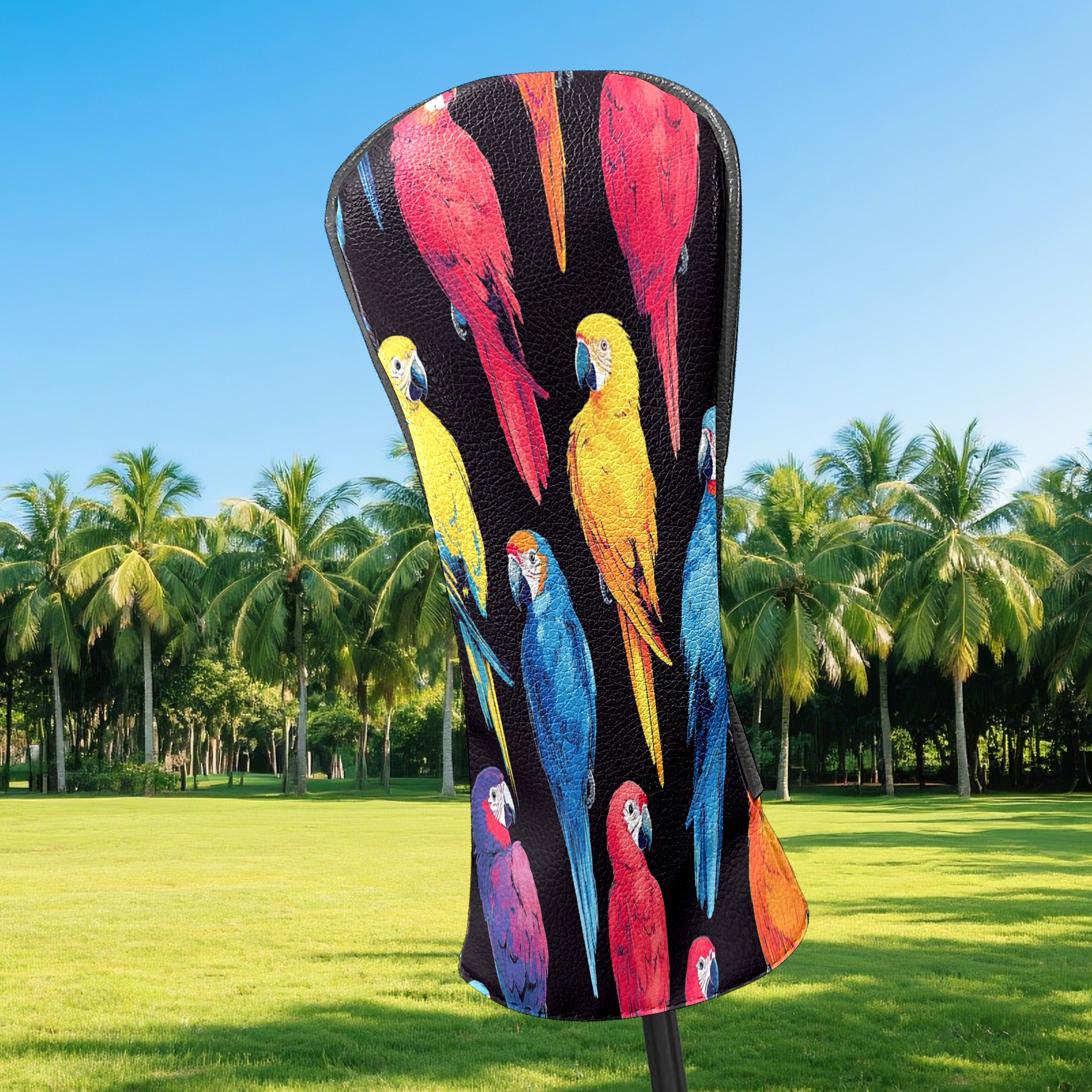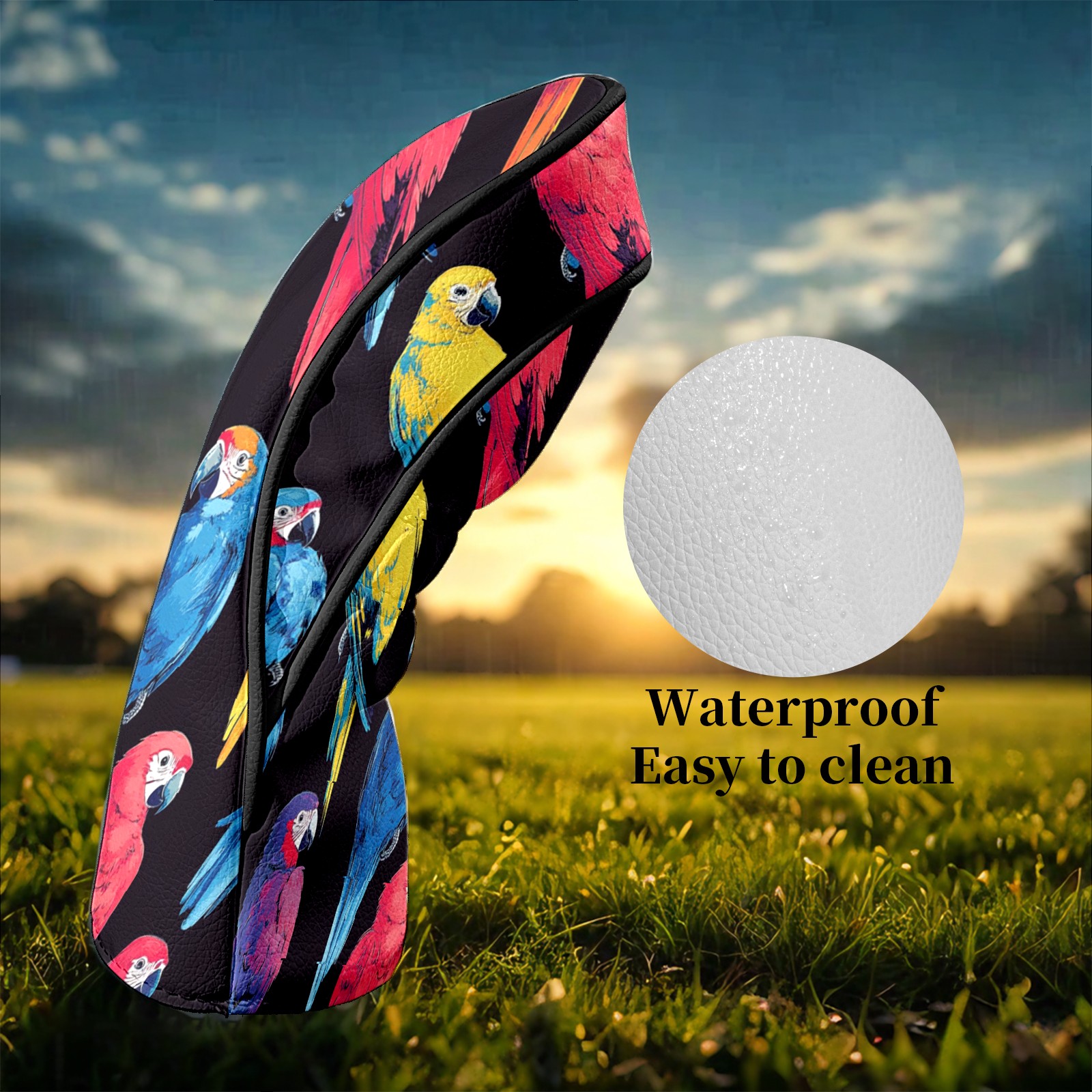 Golf Club Covers Colorful Parrot Driver Head cover, Leather Golf Club Head Covers for Driver Fairway Woods Waterproof Golf Headcovers with Anti-Scratch Lining Fits Most Clubs