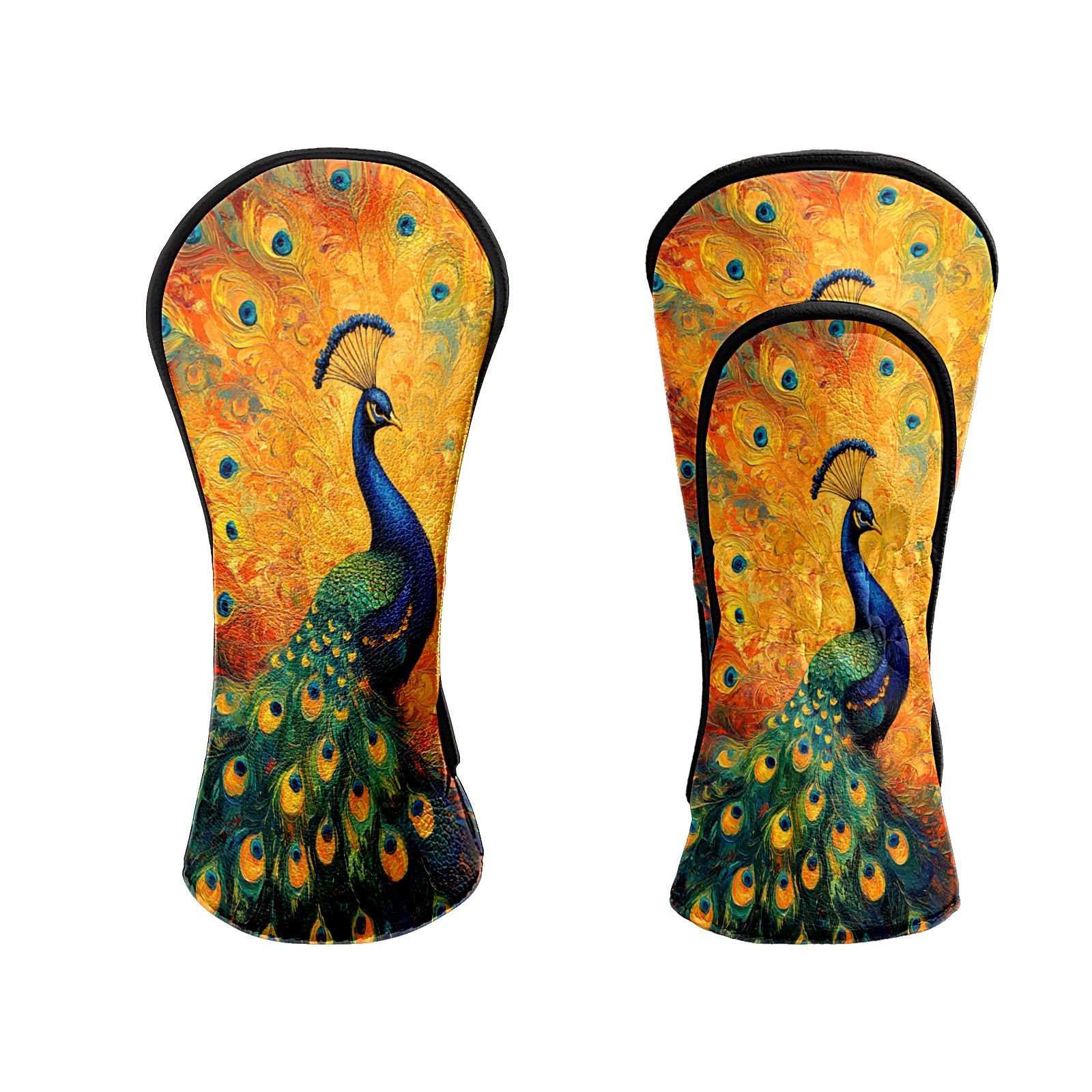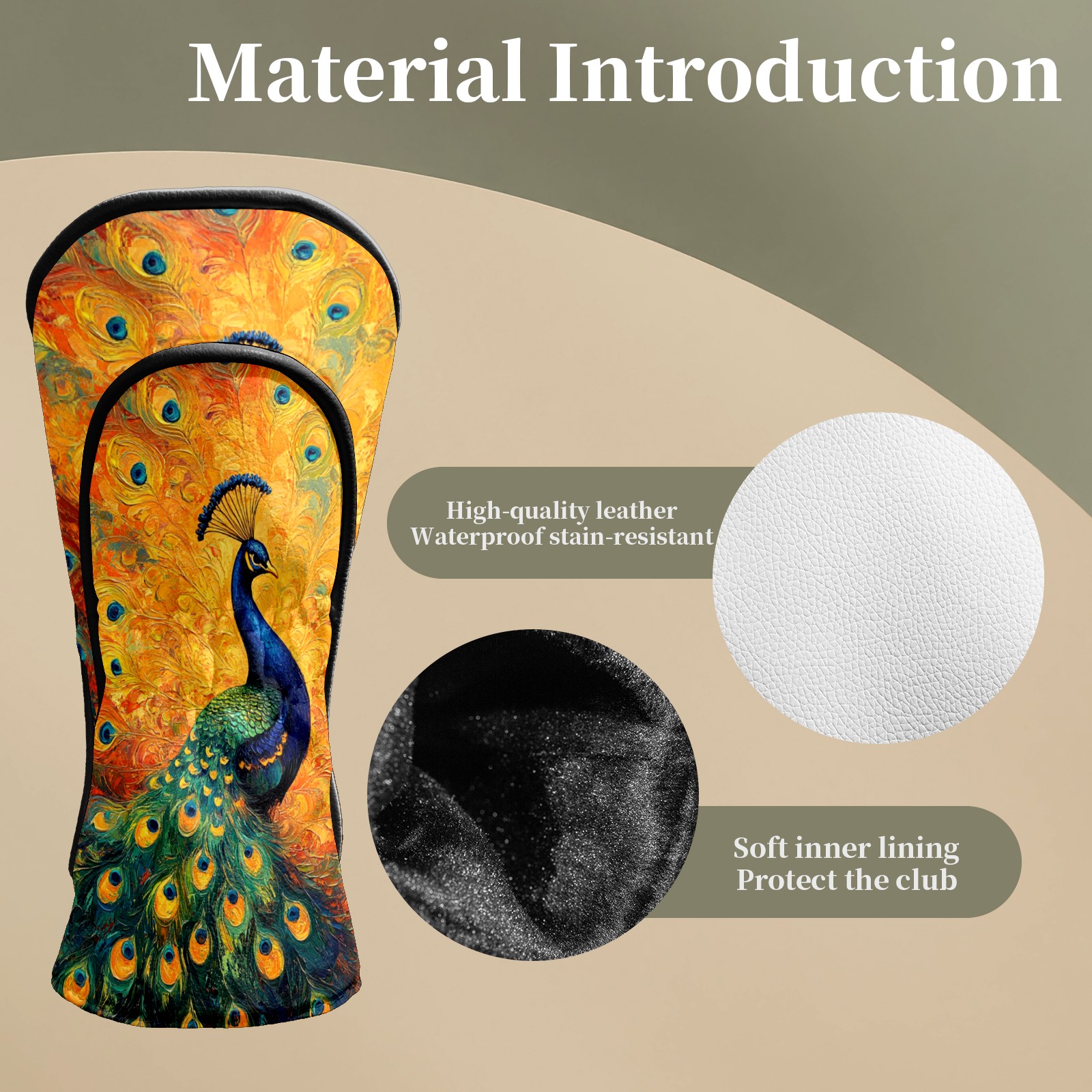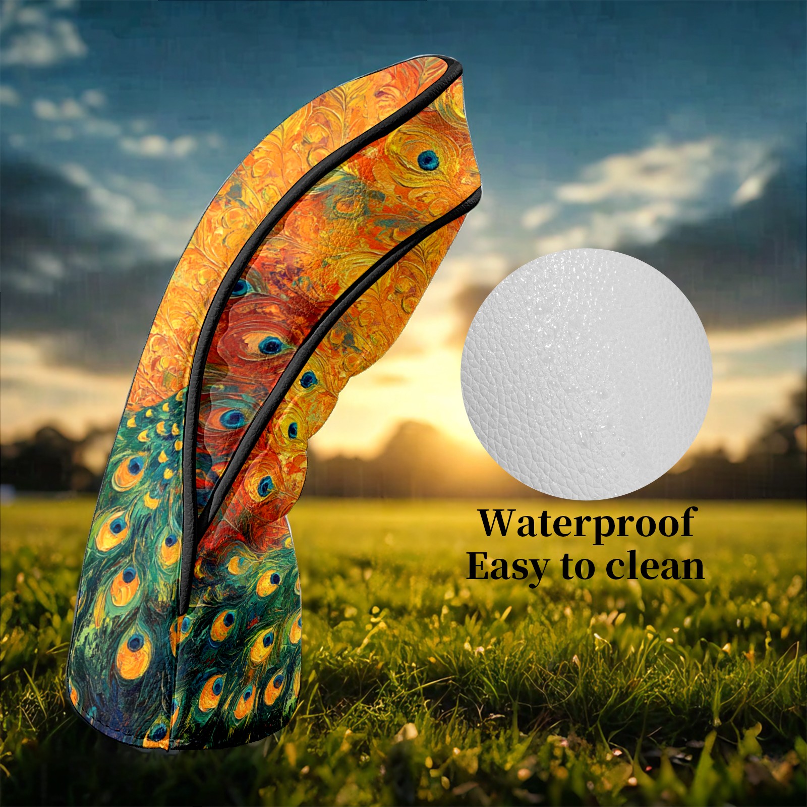 Golf Club Covers Art Peacock Driver Head cover, Leather Golf Club Head Covers for Driver Fairway Woods Waterproof Golf Headcovers with Anti-Scratch Lining Fits Most Clubs