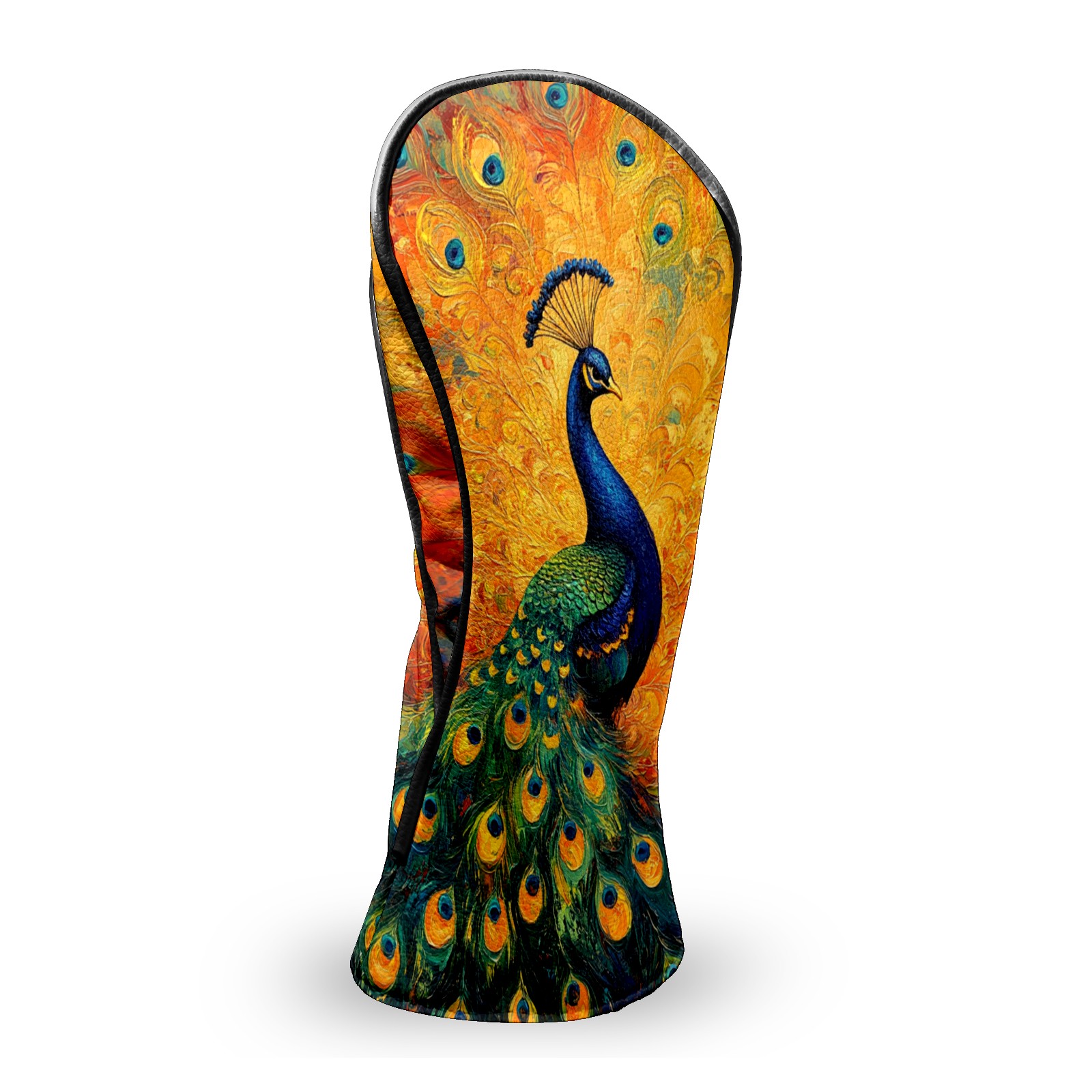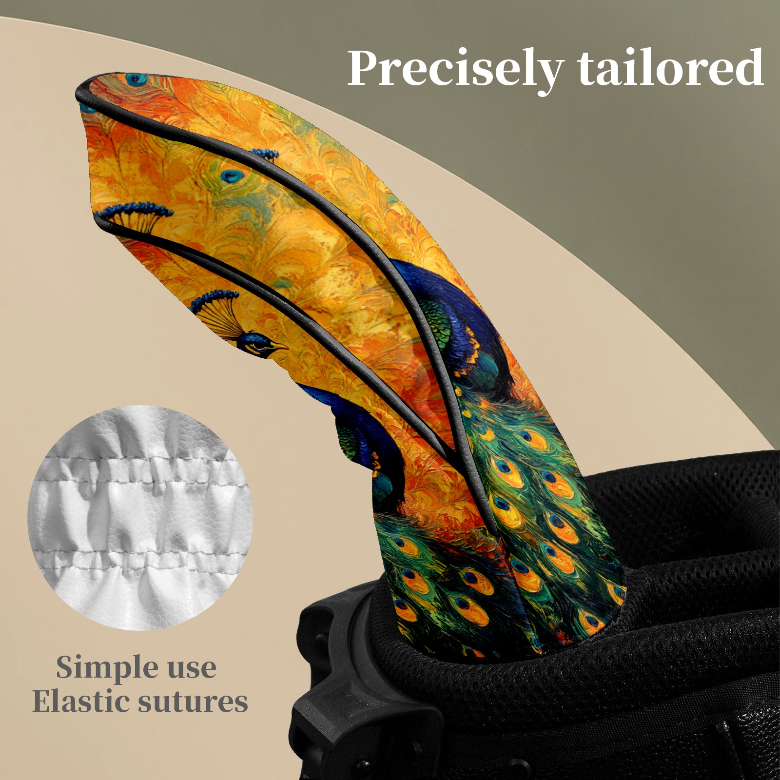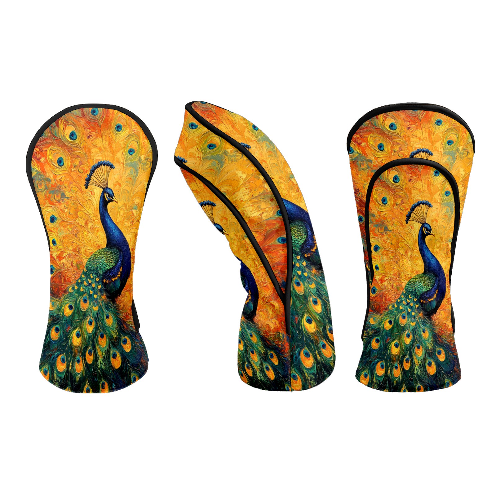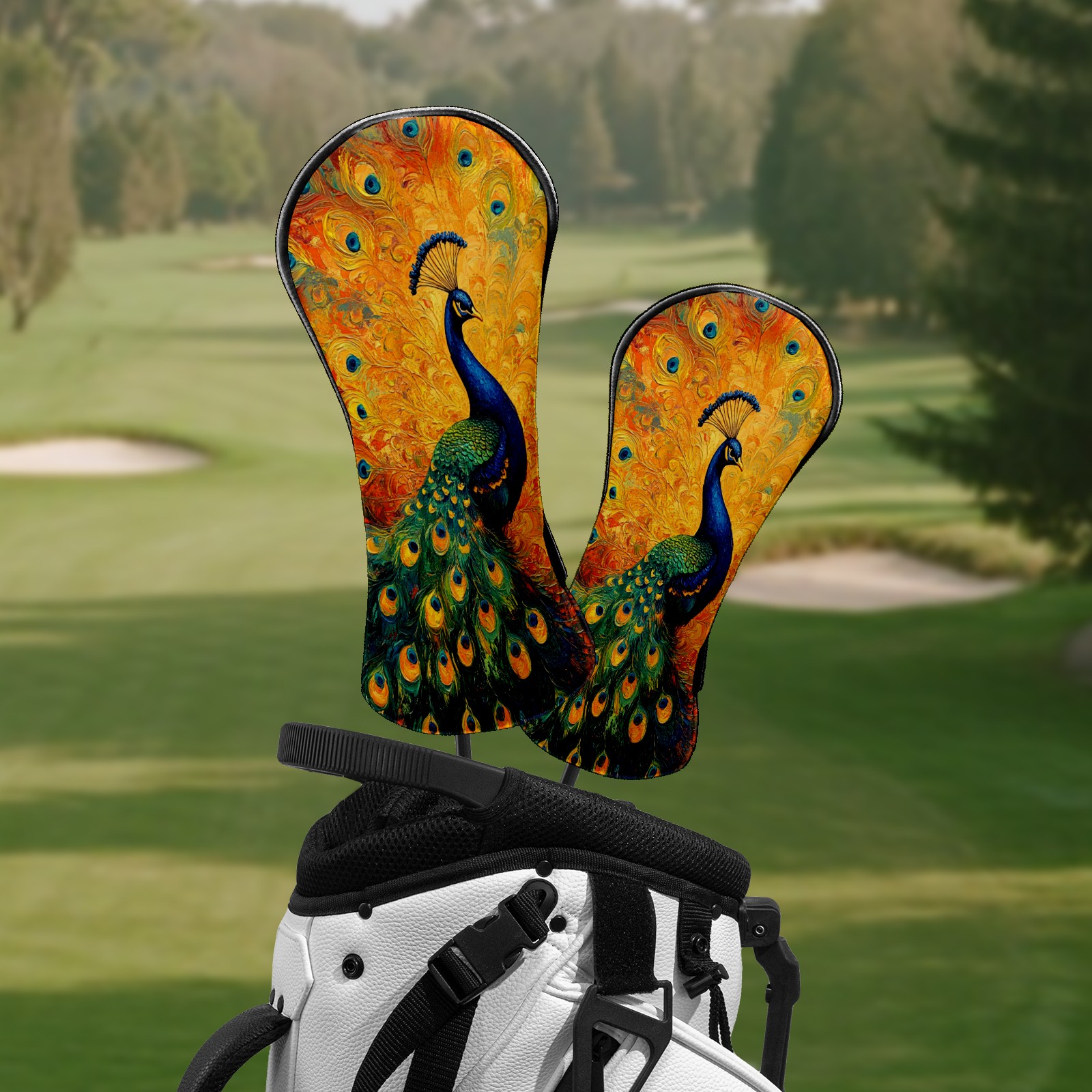 Golf Club Covers Art Peacock Driver Head cover, Leather Golf Club Head Covers for Driver Fairway Woods Waterproof Golf Headcovers with Anti-Scratch Lining Fits Most Clubs
