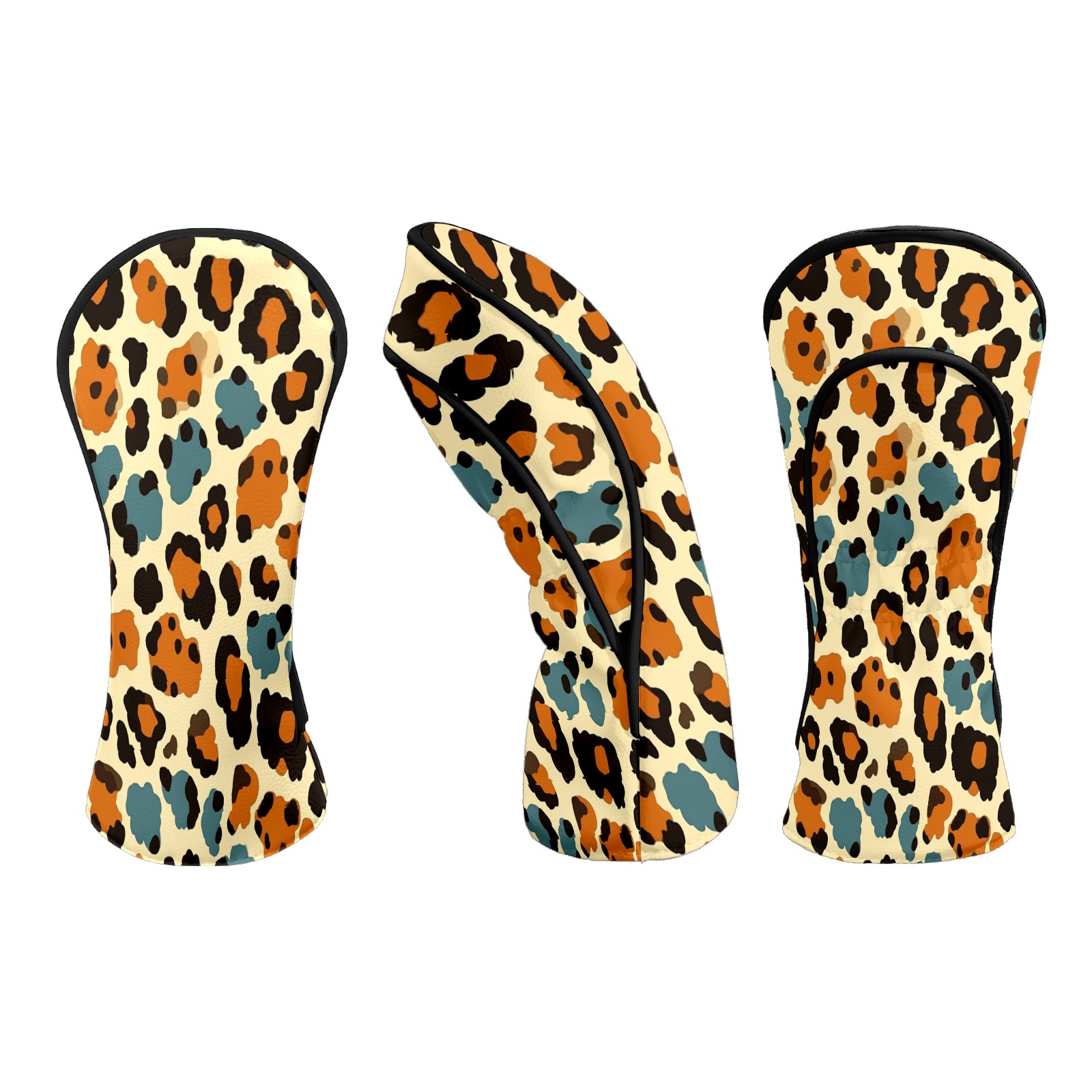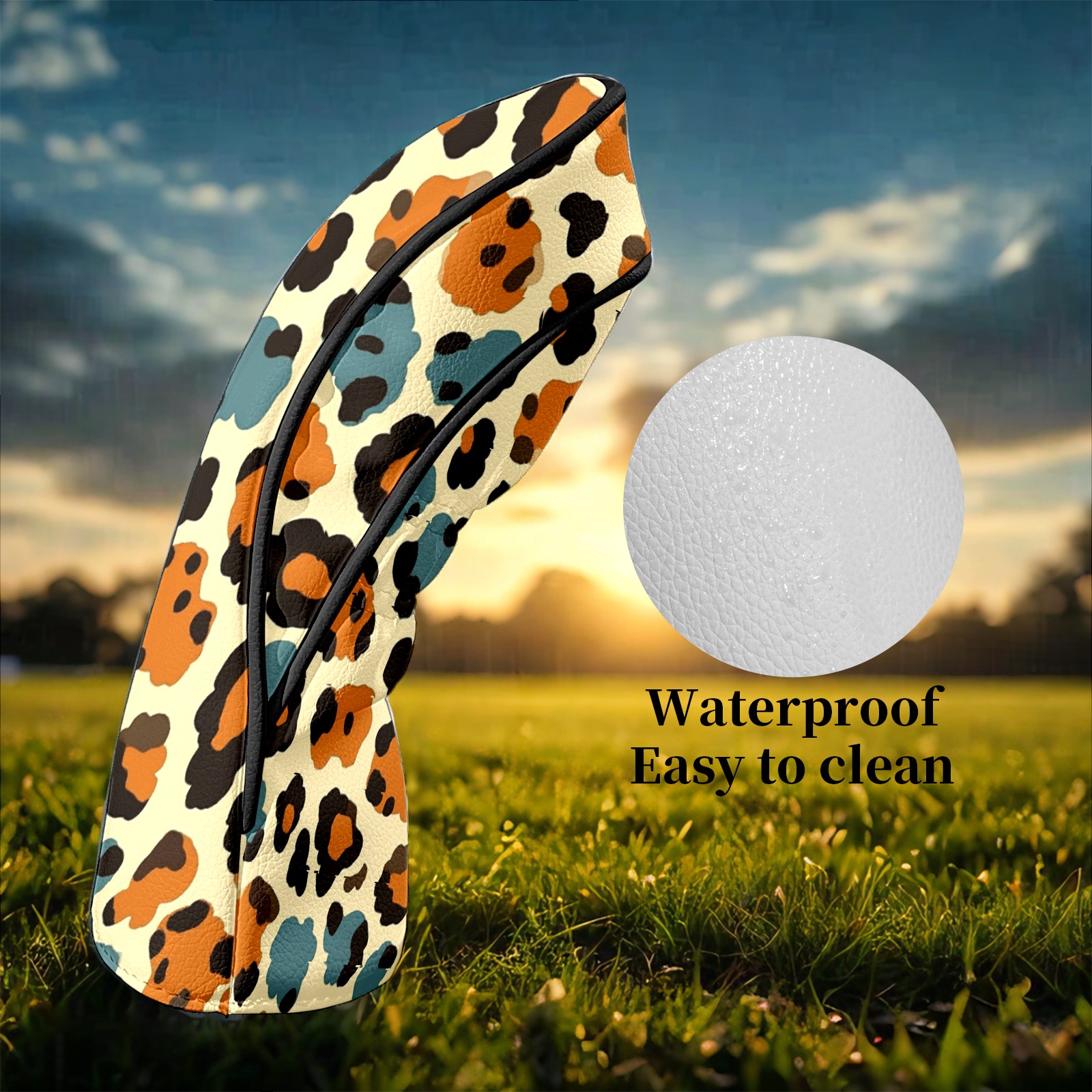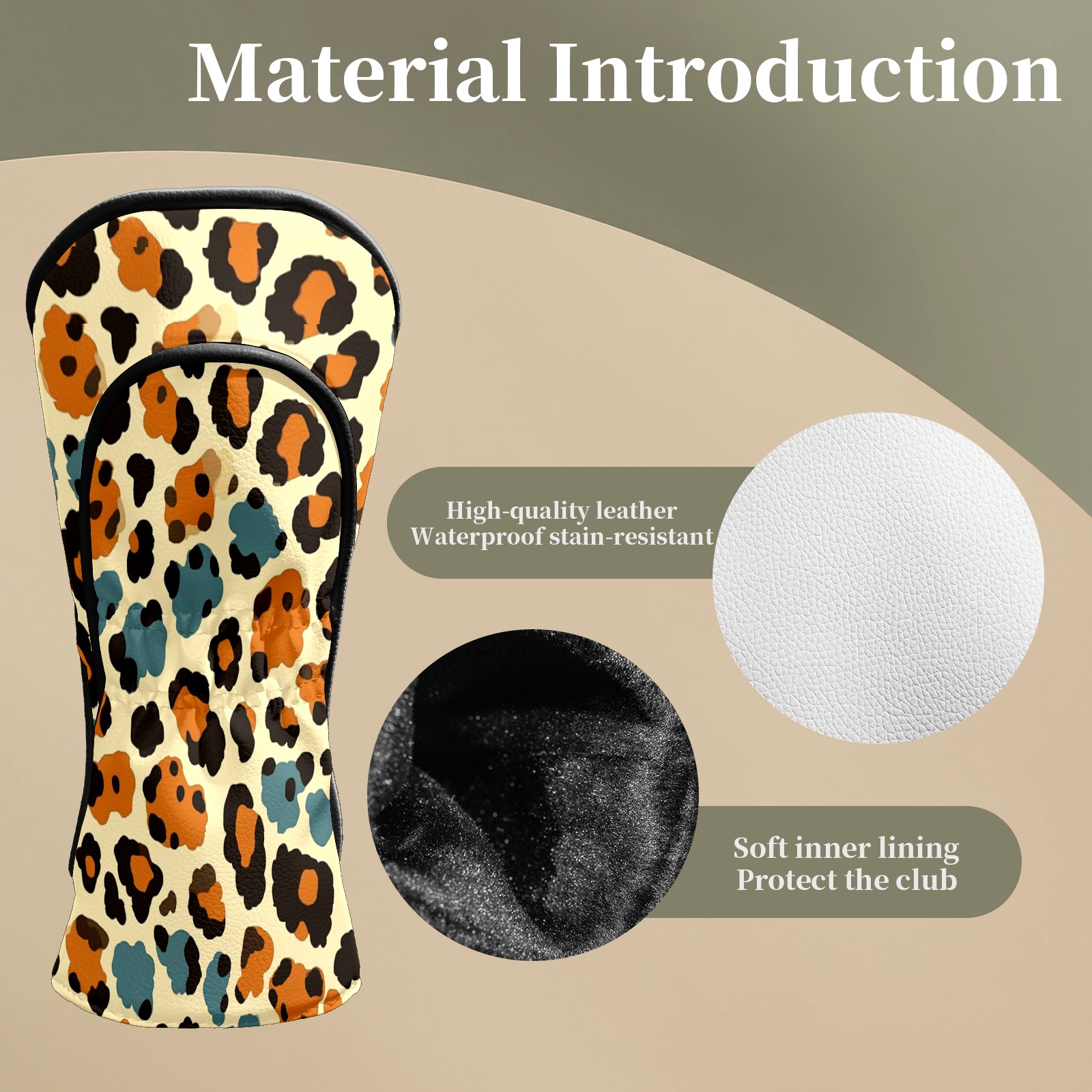 Golf Club Covers Brown Yellow Leopard Print Driver Head cover, Leather Golf Club Head Covers for Driver Fairway Woods Waterproof Golf Headcovers with Anti-Scratch Lining Fits Most Clubs