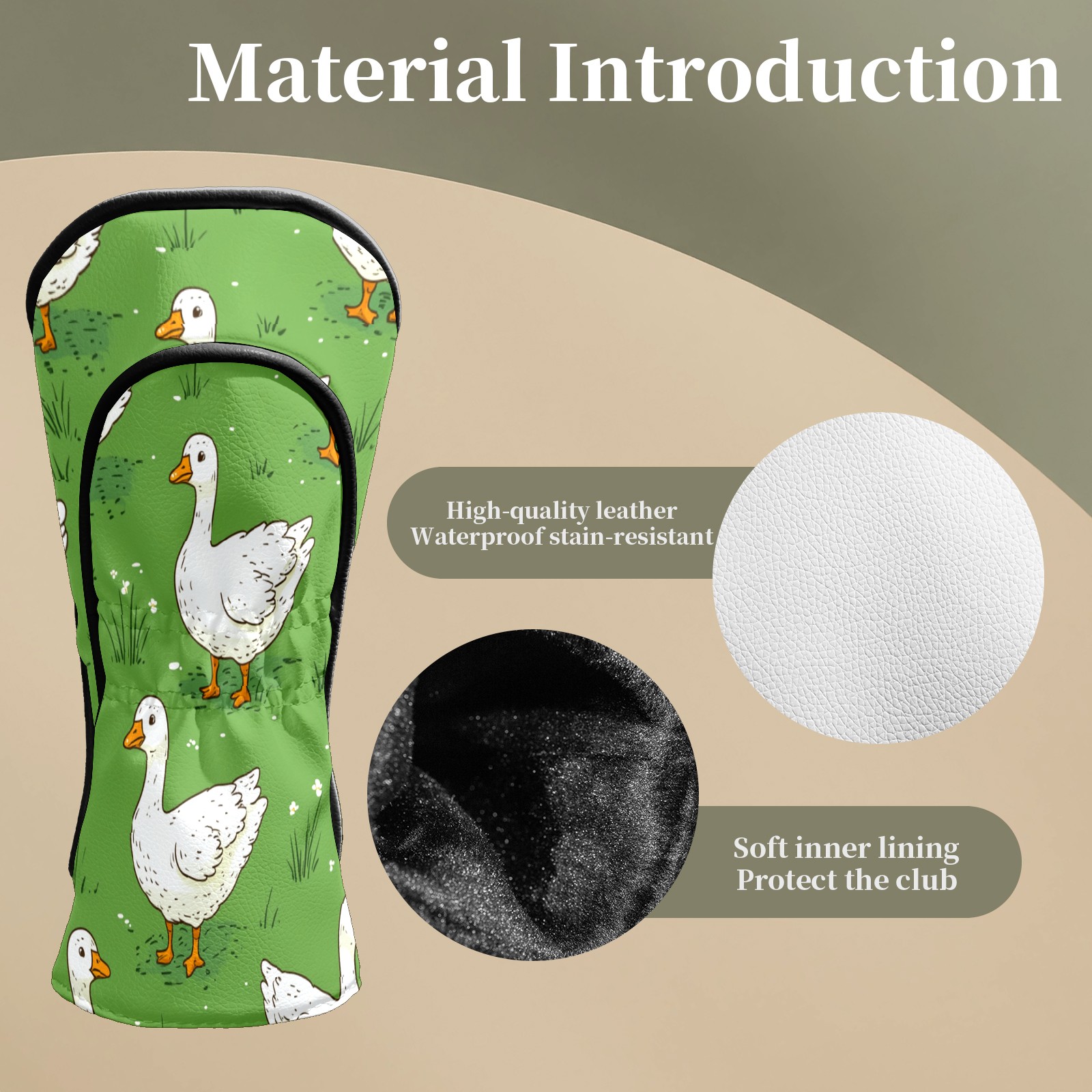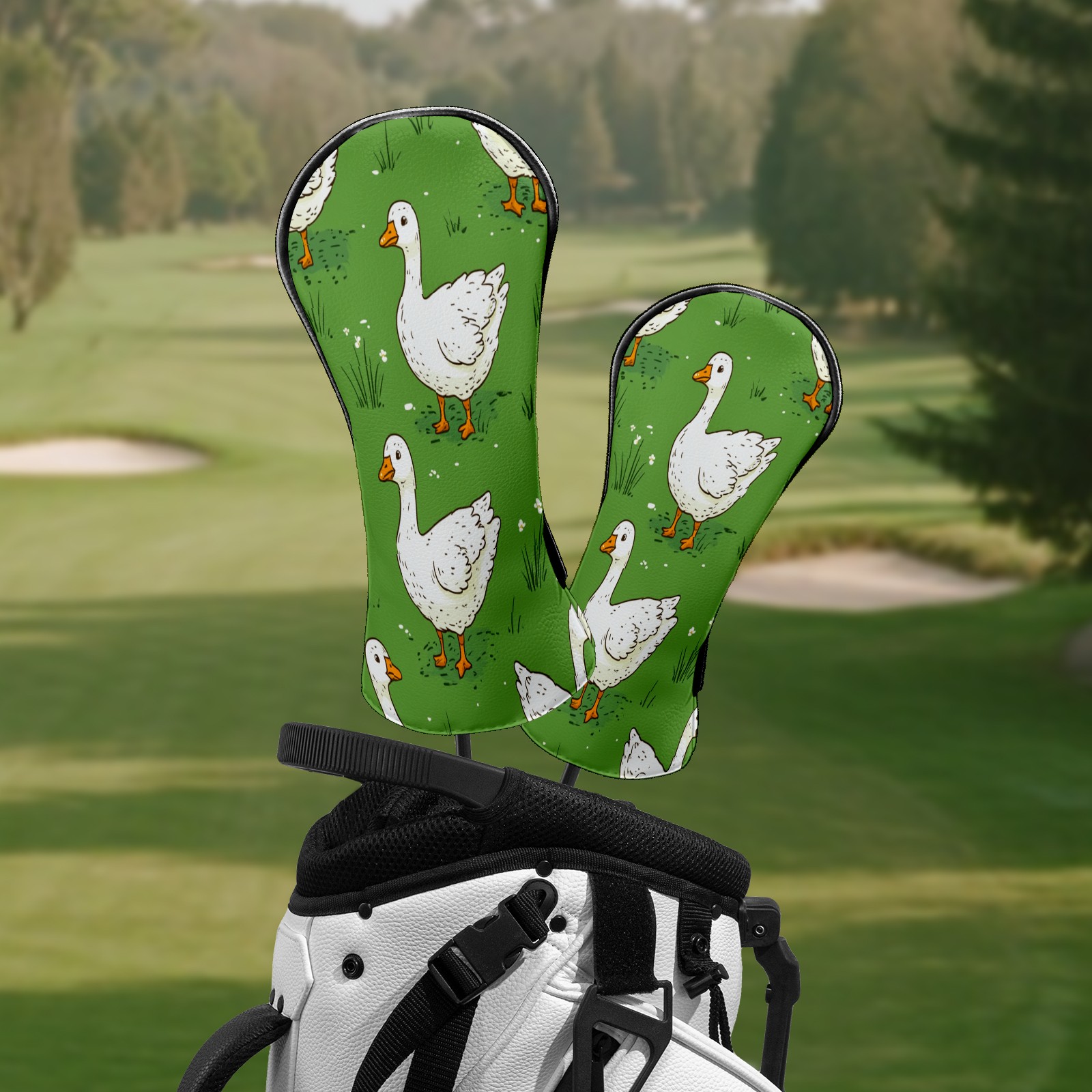 Golf Club Covers White Duck Flock Driver Head cover, Leather Golf Club Head Covers for Driver Fairway Woods Waterproof Golf Headcovers with Anti-Scratch Lining Fits Most Clubs