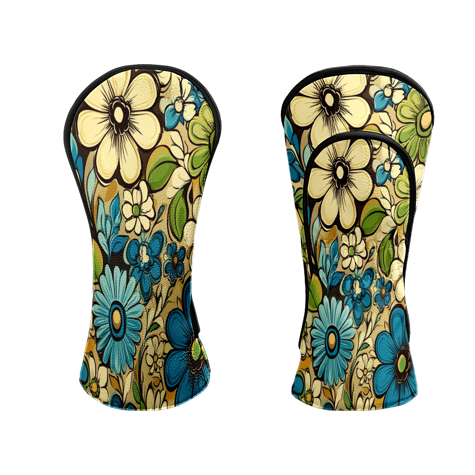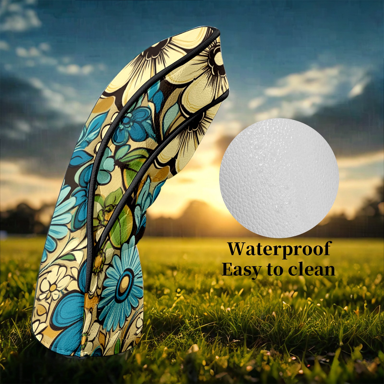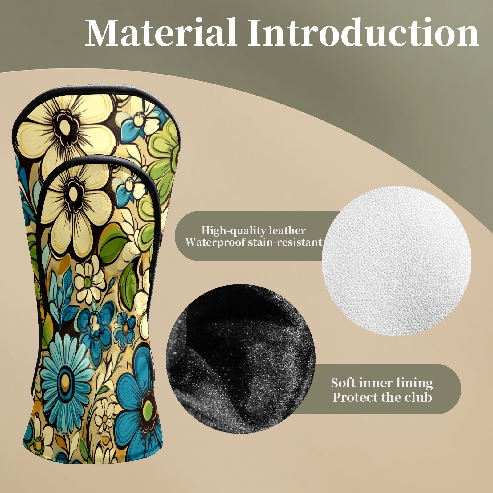 Golf Club Covers Yellow Blue Flowers Driver Head cover, Leather Golf Club Head Covers for Driver Fairway Woods Waterproof Golf Headcovers with Anti-Scratch Lining Fits Most Clubs