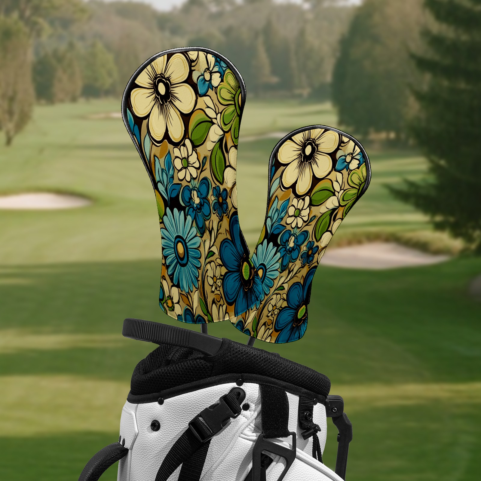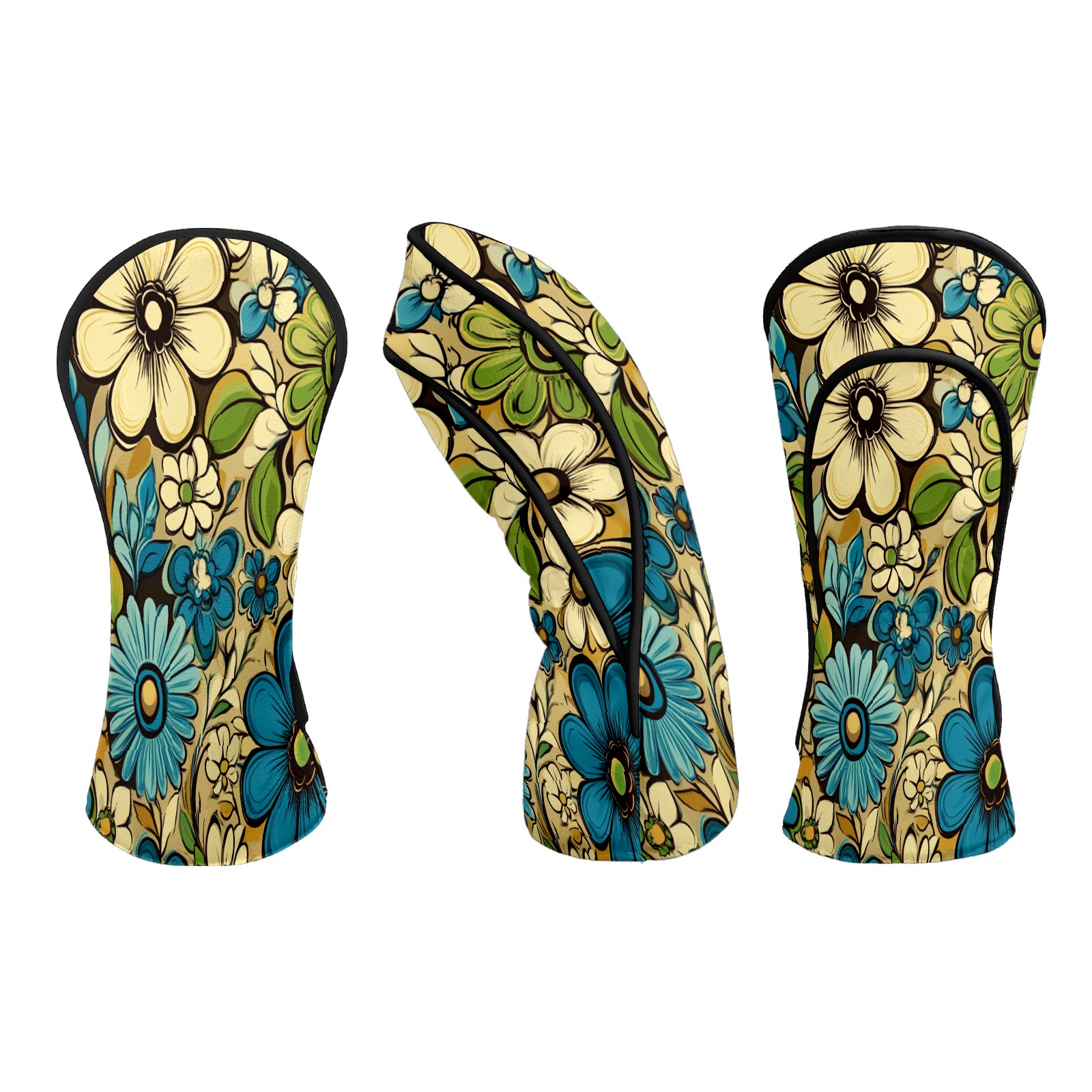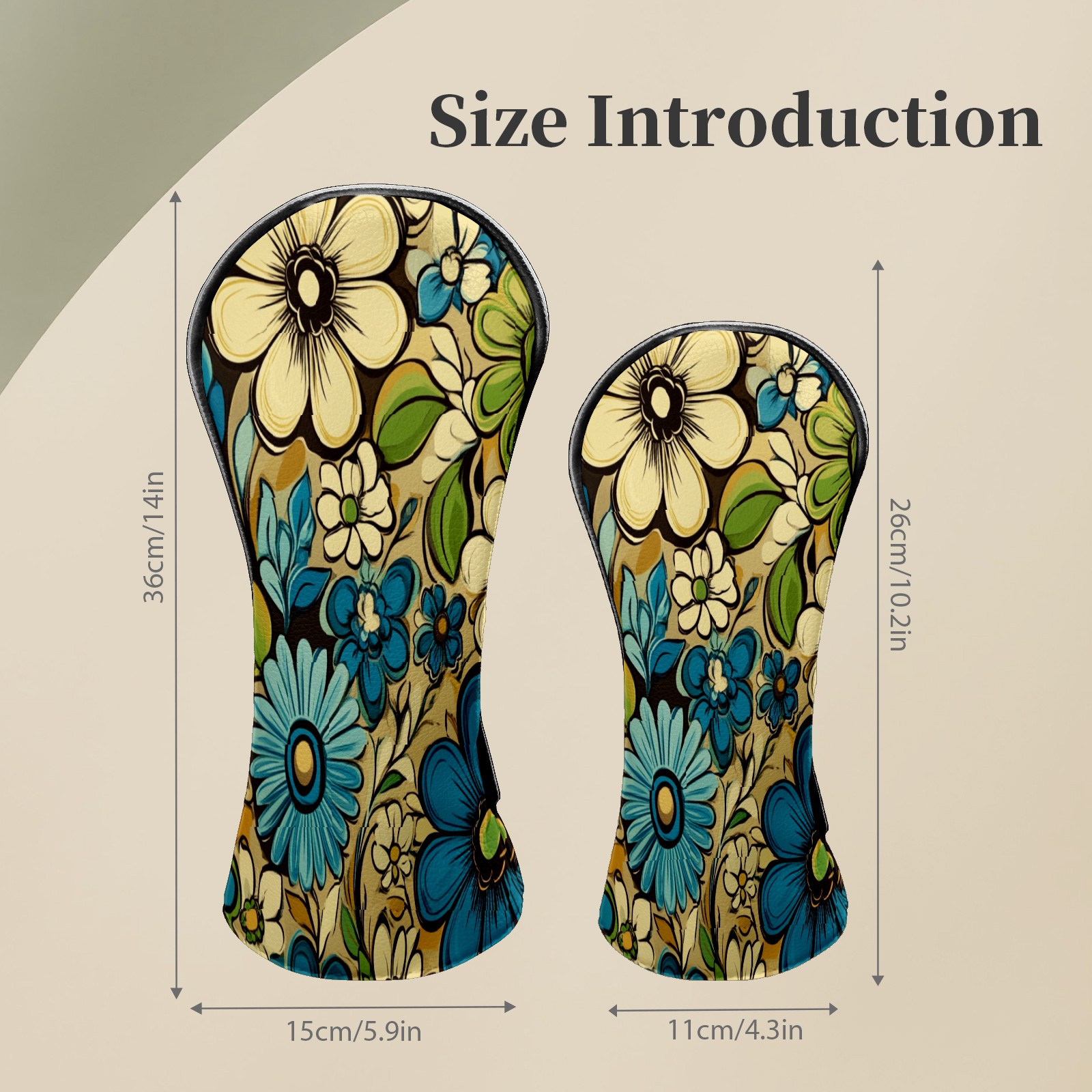 Golf Club Covers Yellow Blue Flowers Driver Head cover, Leather Golf Club Head Covers for Driver Fairway Woods Waterproof Golf Headcovers with Anti-Scratch Lining Fits Most Clubs