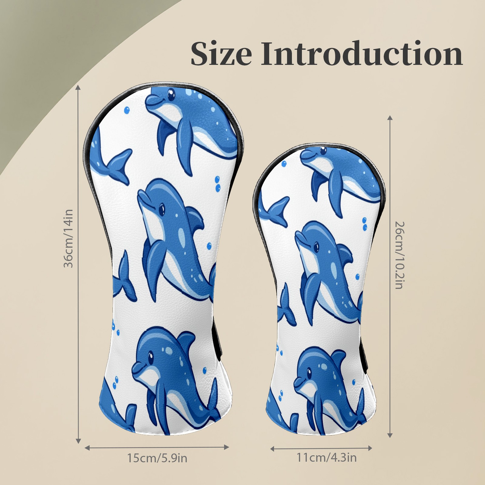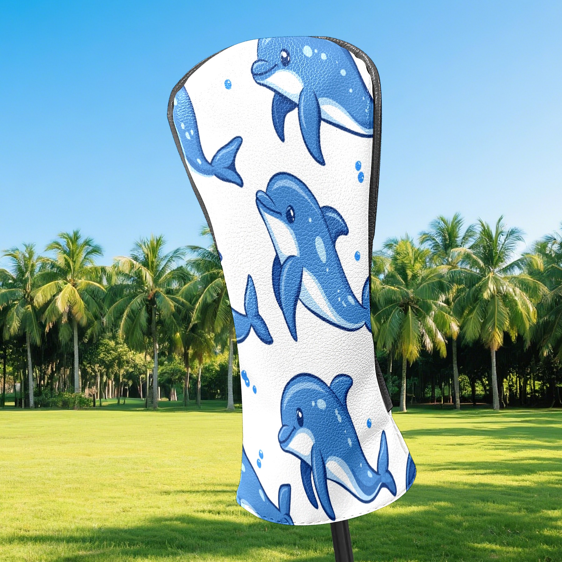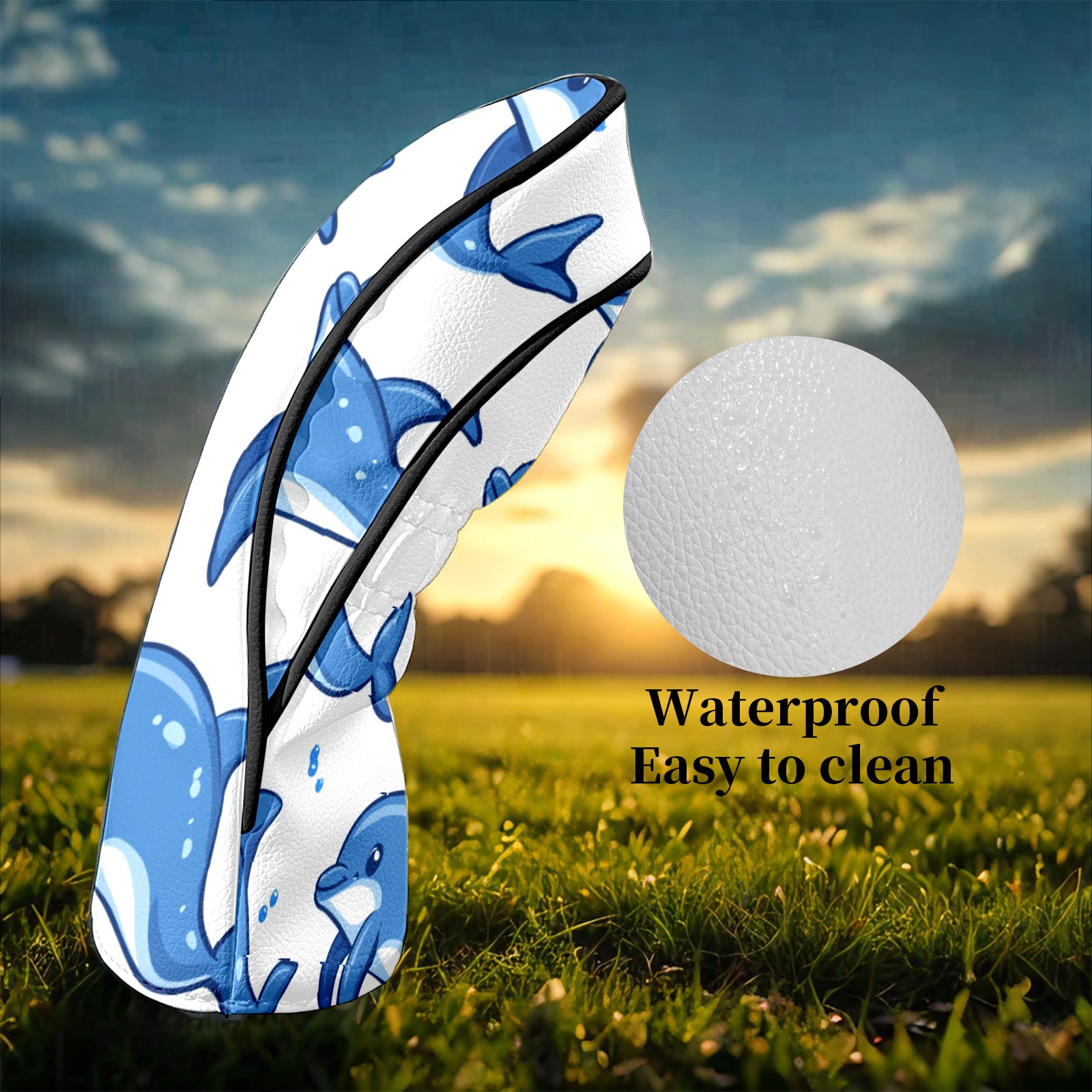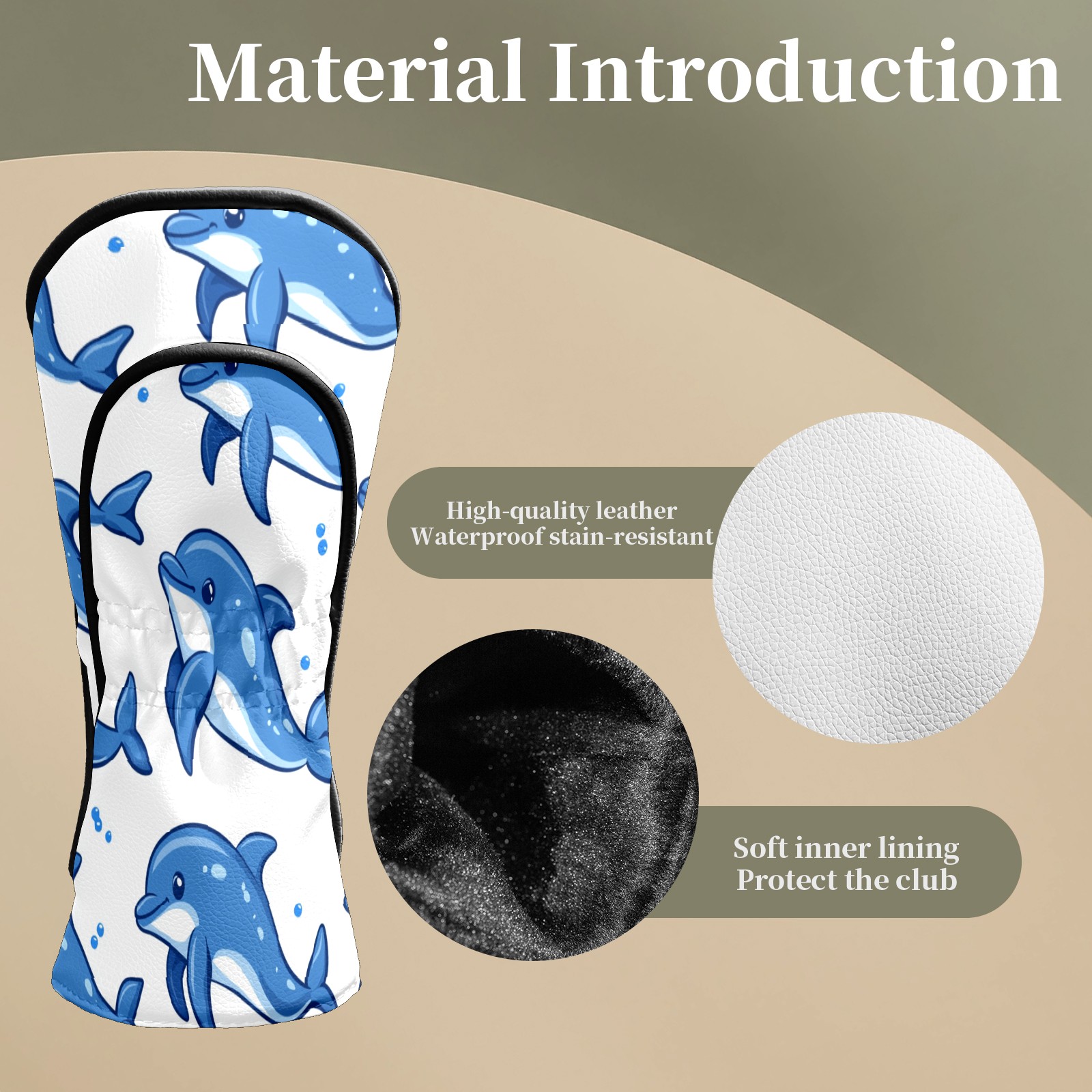 Golf Club Covers Cartoon Dolphin Driver Head cover, Leather Golf Club Head Covers for Driver Fairway Woods Waterproof Golf Headcovers with Anti-Scratch Lining Fits Most Clubs