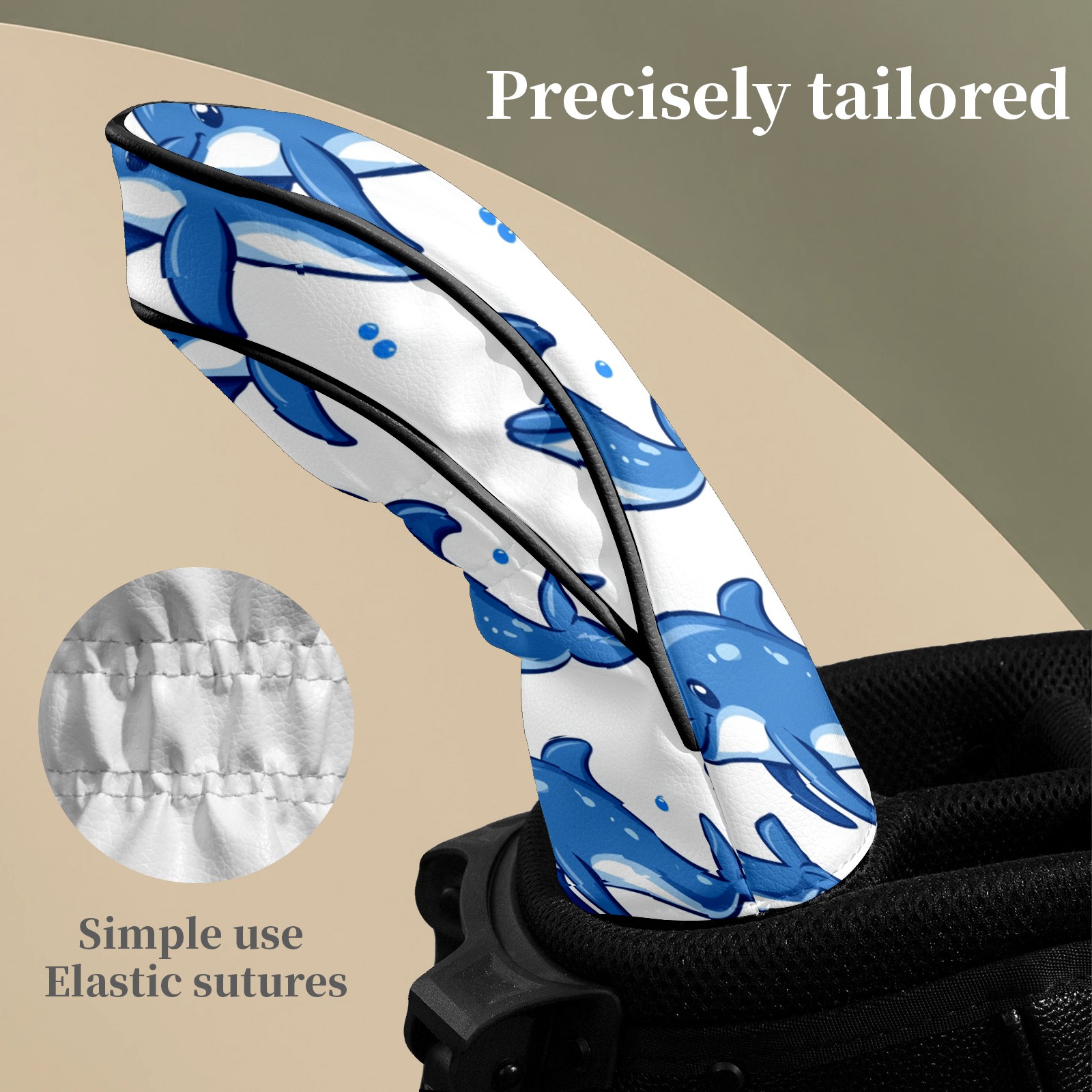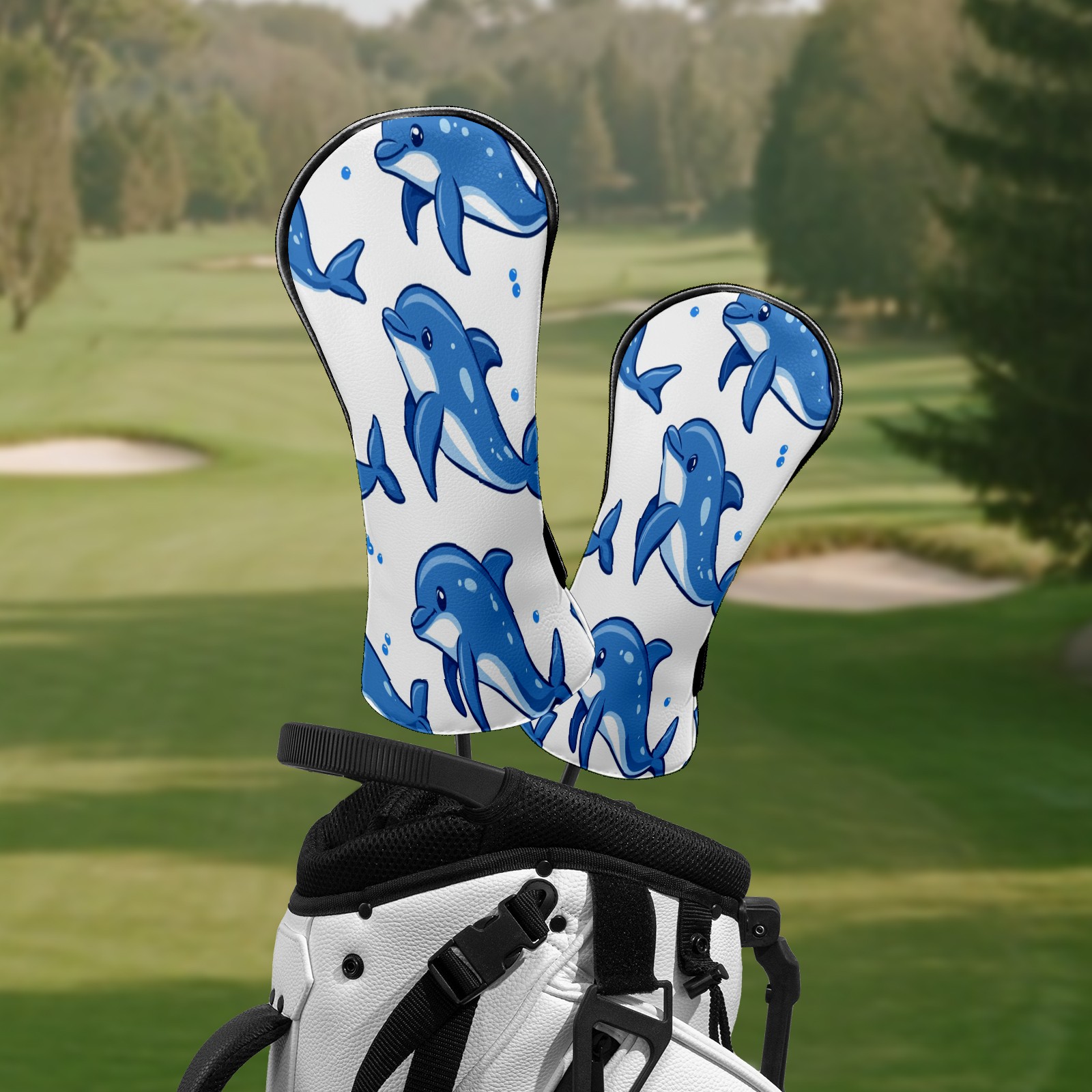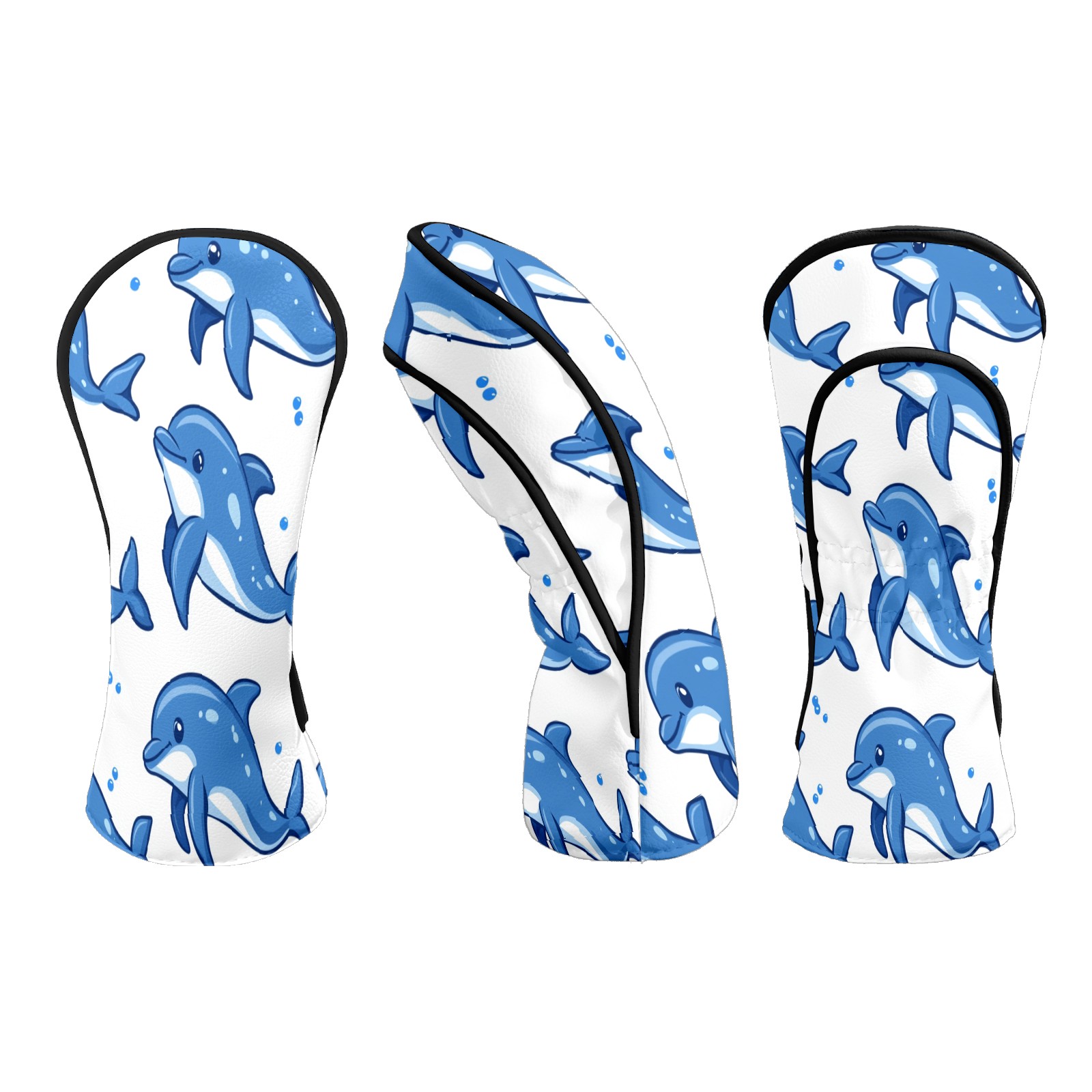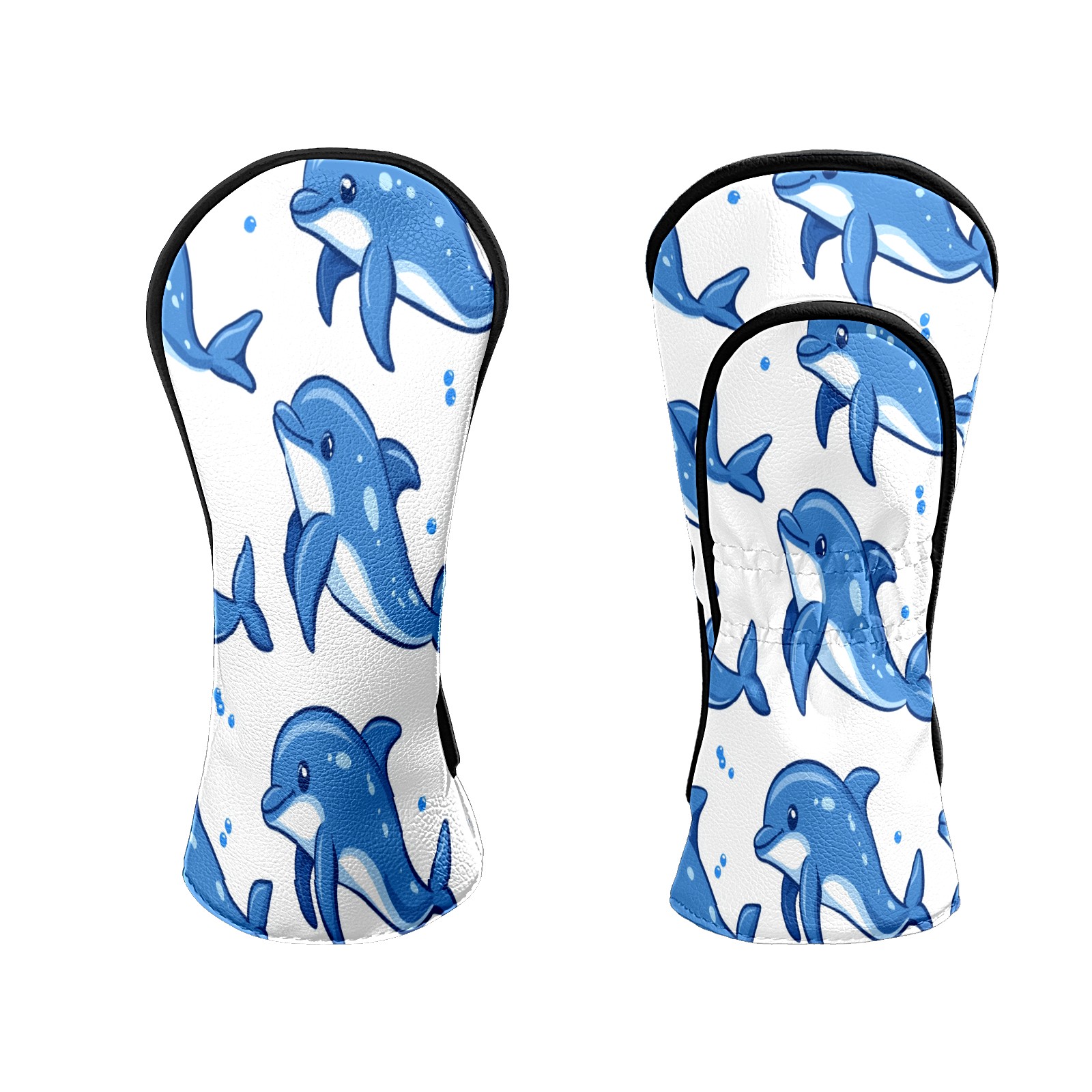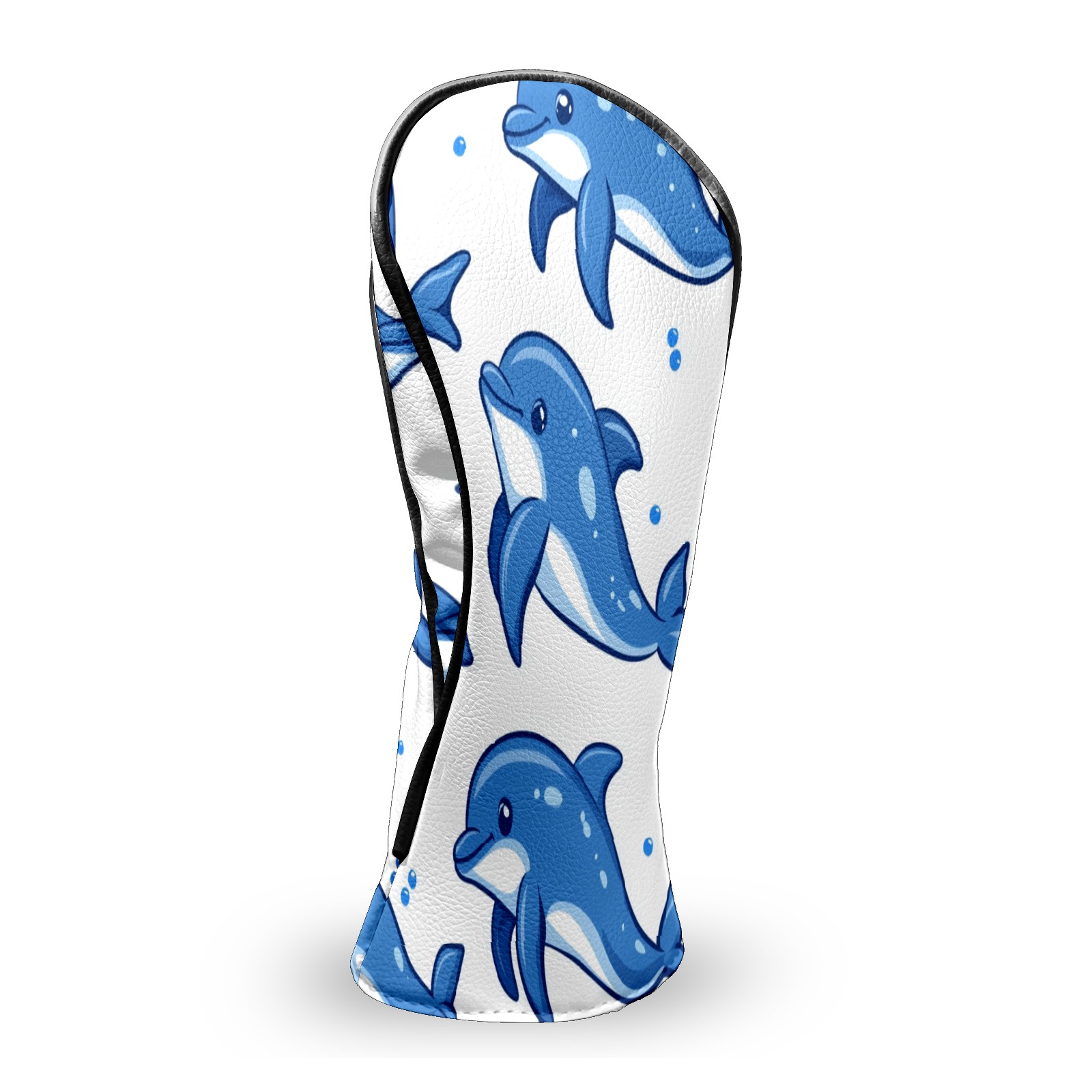 Golf Club Covers Cartoon Dolphin Driver Head cover, Leather Golf Club Head Covers for Driver Fairway Woods Waterproof Golf Headcovers with Anti-Scratch Lining Fits Most Clubs