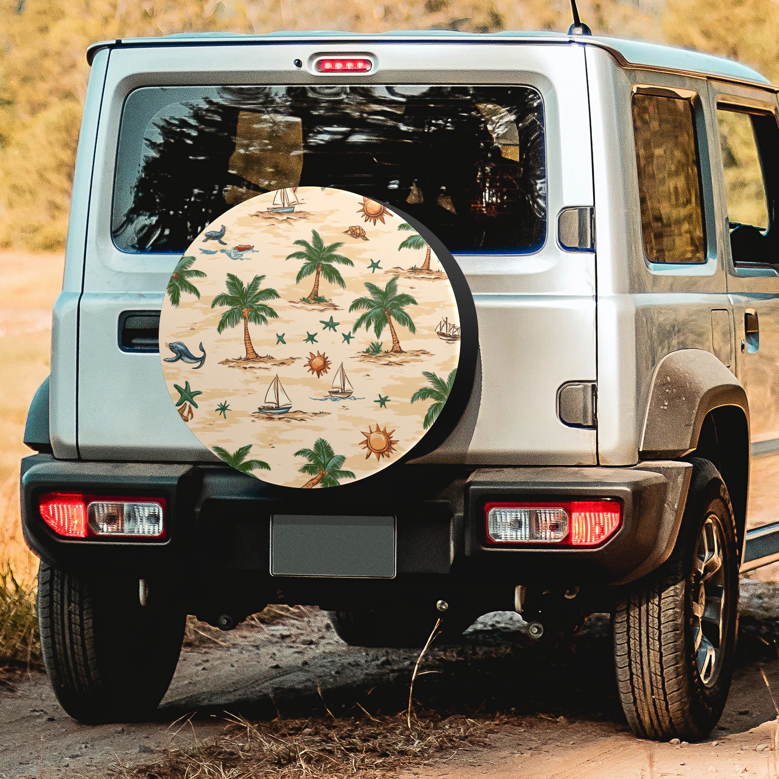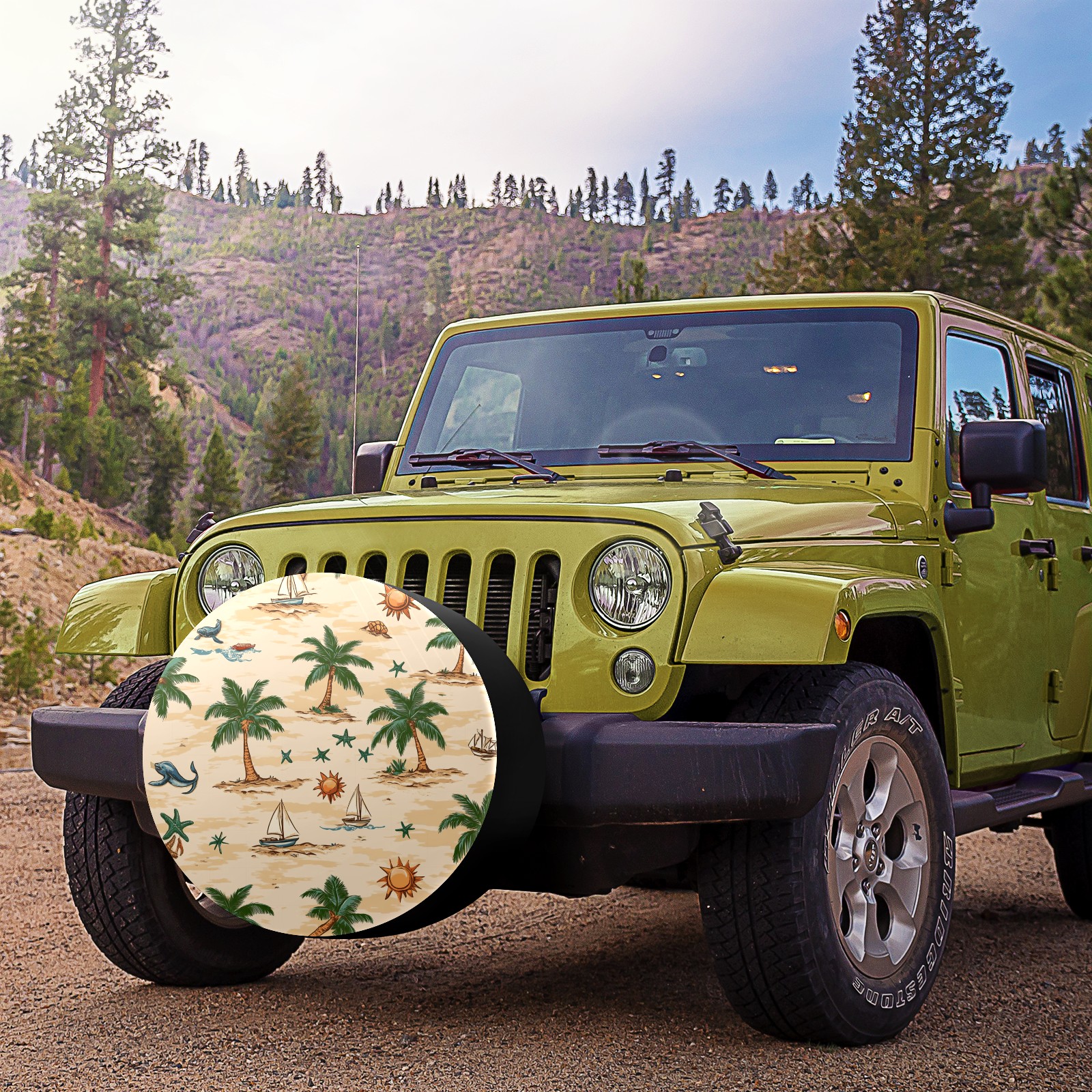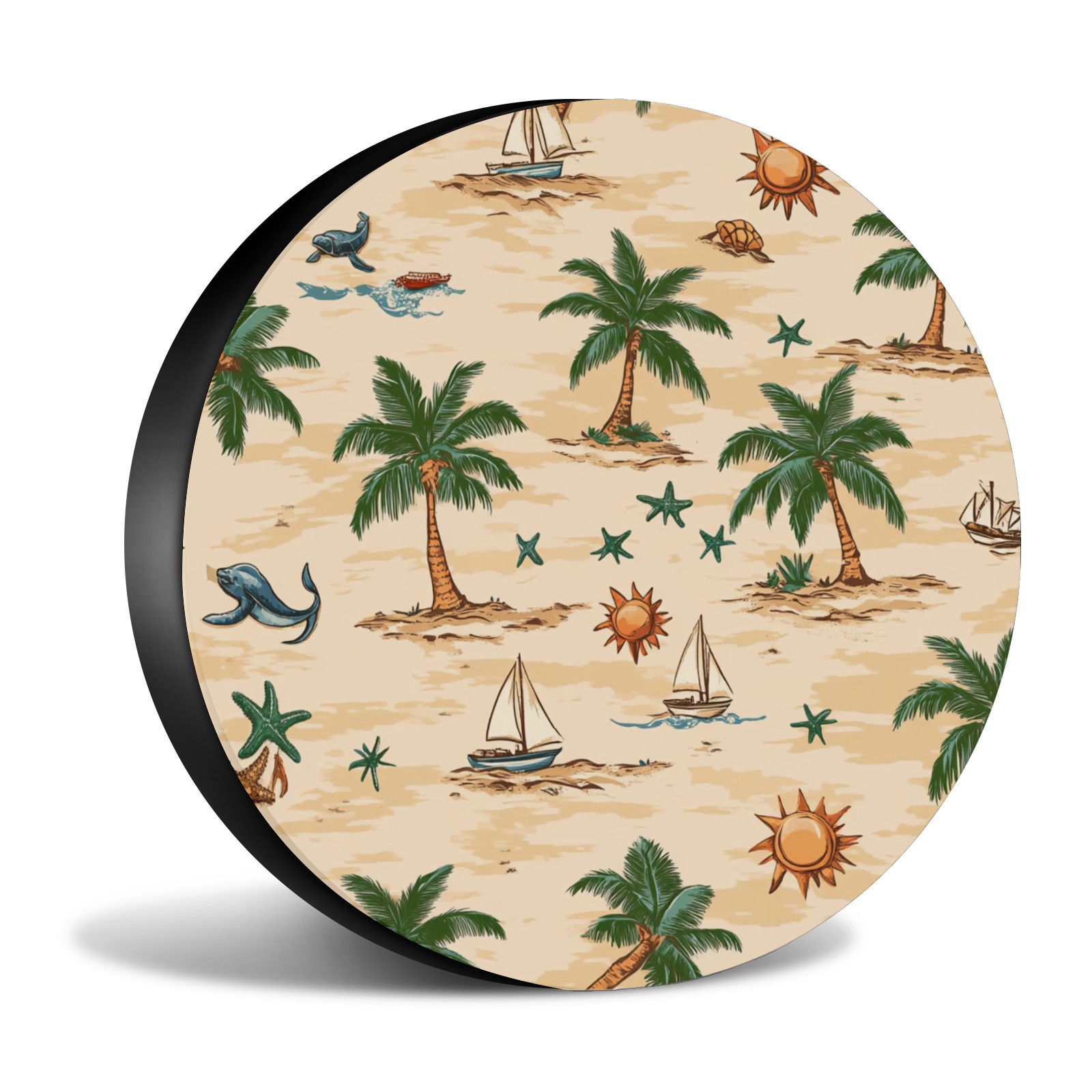 Palm Trees Suns And Starfish Spare Tire Cover, Waterproof Wheel Protector Universal Fits for Truck SUV RV Trailer Camper (14 Inch)